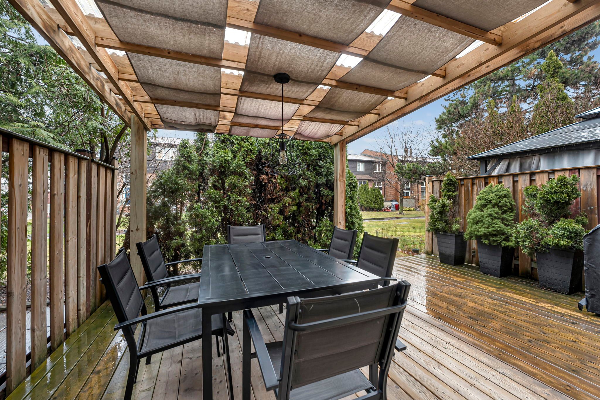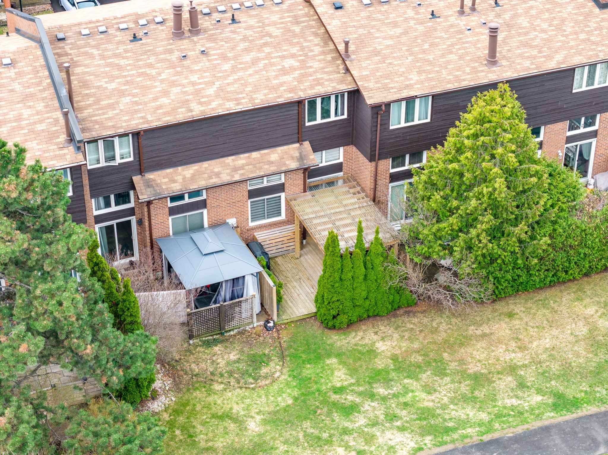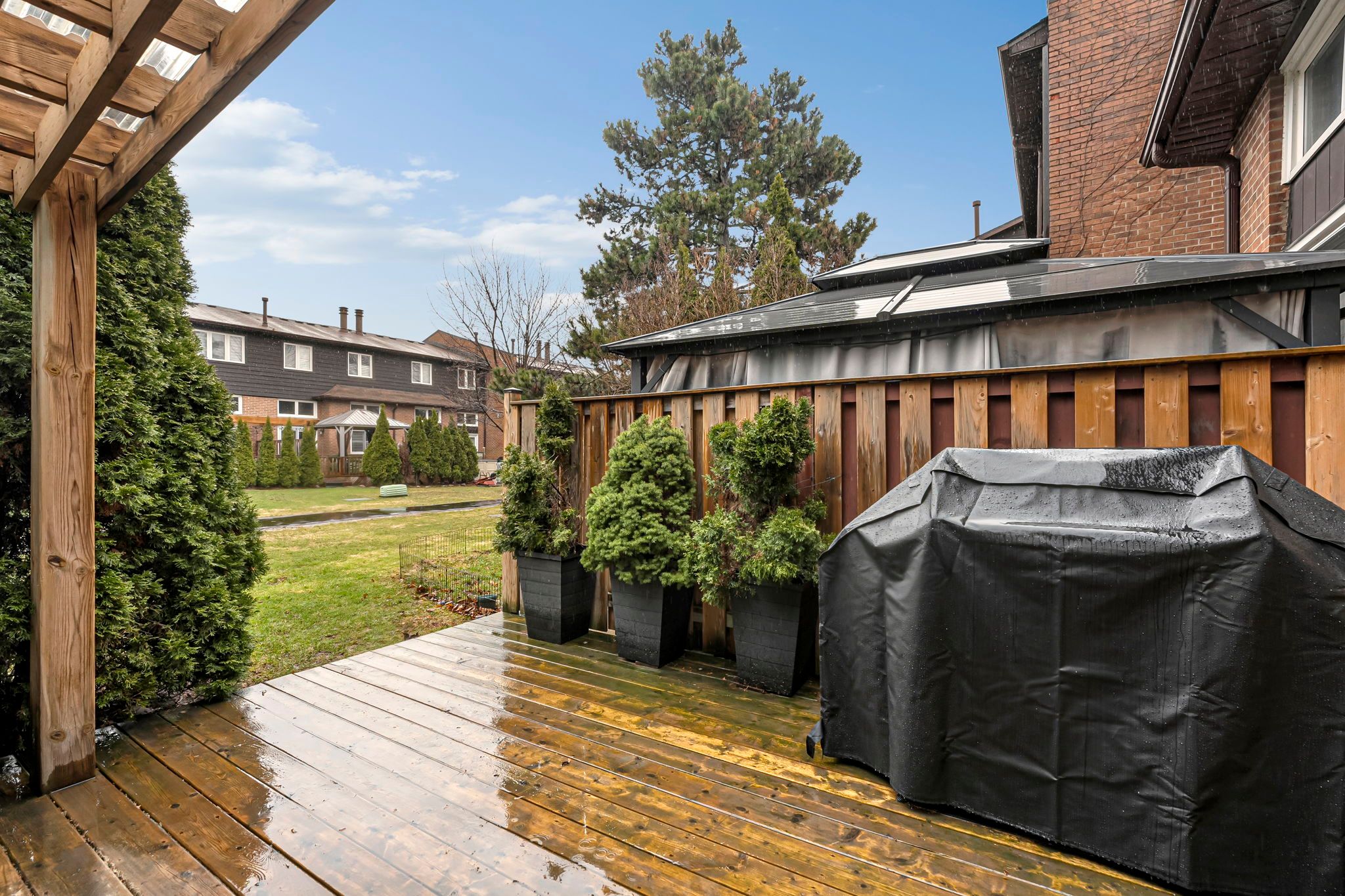 Welcome to this beautifully renovated townhouse offering a perfect blend of modern design and functional living. The spacious living room features soaring cathedral ceilings, a stunning fireplace and a dun-filled walkout to a private backyard oasis complete with deck, pergola, and professionally landscaped grounds-ideal for entertaining or relaxing outdoors. The custom-designed kitchen is a true showstopper, boasting built-in stainless steel appliances, an oversized island, sleek cabinetry, and contemporary finishes, all complemented by elegant hardwood flooring throughout the home. Upstairs, the primary bedroom retreat offers a walk in closet and a stylish ensuite bathroom. The additional bedrooms are generously sized, perfect for families or guest. The lower level provides a versatile space that be used as a family room or guest suite, along with an additional bathroom and a spacious laundry area for added convenience. Located in a highly desirable community, this home is close to shopping, major highways, top-rated schools and an abundance of parks. Ample visitor parking completes this exceptional offering.