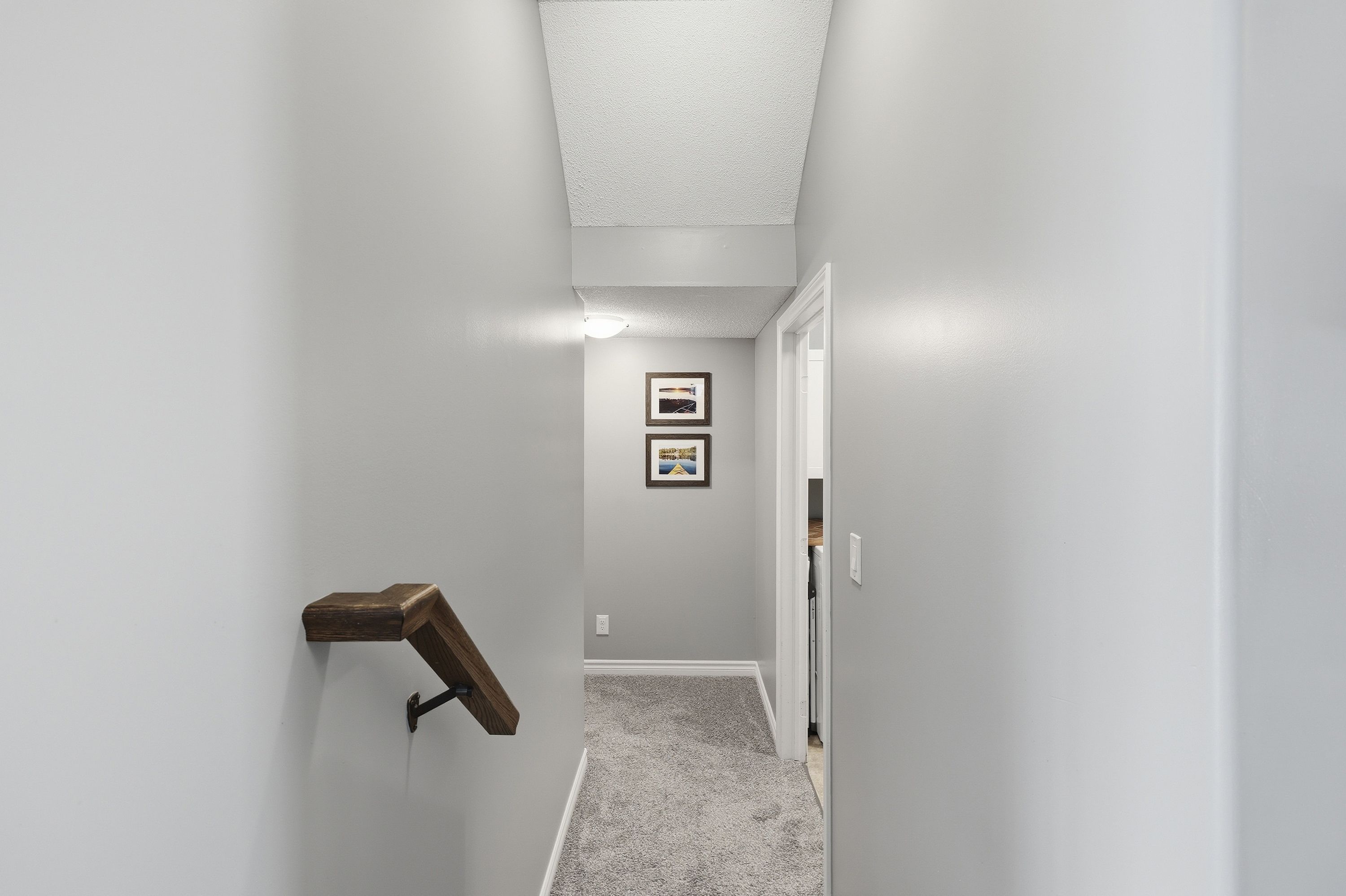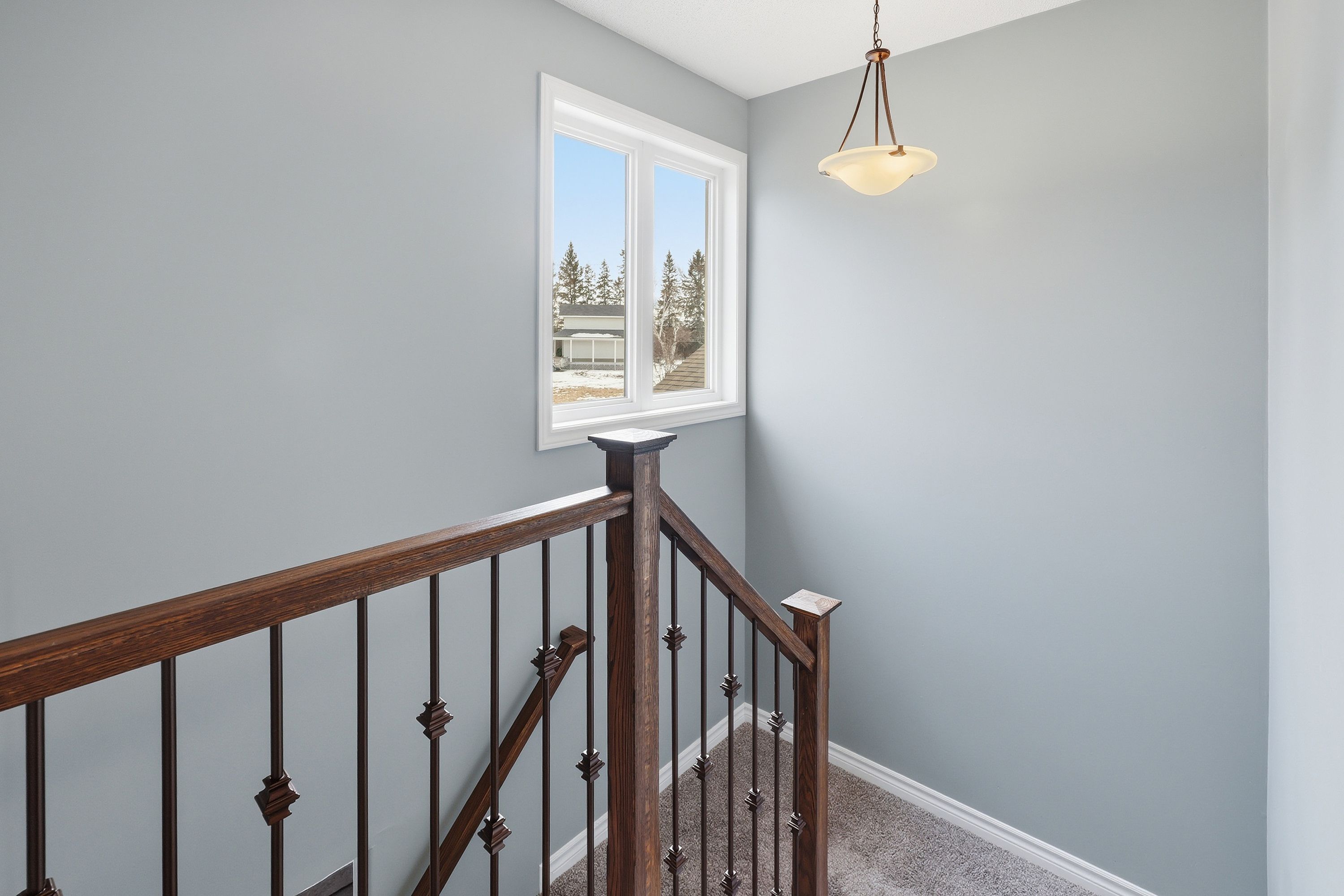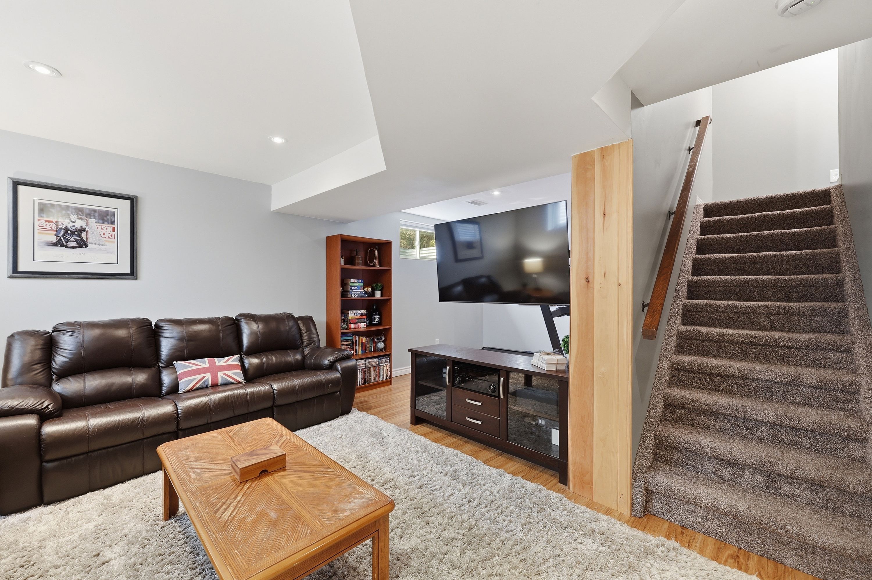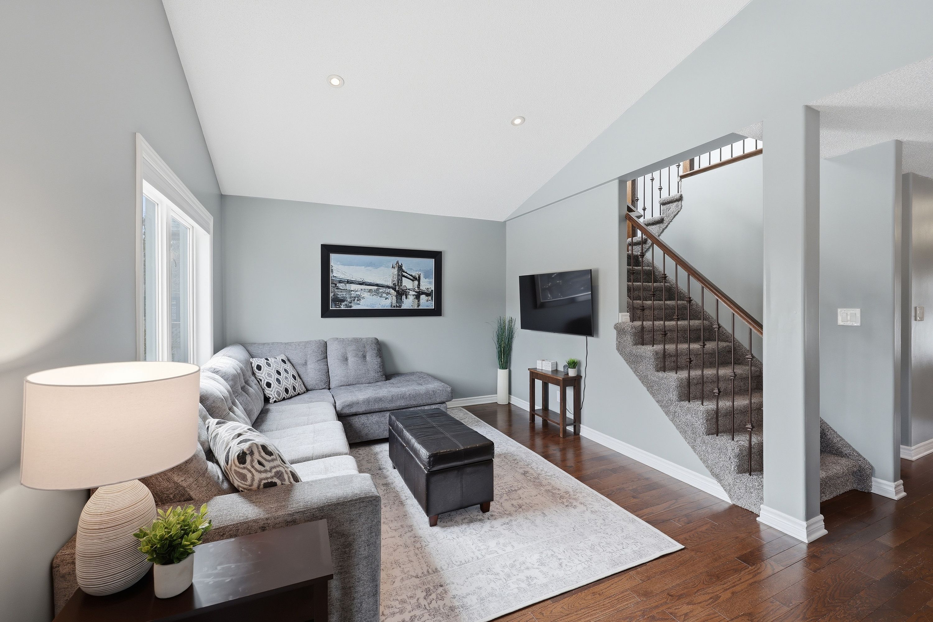• Bright carpet-free main floor with an open layout and vaulted ceiling.