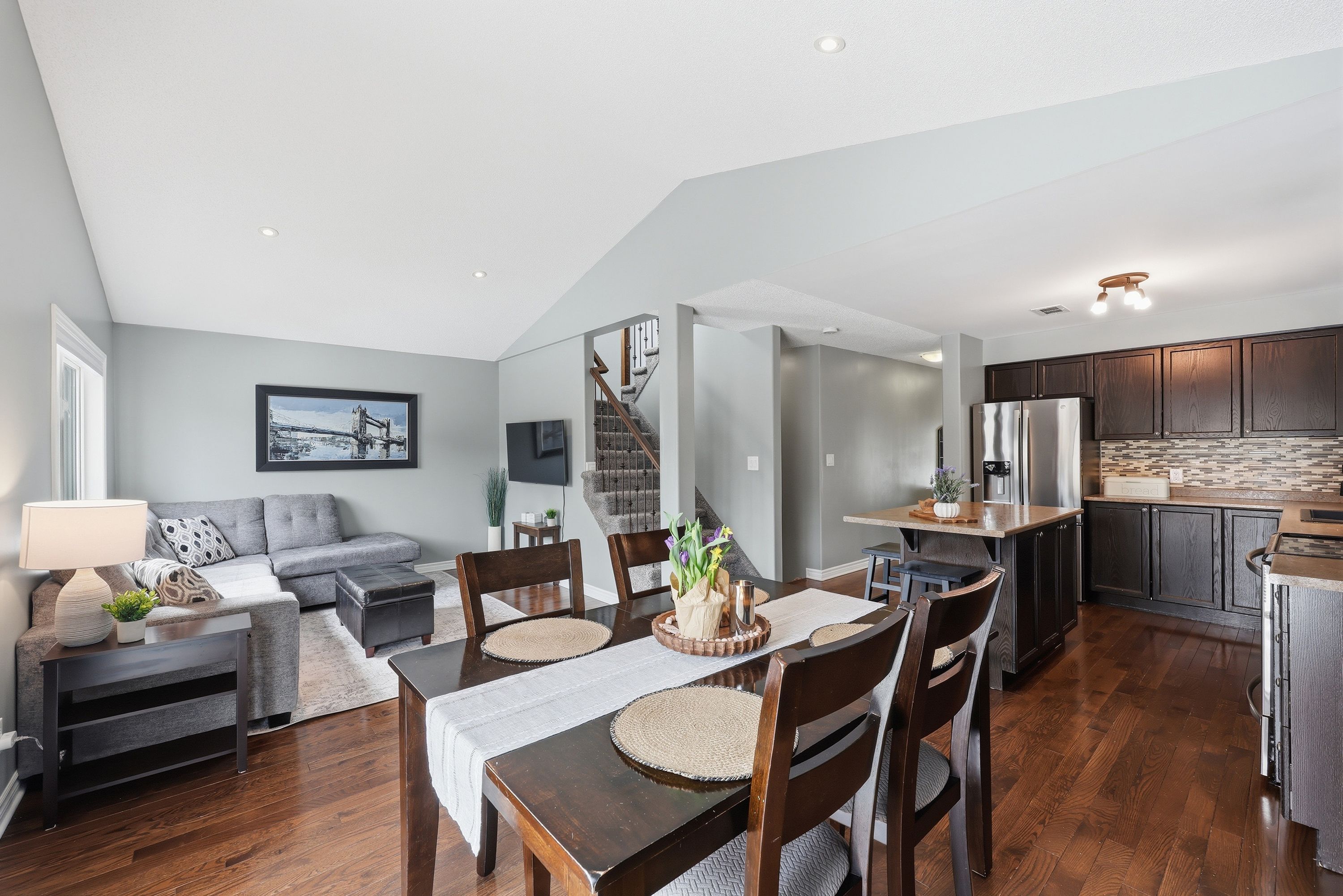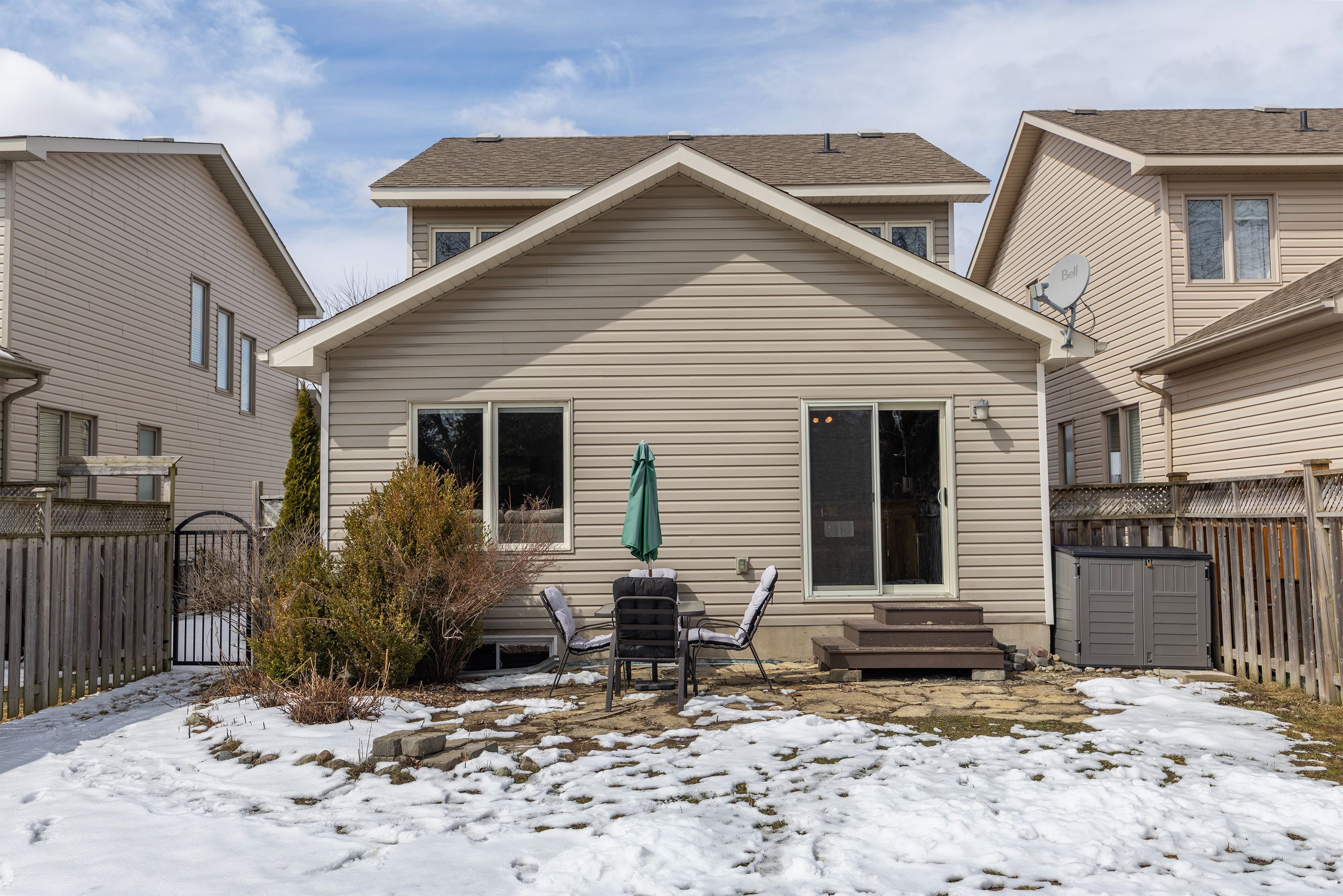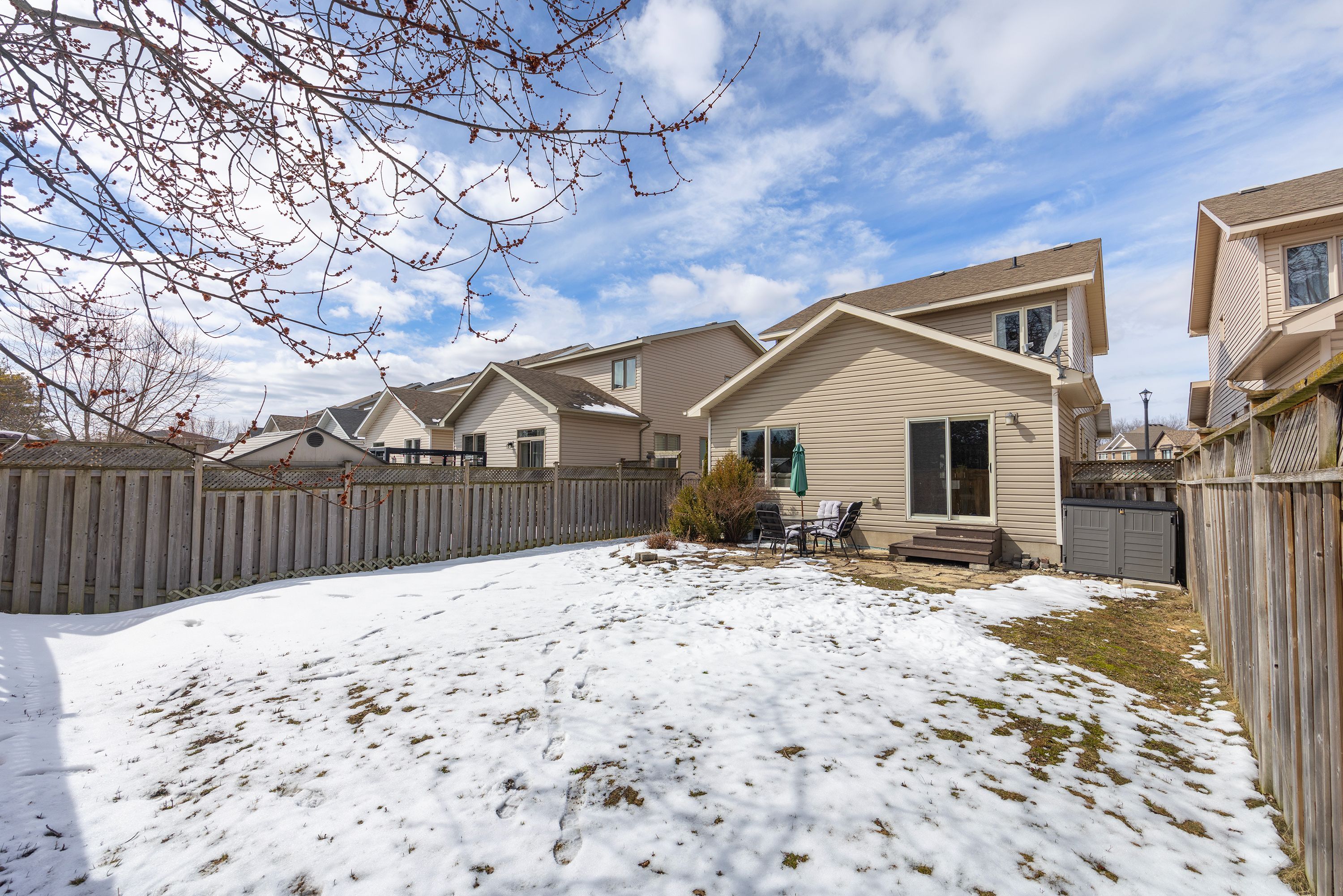Welcome to 1755 reginald bart drive, a beautifully maintained 2-storey home in kingston's desirable east end. This inviting property combines comfort, style, and function, perfect for families or professionals alike. The carpet-free main floor is filled with natural light while the open layout is further enhanced by the vaulted ceiling. You'll find a welcoming layout complete with a dedicated office, main floor laundry, and a handy powder room. The dining area opens to a stone patio and fully fenced backyard, ideal for entertaining, relaxing, or providing a secure play area for kids and pets. Upstairs, you'll discover three good-sized bedrooms, including a spacious primary suite with a 3-piece ensuite and walk-in closet. The finished basement extends your living space with a large recreation room, a versatile flex area perfect for a home gym or hobby space, and ample storage throughout. Located in an amazing neighbourhood just minutes from amenities, highway 401, and cfb kingston, this home offers the best of family-friendly living and urban convenience.