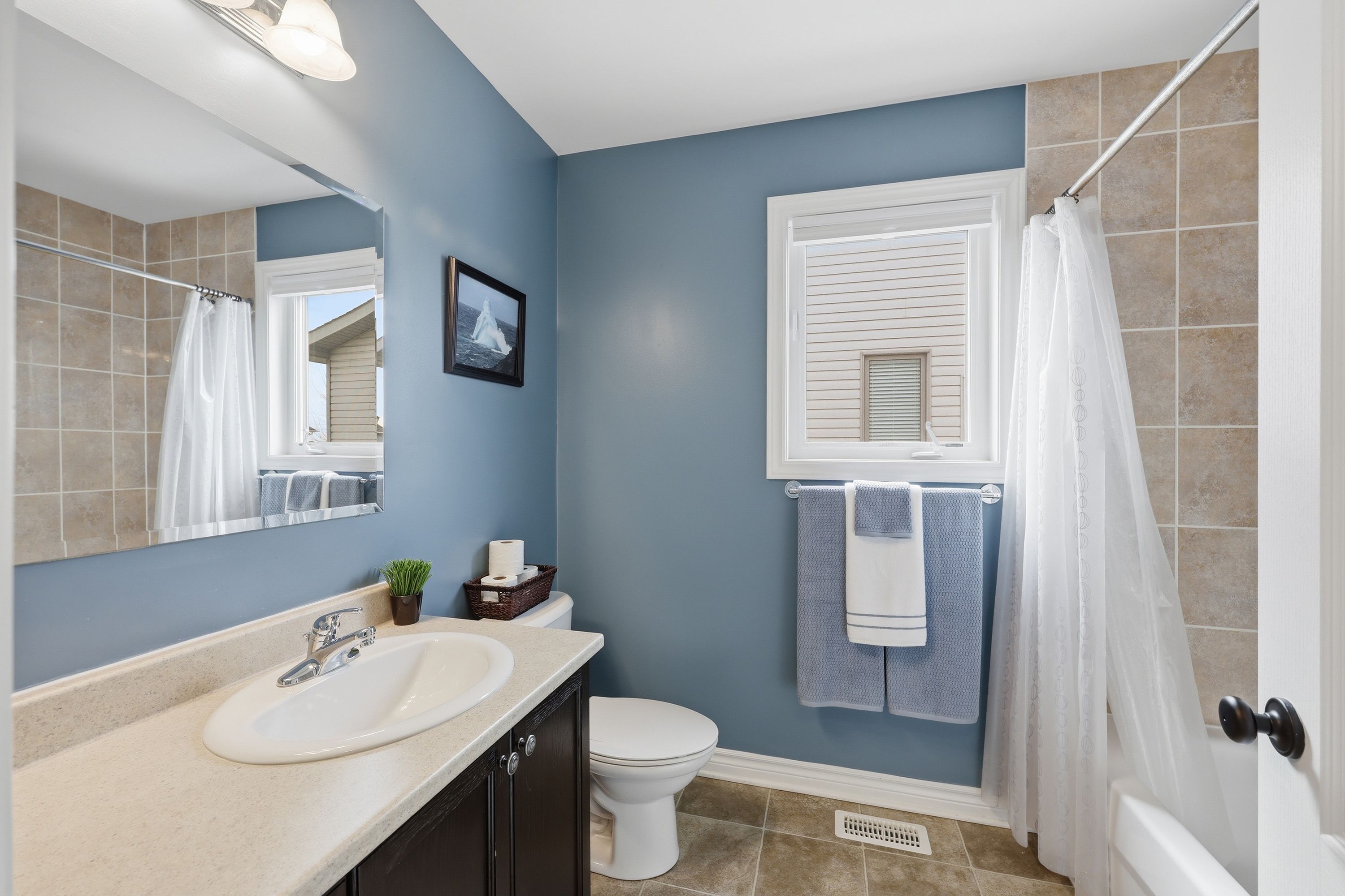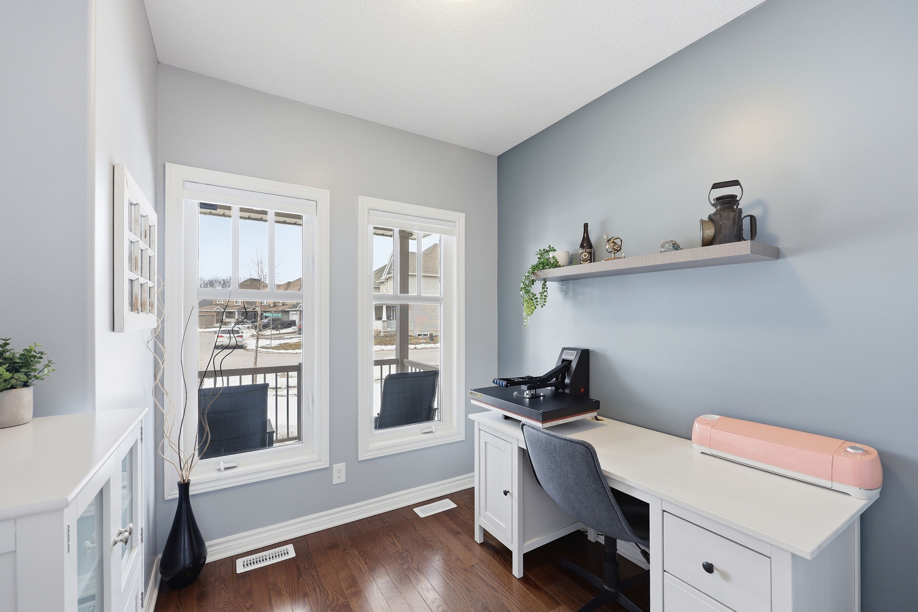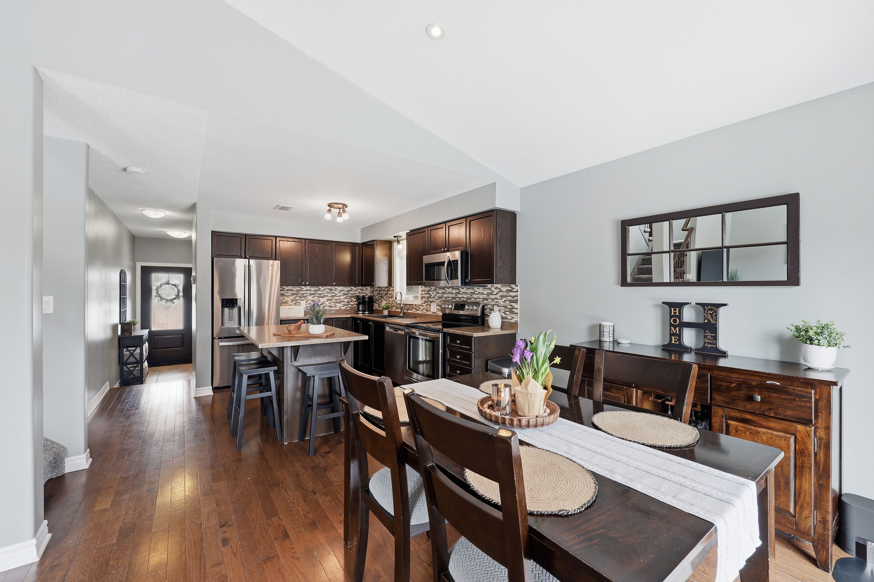Welcome to 1755 reginald bart drive, a beautifully maintained 2-storey home in kingston's desirable east end. This inviting property combines comfort, style, and function, perfect for families or professionals alike. The carpet-free main floor is filled with natural light while the open layout is further enhanced by the vaulted ceiling. You'll find a welcoming layout complete with a dedicated office, main floor laundry, and a handy powder room. The dining area opens to a stone patio and fully fenced backyard, ideal for entertaining, relaxing, or providing a secure play area for kids and pets. Upstairs, you'll discover three good-sized bedrooms, including a spacious primary suite with a 3-piece ensuite and walk-in closet. The finished basement extends your living space with a large recreation room, a versatile flex area perfect for a home gym or hobby space, and ample storage throughout. Located in an amazing neighbourhood just minutes from amenities, highway 401, and cfb kingston, this home offers the best of family-friendly living and urban convenience.