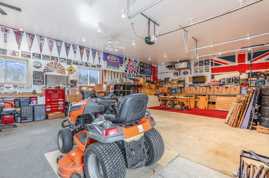 • Extra-large garage/workshop with heat, hydro, and loft storage.
