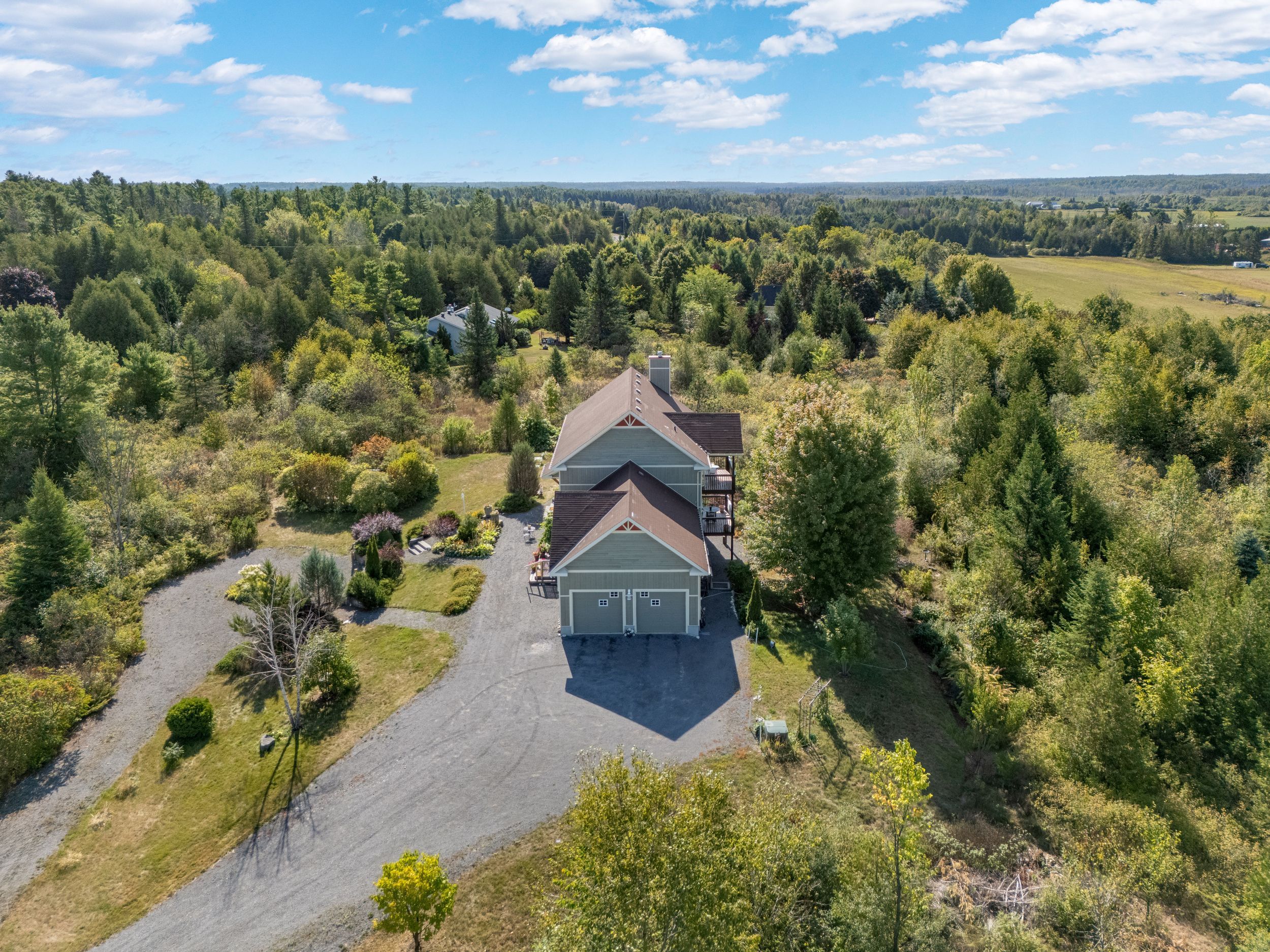 Oh: sun.,apr 19, 2-4pm. High end custom home with income potential w/ its walk-out in-law suite, this property provides both flexibility and financial opportunity. The feeling of serenity begins the moment you turn onto the driveway, with nature surrounding you on both sides all the way up to where the home is perched at the top. Exceptional 5-bed, 4-bath thoughtfully designed for comfort, elegance & versatility. This property includes a walk-out lower level in-law suite, ideal for multi-generational living/rental income. The main level greets you w/ a bright, spacious foyer that leads into the living and great rooms, featuring coffered ceilings, gleaming hardwood floors, and a large balcony off the great room. The kitchen is both functional & inviting, flowing naturally into a bright eating area connecting to a mudroom w/ abundant storage. A main floor bedroom adds flexibility, perfect for guests or a home office. Upstairs, the primary suite offers a private retreat with a large walk-in closet and a 5-p ensuite. Off bedroom #3 (media room), you'll find another large balcony where you can enjoy beautiful sunset views. Two generously sized bedrms share a jack & jill bathroom, while the laundry room provides everyday convenience. The walk-out lower level feels like its own private home, complete w/ a full kitchen, a living room, bedroom, a cozy nook (office or nursery), a den, a 4-piece bath with laundry, extra room, and ample storage space. Quality & sustainability shine throughout this home, from its durable canexcel siding to the energy-efficient geothermal heating & cooling system that ensures year-round comfort. Set on 3 acres embraced by forest, the property offers peace & natural beauty from every angle. Mature gardens, fruit trees, forested views fill each window w/ a different scene of tranquility. Just minutes from almonte, carp, kanata - high tech center, and only 35 min from downtown ottawa making it the perfect balance of privacy, space, & accessibility.
