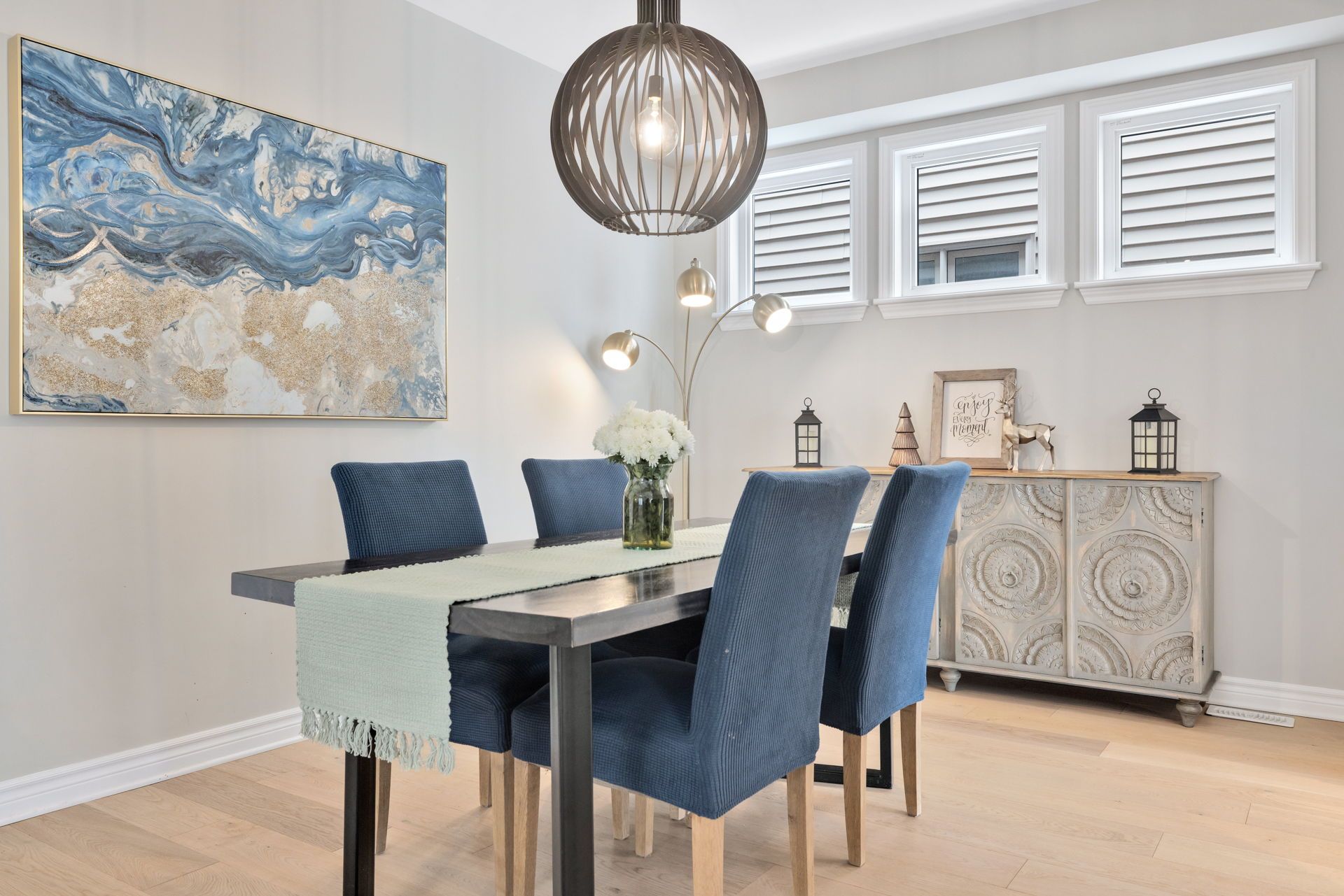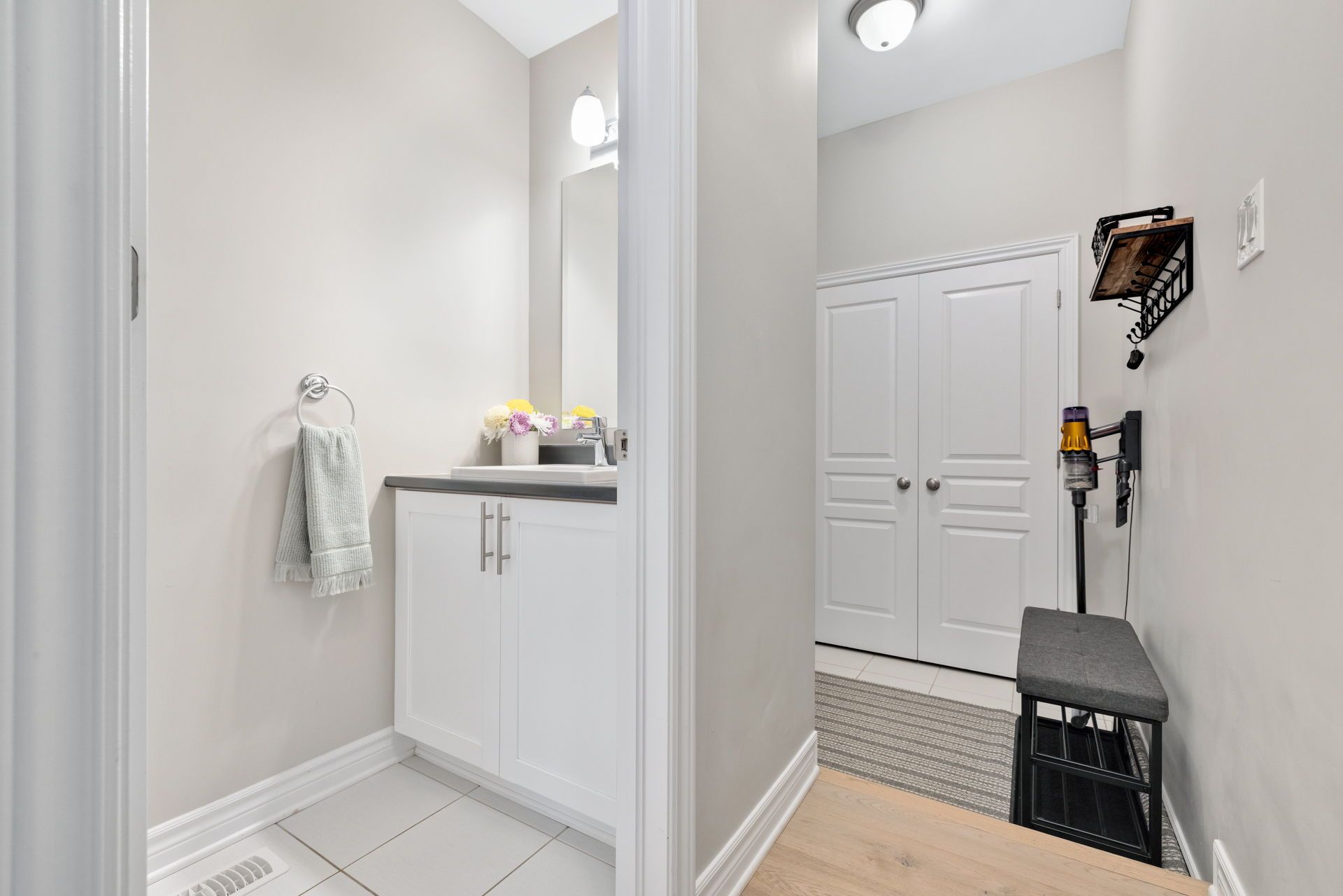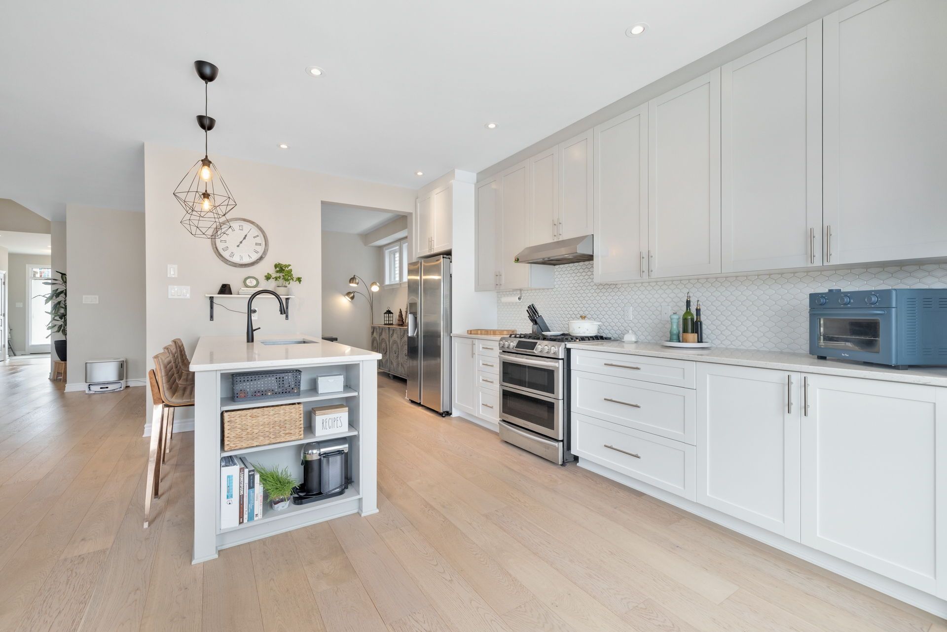 • Open-concept layout with elegant white oak hardwood flooring.