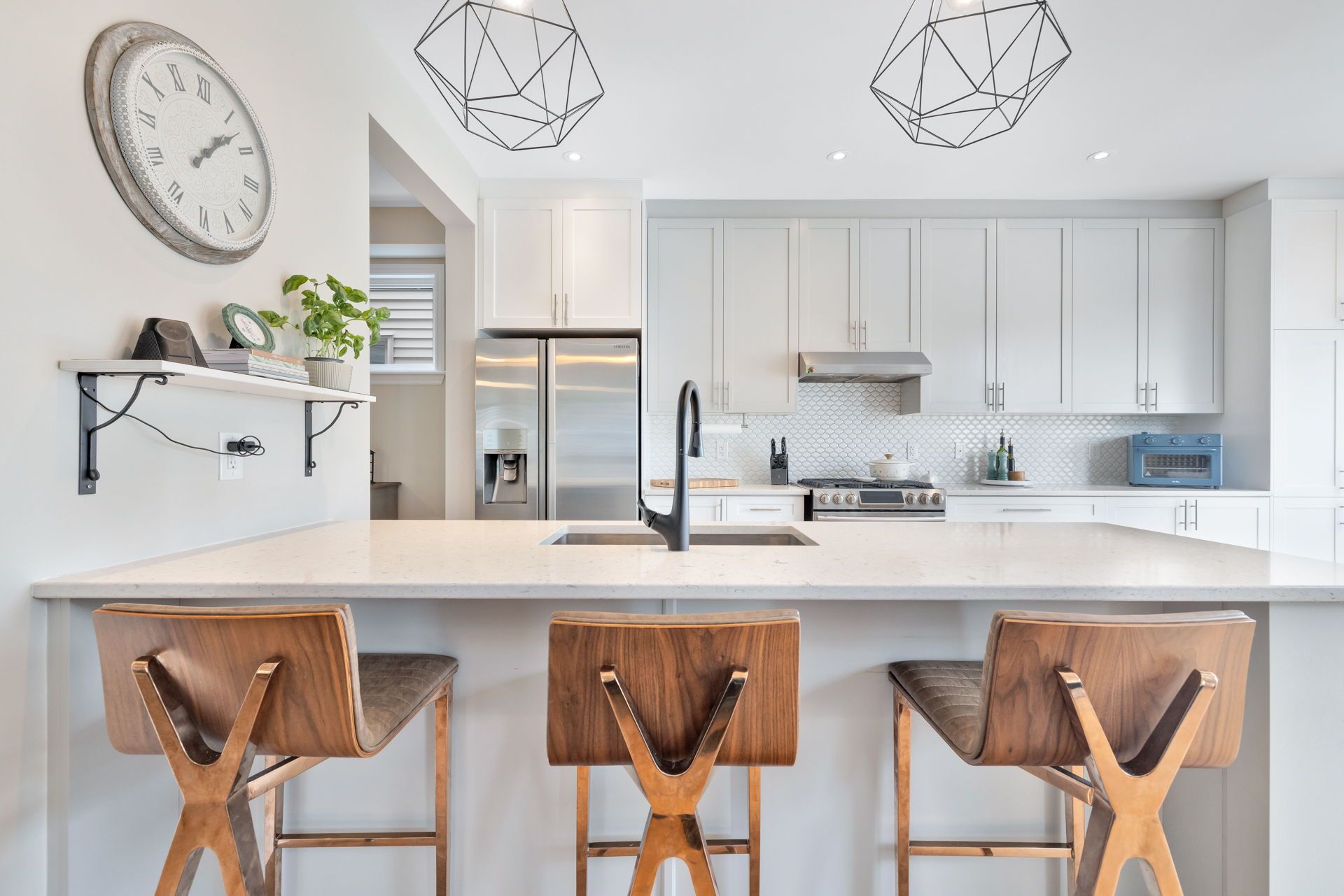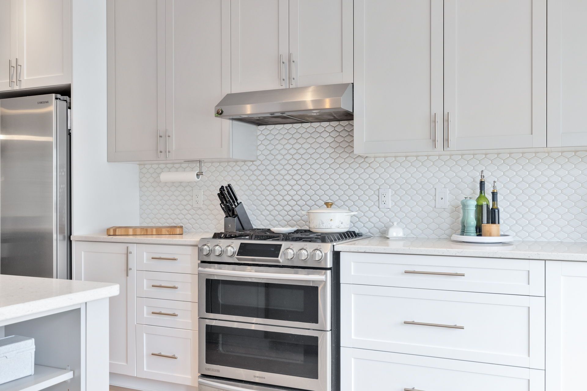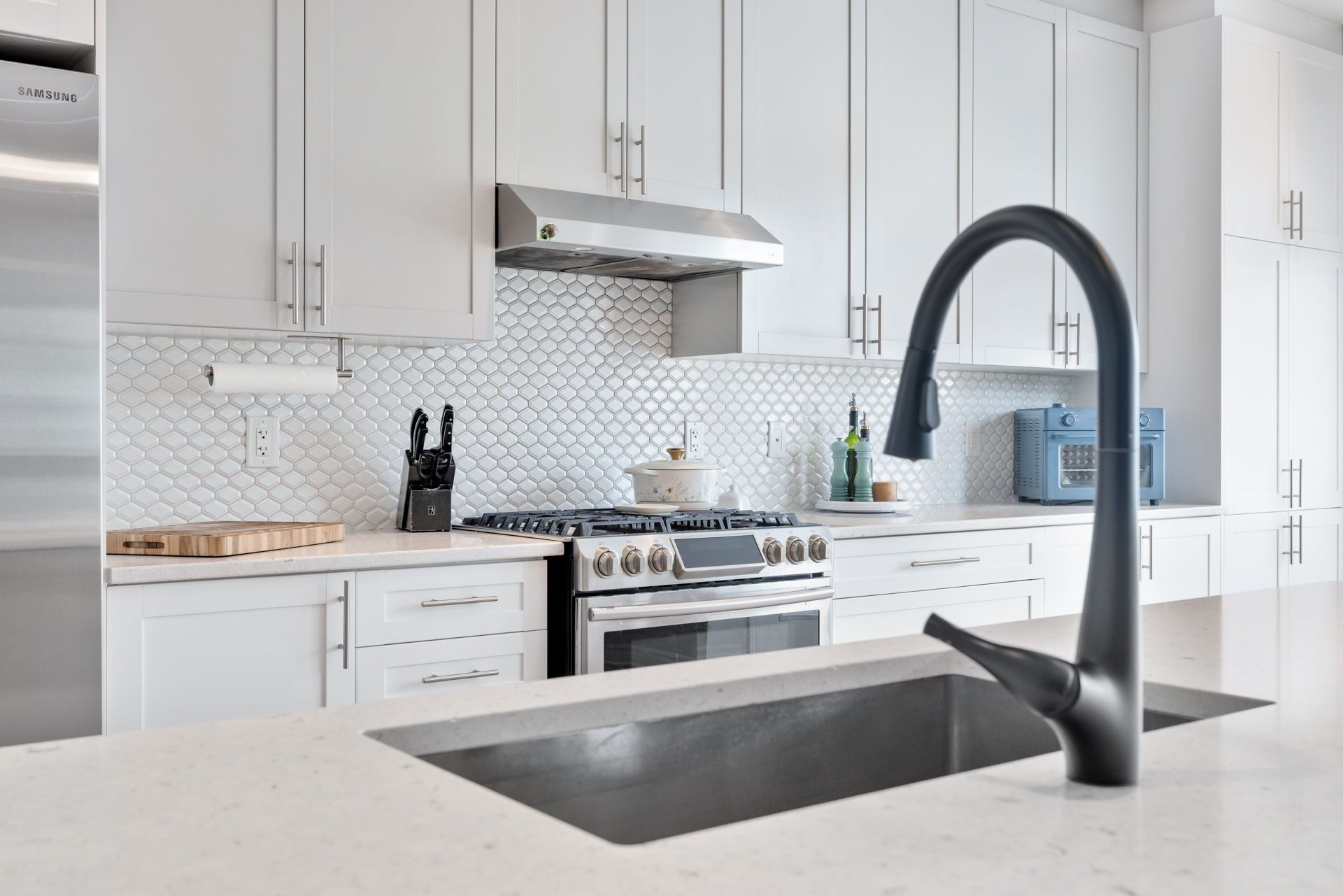 • Chef-inspired kitchen with quartz countertops and functional design.