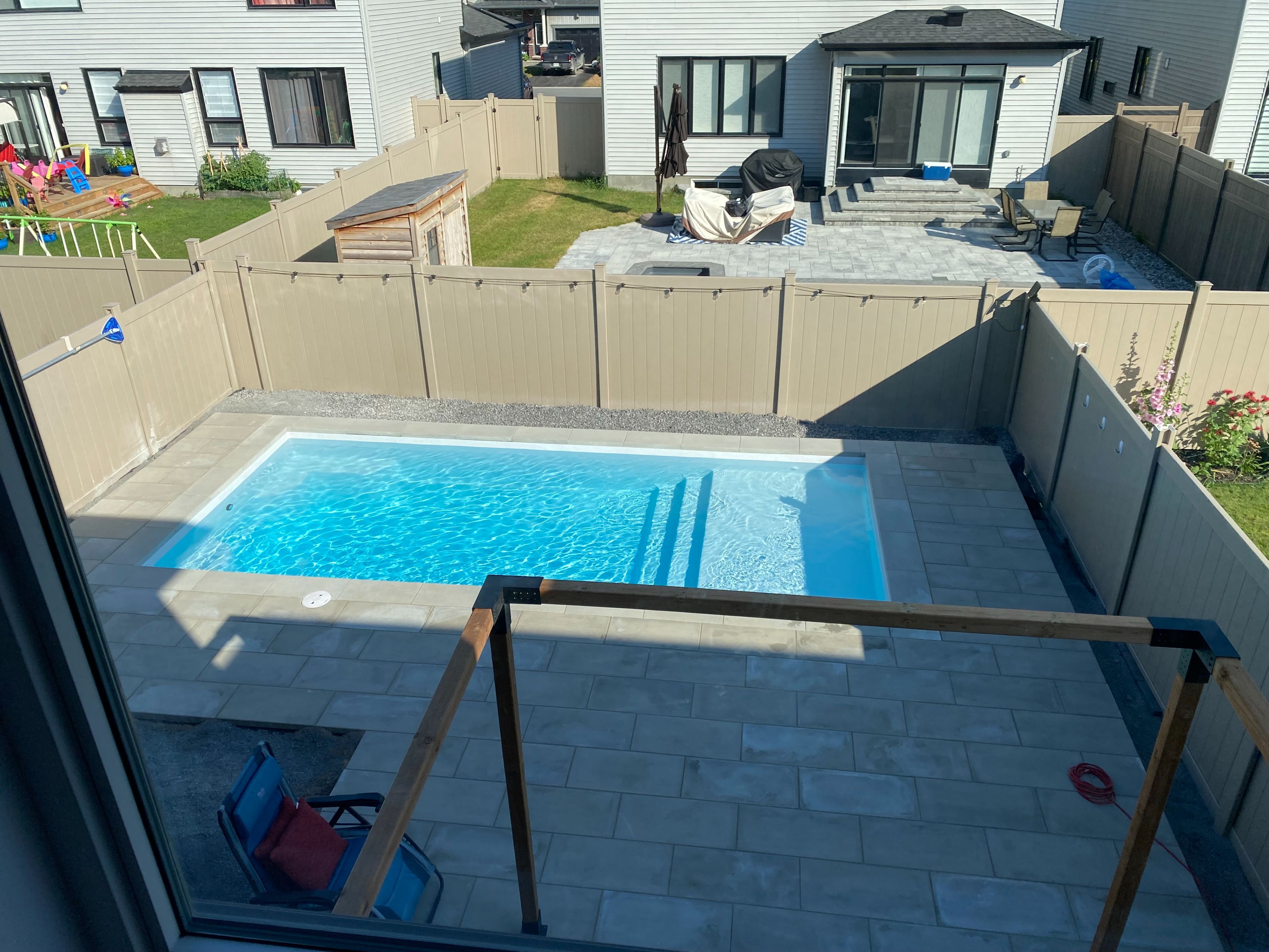• Backyard oasis featuring a relaxing in-ground fiberglass pool.