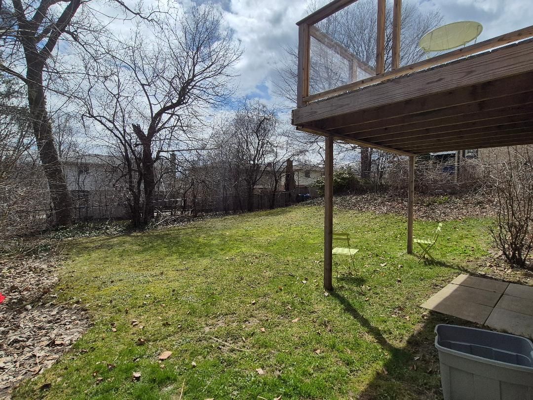 • Deck overlooking a fenced backyard, great for outdoor fun.