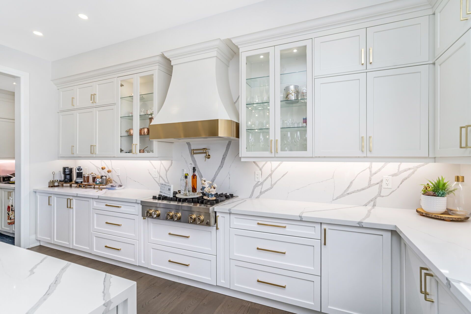 Experience refined living with exquisite custom finishes and a premium walkout lot backing onto a tranquil ravine. This exceptional residence presents a rare opportunity to own a truly remarkable home. Offering approximately 5,200 sq. Ft. Of luxurious living space above grade, it is thoughtfully designed for upscale living and effortless entertaining. Nestled on a quiet, family-friendly street, the home features 10-foot ceilings on the main floor and 9-foot ceilings on the second floor, creating an open and elegant atmosphere throughout. The chef-inspired gourmet kitchen is beautifully appointed with built-in appliances, an extended quartz breakfast island, a spacious center island, and upgraded upper cabinetry enhanced with pot lights. A generous walk-in pantry and breakfast area overlook the serene ravine setting, offering picturesque views and abundant natural light. The inviting family room, also overlooking the ravine, showcases a stunning custom 3d feature wall, a cozy gas fireplace, and pot lights throughout, creating a warm yet sophisticated space for gatherings. The main floor also features a private home office with a large window, ideal for working from home. Additional highlights include custom built-in closets and fully upgraded designer bathrooms with frameless glass showers, reflecting meticulous attention to detail.