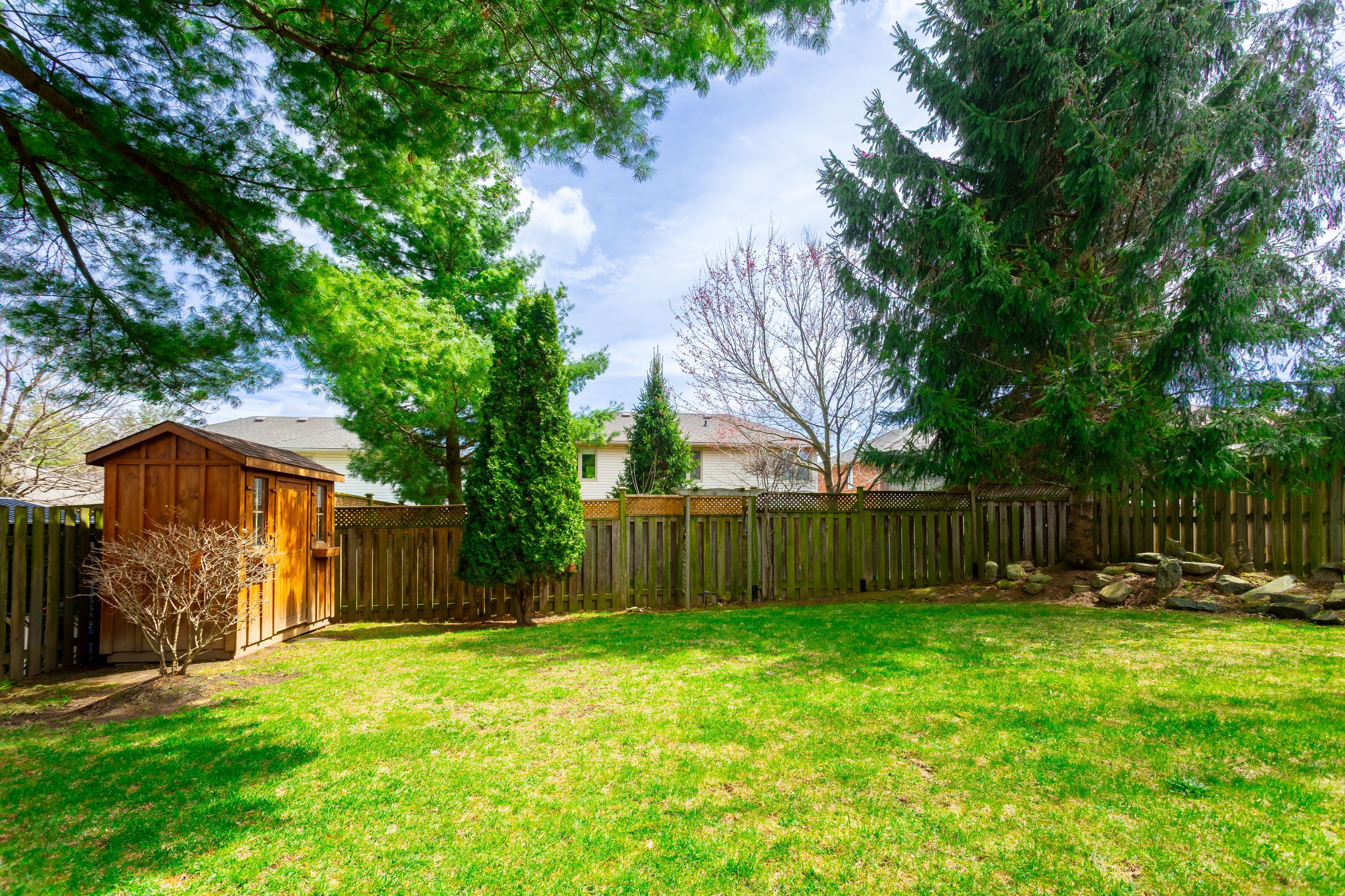 A welcoming family home in a great community where everyone shows true pride of ownership. As you arrive, notice the quiet streets and the convenience of having three schools just five minutes away. The covered front porch is the perfect spot to relax and chat with friendly neighbours. Step inside the foyer, double french doors open to a bright living/dining room with a large multi pane window that fills the space with natural light. A perfect spot to curl up with a good book. The dining area easily fits a full table for large gatherings. The spacious eat in kitchen features a classic working triangle, custom oak cabinetry, ample prep and pantry space, and a window overlooking the large, fully fenced yard. Imagine enjoying a morning coffee in the screened in gazebo while the kids play in the large private yard. Or entertain friends on the generous deck beneath tall mature trees - back yards like this are rare. Settle into the warm family room with a cozy gas fireplace, a true bonus in today's layouts. Upstairs are three carpet free, oversized bedrooms, including a primary suite with a retreat style ensuite featuring a separate shower and jetted tub. The fully finished basement offers space for board games, enjoying a workout, or cozy movie nights. And what a great neighbourhood! Steps to schools, parks, shopping, and shade's mills conservation area, this home has been lovingly cared for and truly offers something for everyone. You owe it to yourself to see this one.