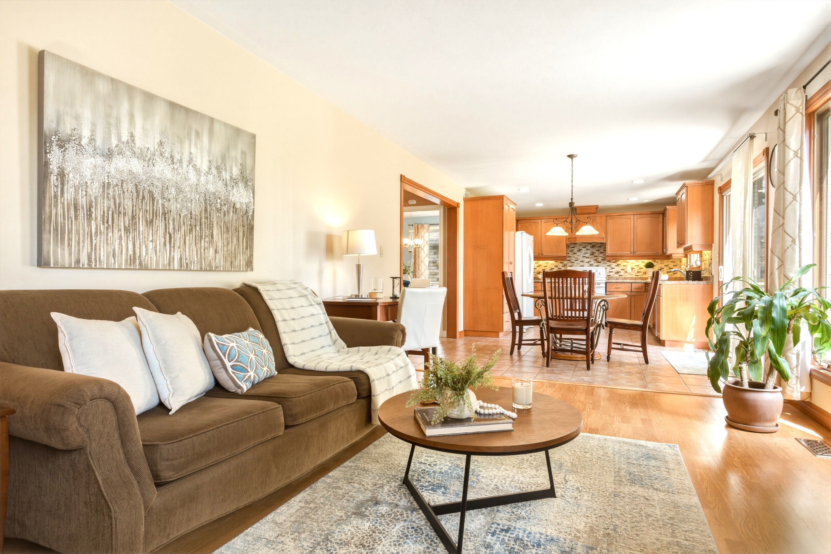 • Bright living/dining room with large windows for natural light.