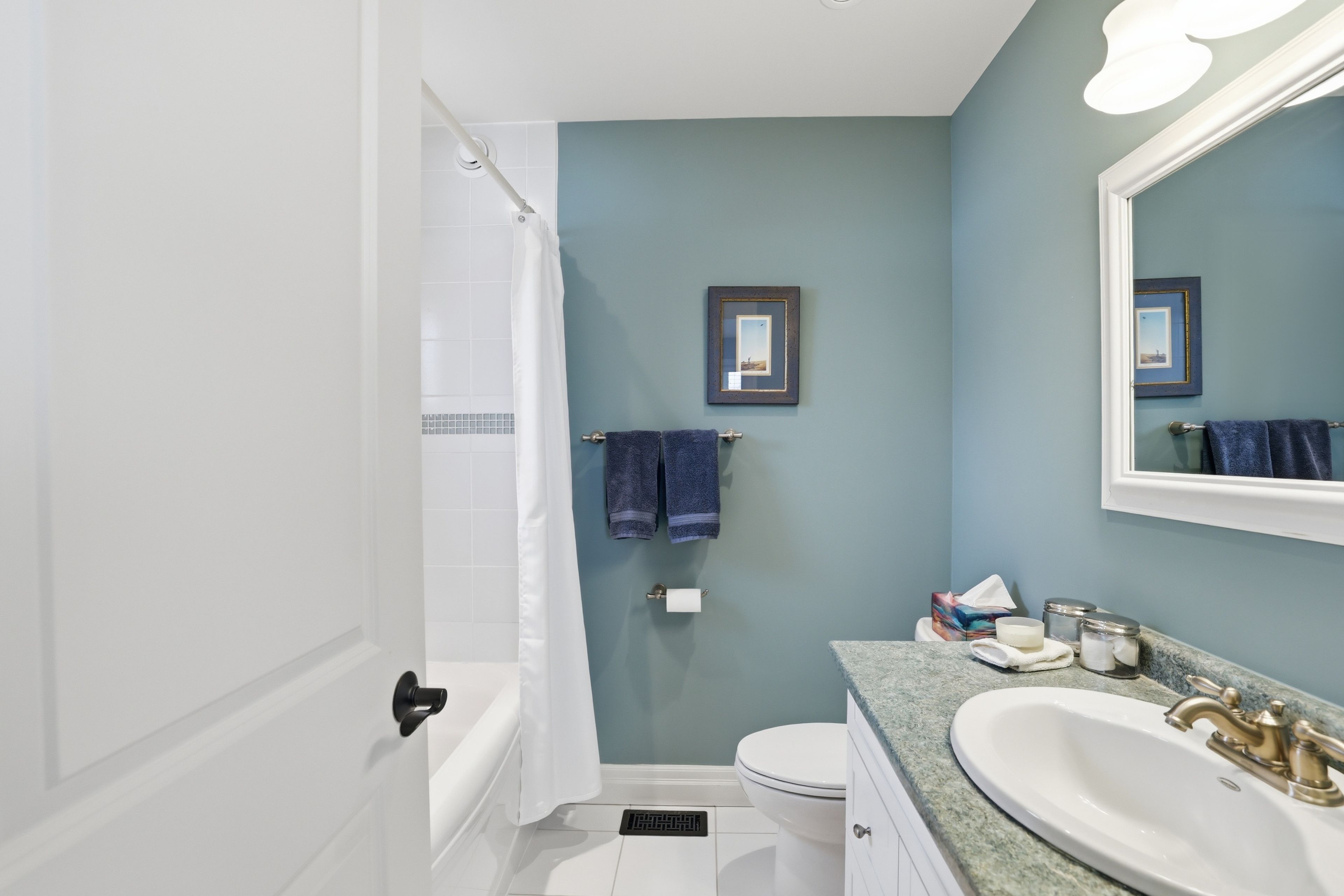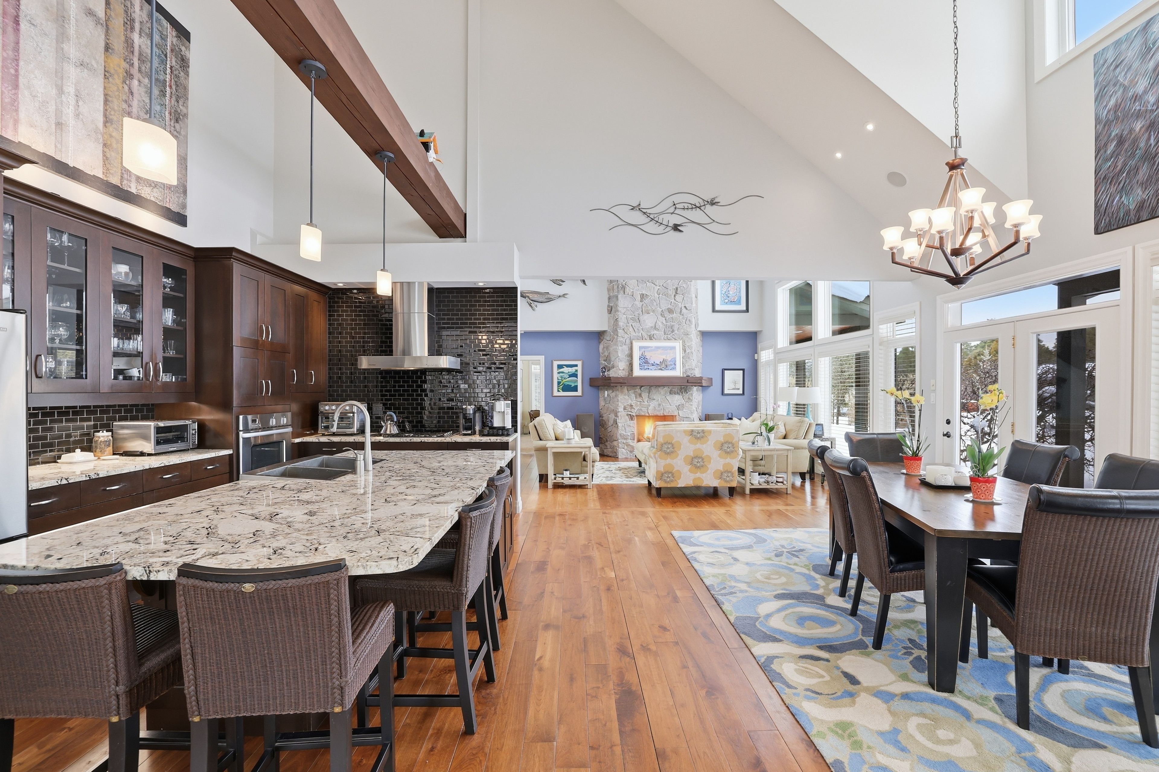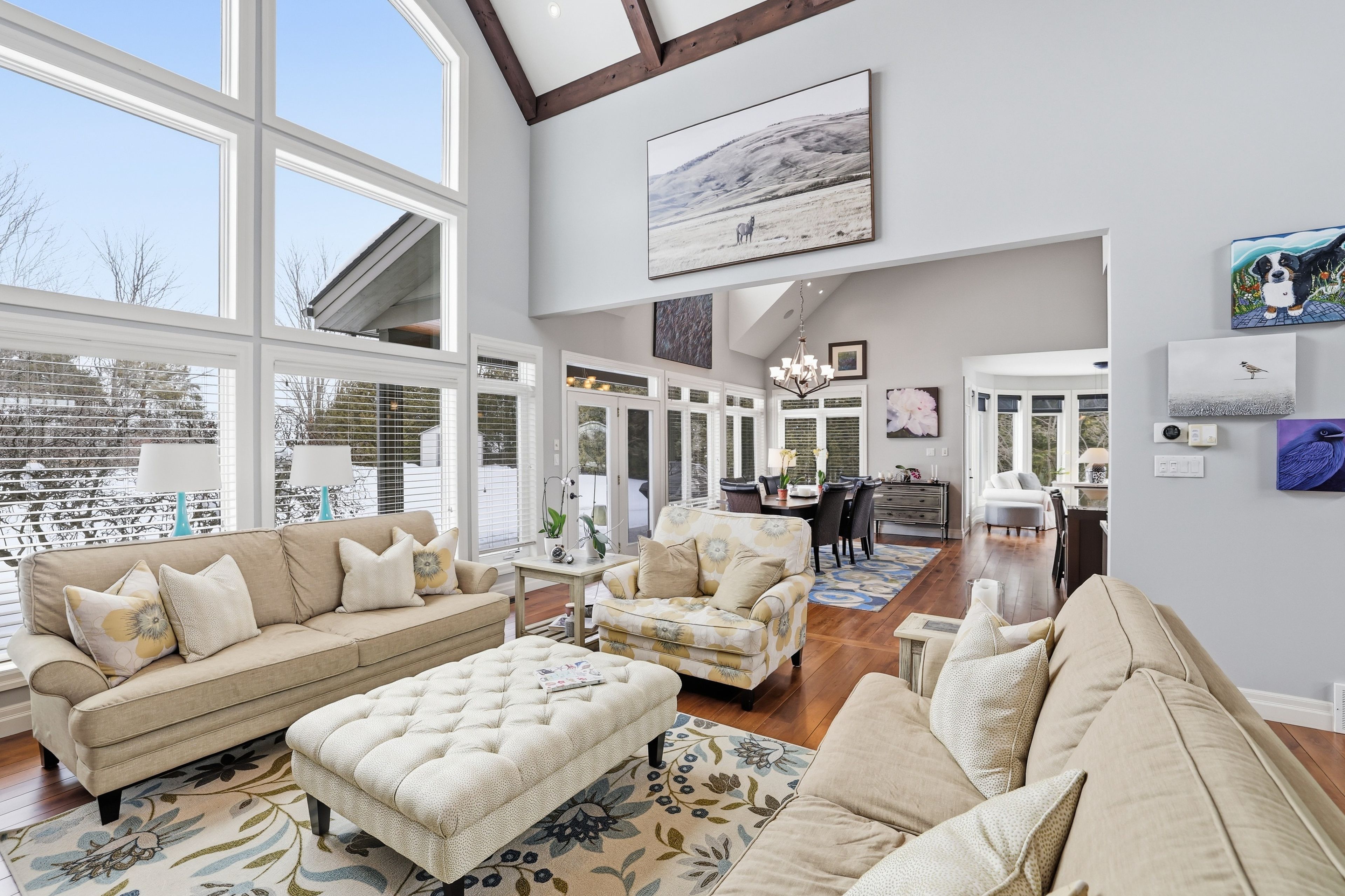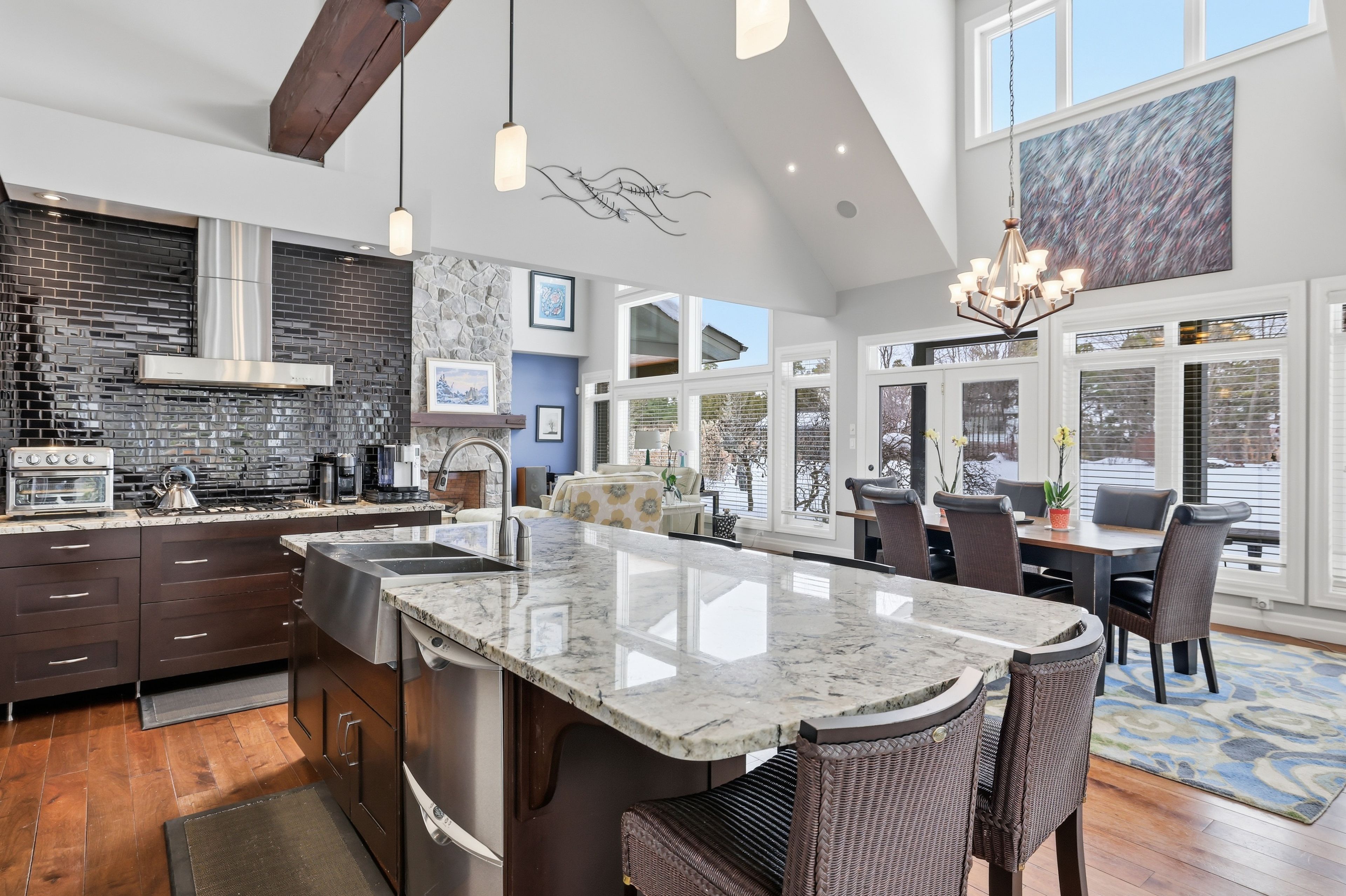 Welcome to 176 high bluff lane in the sought-after trailwoods community of thornbury, a beautifully crafted custom home offering exceptional main-floor living just moments from the water, trails and vibrant downtown. Designed with comfort and elegance in mind, the main level showcases vaulted ceilings, a stunning stone fireplace and an abundance of natural light. The spacious kitchen is the heart of the home, featuring a large island, walk-in pantry and seamless flow to the dining and living areas, perfect for entertaining. A dedicated main floor office, convenient laundry/mudroom and a serene primary suite with walk-in closet and luxurious 5-piece ensuite complete this level. Upstairs, two generous bedrooms each offer their own private ensuites ideal for family or guests. The finished lower level provides additional living space with in-floor heating, perfect for recreation, media and fitness. Built as the trailwoods model home, this property has been meticulously maintained and thoughtfully upgraded. Highlights include a 7kw generac generator, 200 amp service with whole-home surge protection, dual sump pumps with generator backup, a 5-ton carrier a/c (2020), rinnai combi boiler (2020), life breath hrv, water softener, honeywell true steam humidifier, and 24/7 monitored alarm system. The insulated garage features led lighting, heater and existing gas line. Exterior features include stamped concrete porches, hardy board siding, refreshed wood beams (2025), a 100 sq. Ft. Garden shed, extended landscaping with full irrigation, and a recently sealed driveway. An exceptional offering in west thornbury