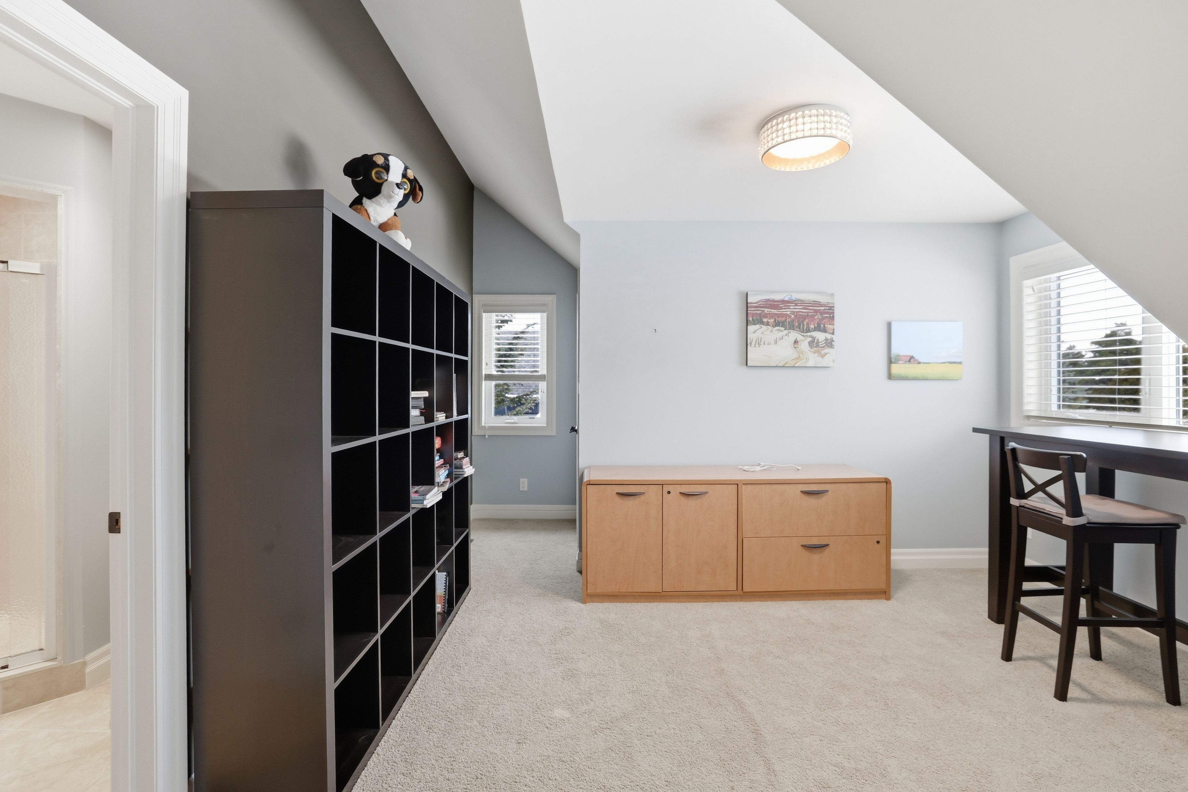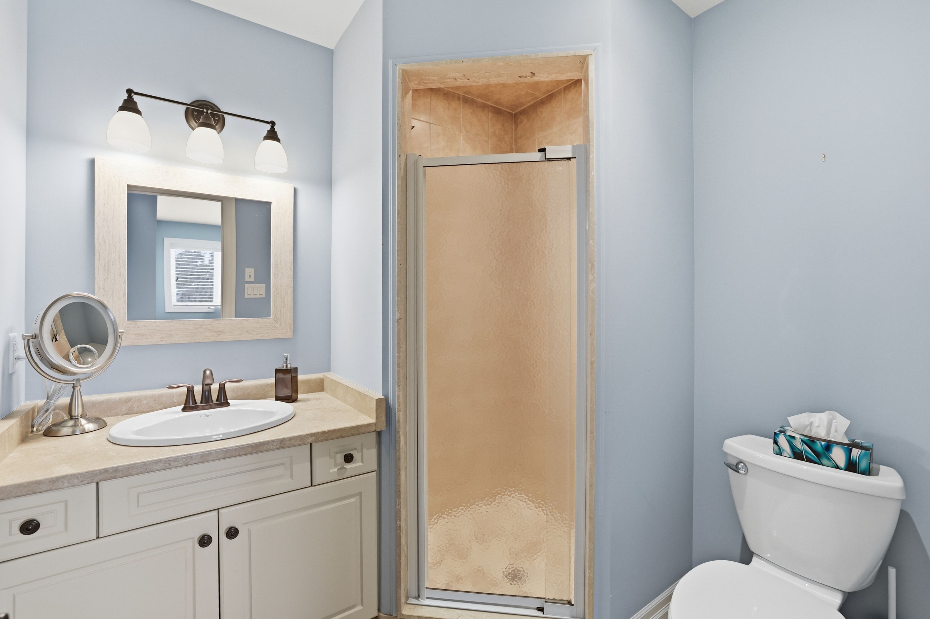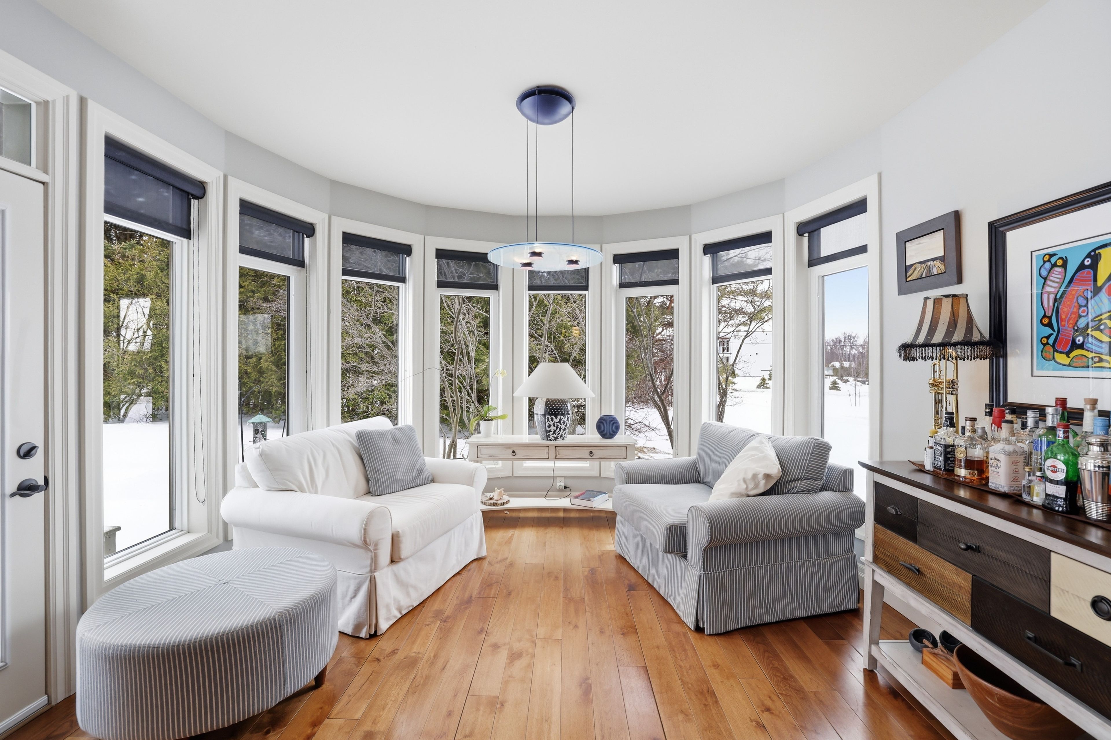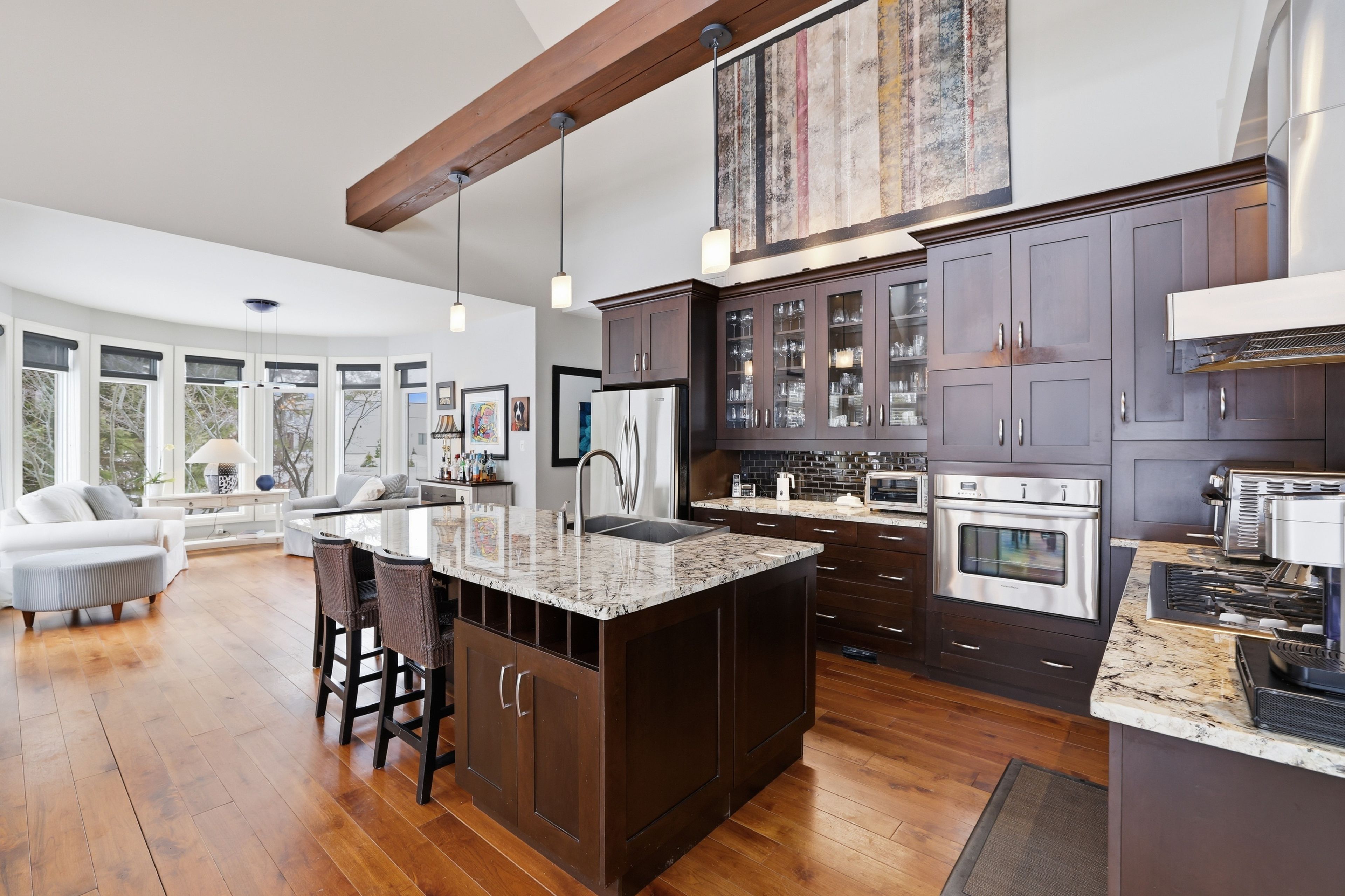 Welcome to 176 high bluff lane in the sought-after trailwoods community of thornbury, a beautifully crafted custom home offering exceptional main-floor living just moments from the water, trails and vibrant downtown. Designed with comfort and elegance in mind, the main level showcases vaulted ceilings, a stunning stone fireplace and an abundance of natural light. The spacious kitchen is the heart of the home, featuring a large island, walk-in pantry and seamless flow to the dining and living areas, perfect for entertaining. A dedicated main floor office, convenient laundry/mudroom and a serene primary suite with walk-in closet and luxurious 5-piece ensuite complete this level. Upstairs, two generous bedrooms each offer their own private ensuites ideal for family or guests. The finished lower level provides additional living space with in-floor heating, perfect for recreation, media and fitness. Built as the trailwoods model home, this property has been meticulously maintained and thoughtfully upgraded. Highlights include a 7kw generac generator, 200 amp service with whole-home surge protection, dual sump pumps with generator backup, a 5-ton carrier a/c (2020), rinnai combi boiler (2020), life breath hrv, water softener, honeywell true steam humidifier, and 24/7 monitored alarm system. The insulated garage features led lighting, heater and existing gas line. Exterior features include stamped concrete porches, hardy board siding, refreshed wood beams (2025), a 100 sq. Ft. Garden shed, extended landscaping with full irrigation, and a recently sealed driveway. An exceptional offering in west thornbury