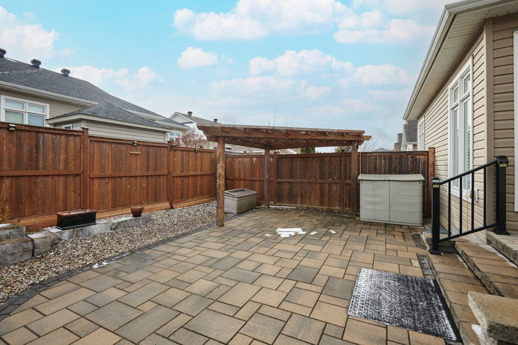Welcome to effortless living in the heart of cardinal creek village, orleans. This beautifully maintained semi-detached bungalow sits on a premium corner lot and offers the perfect blend of comfort and low-maintenance living - ideal for downsizers, retirees, or multigenerational families seeking flexible space. An elegant interlock walkway and extended driveway create immediate curb appeal. The fully fenced backyard features raised rock garden beds, river-rock detailing, a stone patio with pergola, and a built-in irrigation system to keep everything lush with ease. Enjoy direct access from the living room - perfect for quiet mornings or hosting family gatherings. Inside, the bright open-concept main level showcases 9' ceilings, hardwood floors, pot lights, crown moulding, and custom shutters. The inviting living and dining area is anchored by a cozy gas fireplace and large windows that flood the space with natural light. The timeless white kitchen offers granite countertops, stainless steel appliances, subway tile backsplash, under-cabinet lighting, and a generous island with breakfast bar. The main-floor primary suite includes a walk-in closet and 3-piece ensuite with glass shower. A versatile den makes an ideal office or reading room, and with existing hookups already in place, there is also the option for main-floor laundry to allow for full single-level living. The professionally finished lower level adds exceptional versatility with a spacious family room and second fireplace, large bedroom, full bath, dedicated laundry room, workshop, and ample storage - ideal for guests, hobbies, or extended family. Complete with central air, interior garage access, and a generac generator (negotiable), this home offers comfort and peace of mind - all within walking distance to transit and amenities. A rare opportunity to enjoy refined bungalow living in one of orleans' most desirable communities.
