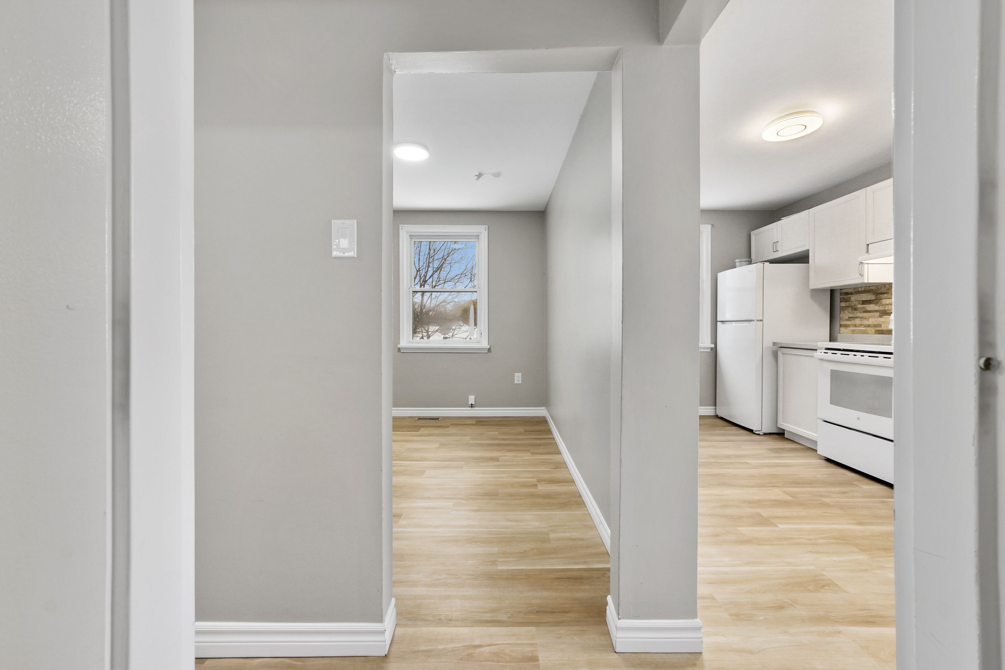 Updated upper-level two-bedroom apartment in a quiet neighbourhood, offering comfort, convenience, and plenty of light. Enjoy a large sunny living room with an expansive window overlooking the shared yard, an eat-in kitchen perfect for daily meals, and a bonus den that adds flexible space for work or relaxation. Recently renovated with newer appliances, plus the convenience of in-building laundry and one parking space. This non-smoking building sits just steps from shops, the market, and a variety of nearby amenities, an ideal spot for easy living.