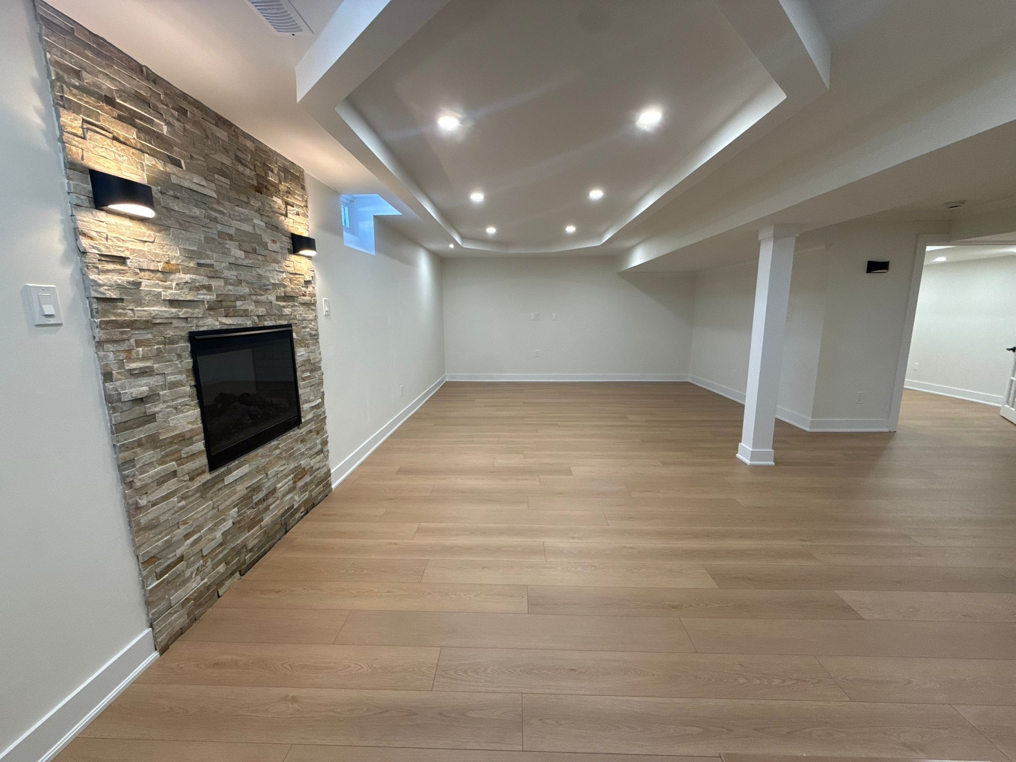 Custom home basement for lease, showcasing luxury craftsmanship and premium finishes. Thoughtfully designed with 2 bedrooms featuring large closets and french doors, plus an open office space, ideal for work-from-home. The kitchen flows into a multi-purpose great room anchored by a gas fireplace set into a striking accent wall. Quality upgrades include 15mm waterproof laminate and potlights throughout. One bedroom offers above-grade windows for added natural light. A separate entrance is to be added. Includes 2 driveway parking spaces. Stainless steel fridge, stove and dishwasher to be moved in, plus laundry. Prime location: steps to robert munsch public school and walking distance to a large plaza with walmart supercentre, lcbo, restaurants, cafés, banks, entertainment + more. Minutes to trails and golf. Tenant to pay 30% of utilities. Wifi included; cable not included. Shared backyard access. Tenant to clear snow on their portion of the driveway and walkway.