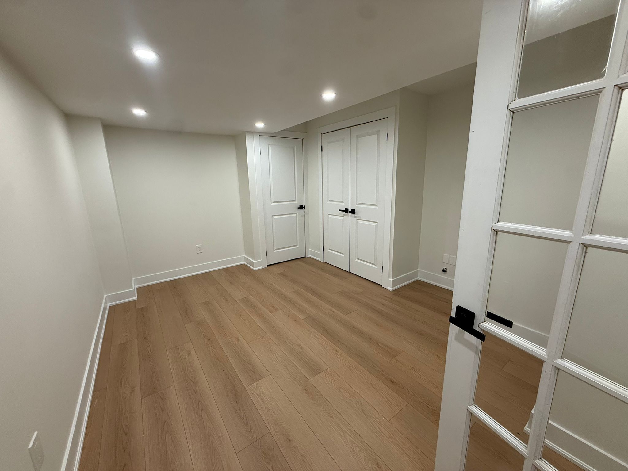 • Two bedrooms with large closets and French doors for added elegance.