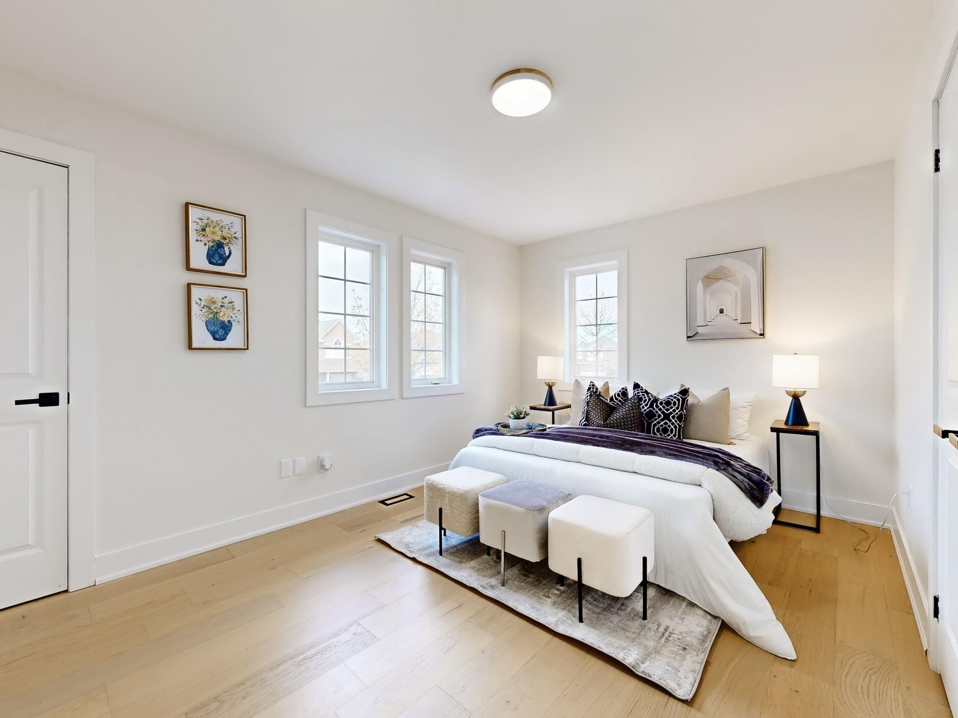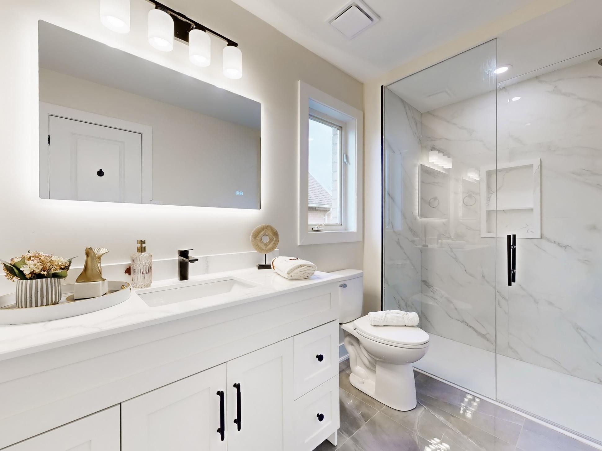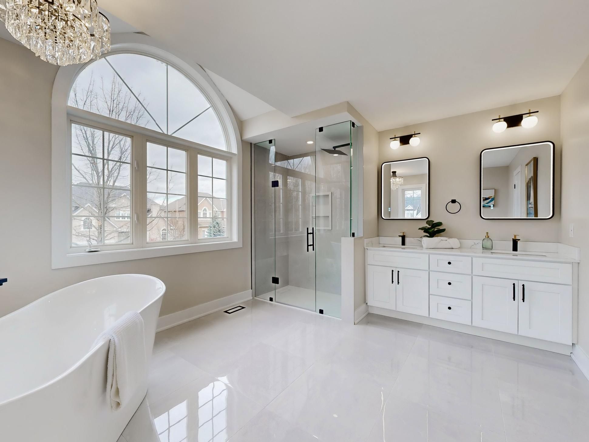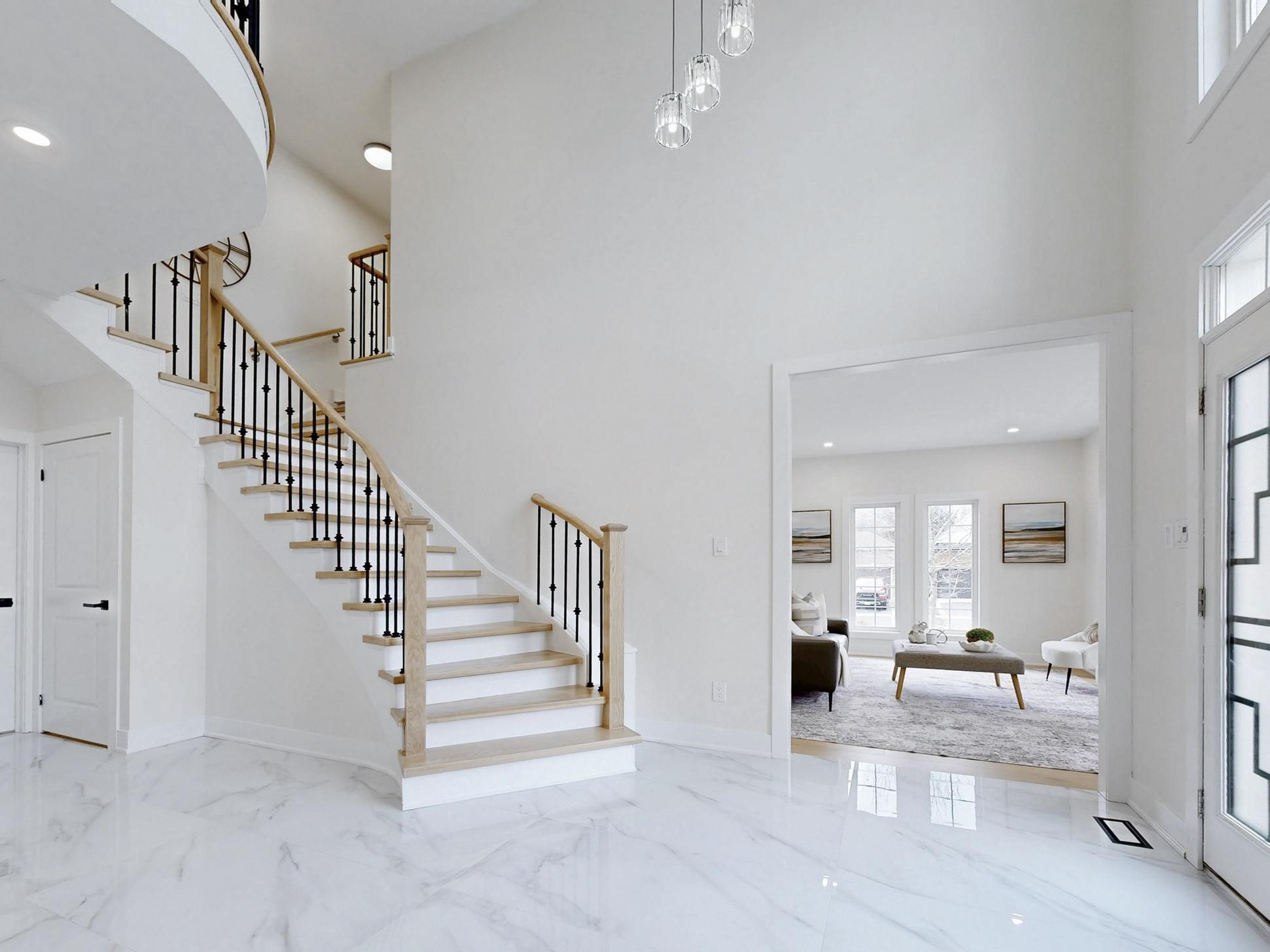 Exquisite fully renovated 3000+ sq ft custom home - luxury & craftsmanship. Discover unparalleled luxury in this fully renovated 5-bedroom, 5-bathroom custom home, meticulously upgraded w/over $250k in premium finishes & 1-year workmanship warranty. Every detail thoughtfully designed for style, comfort & lasting quality. Step onto large-format porcelain tiles, 3/4 engineered oak hardwood & durable 15mm waterproof laminate in the basement. All new doors, frames, baseboards & casings w/modern hardware create a seamless, sophisticated flow. Refinished stairs with new oak treads & sleek metal pickets. The chef-inspired kitchen features new stainless steel appliances, 3/4 pet-finish soft close cabinetry, motion-activated hands-free faucet & large single-basin sink. Bathrooms are fully upgraded w/new toilets, illuminated mirrors, vanities, tubs, curbless shower pans & elegant glass doors. Enjoy a new 100,000 btu dual-stage twin-filter armstrong furnace (25-year warranty), new insulated garage doors w/keyed/keyless entry, custom flush wall vents &floor registers. All-new led lighting-including pot lights, flush mounts, chandeliers & programmable exterior lights. Abundance of natural light floods the home through new windows & sliding patio door. The 5-year new roof, inspected by cd roofing, provides peace of mind. Landscaping includes: fully winterized 12-zone irrigation system, refreshed perimeter fence w/new gates & professionally leveled & secured steps and stones-perfect for year-round outdoor enjoyment. Truly a move-in ready luxury home: thoughtfully upgraded & masterfully crafted, this home blends high-end finishes, meticulous workmanship & practical upgrades to create a turnkey sanctuary with unmatched style, comfort & peace of mind.