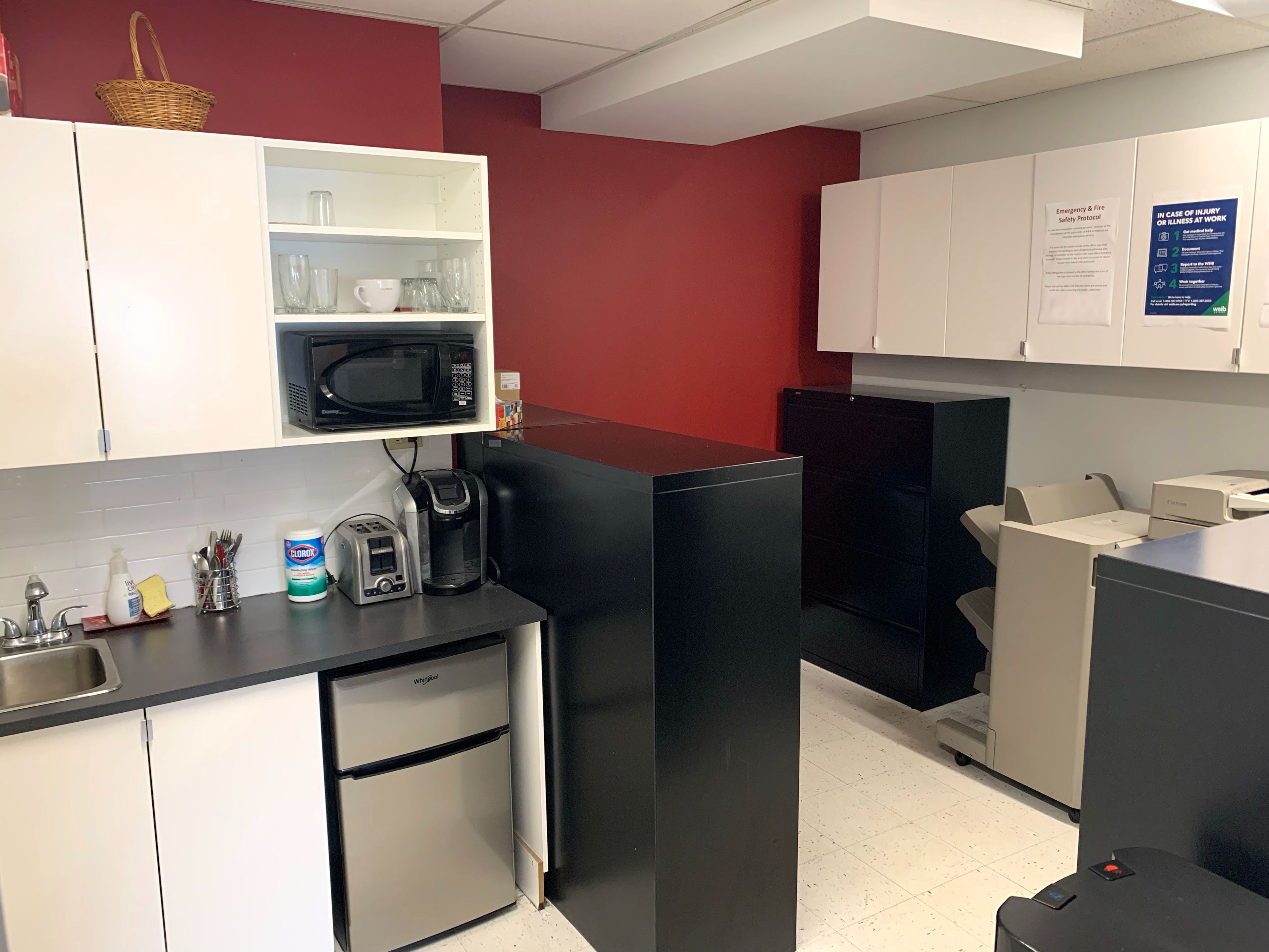 Excellent sun-filled corner office space with great visibility & vibe in an outstanding location! This renovated space includes reception area, 2 private glass offices / meeting or phone rooms, boardroom, kitchenette with lunchroom / storage area and additional storage closet. Well maintained building with mixed retail & office space. Plenty of parking, close to highway, easy bus route access. Zoning allows for many uses. An idea space to build company culture, create synergy and become more productive!