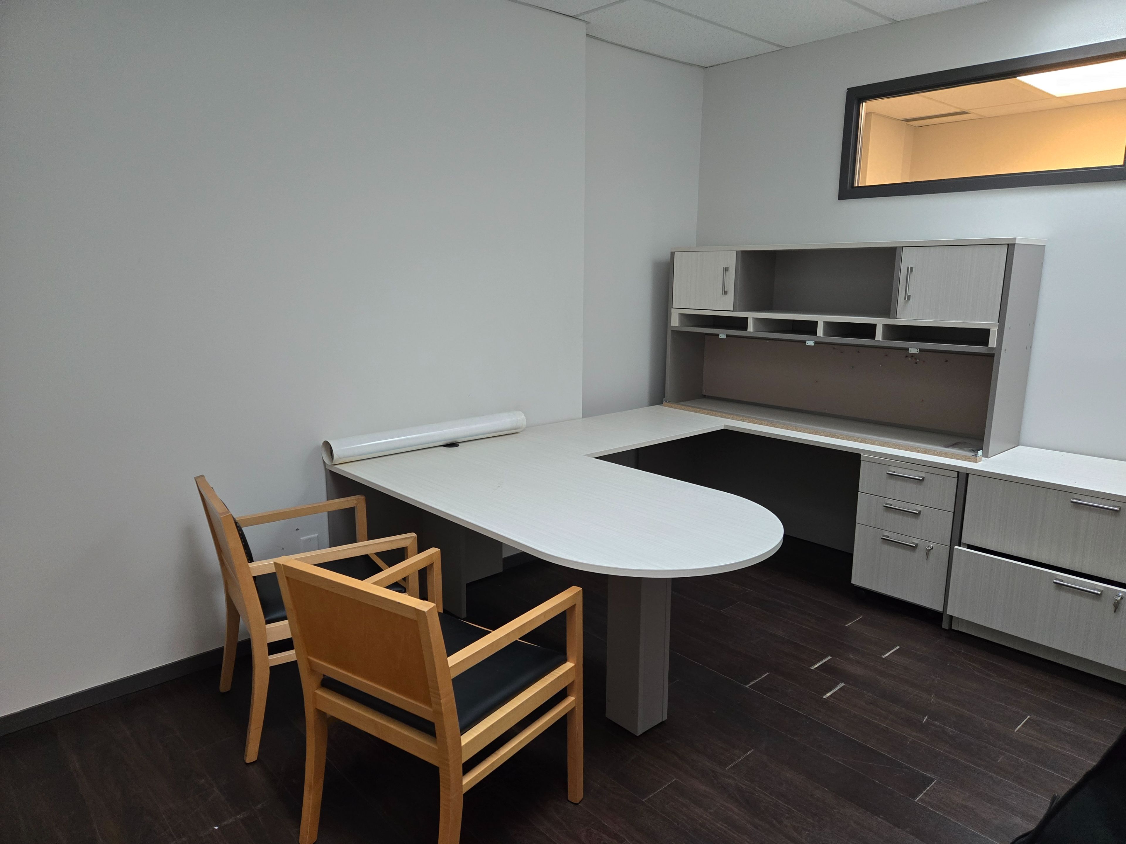• Includes 5-6 private offices and a meeting room for flexibility.