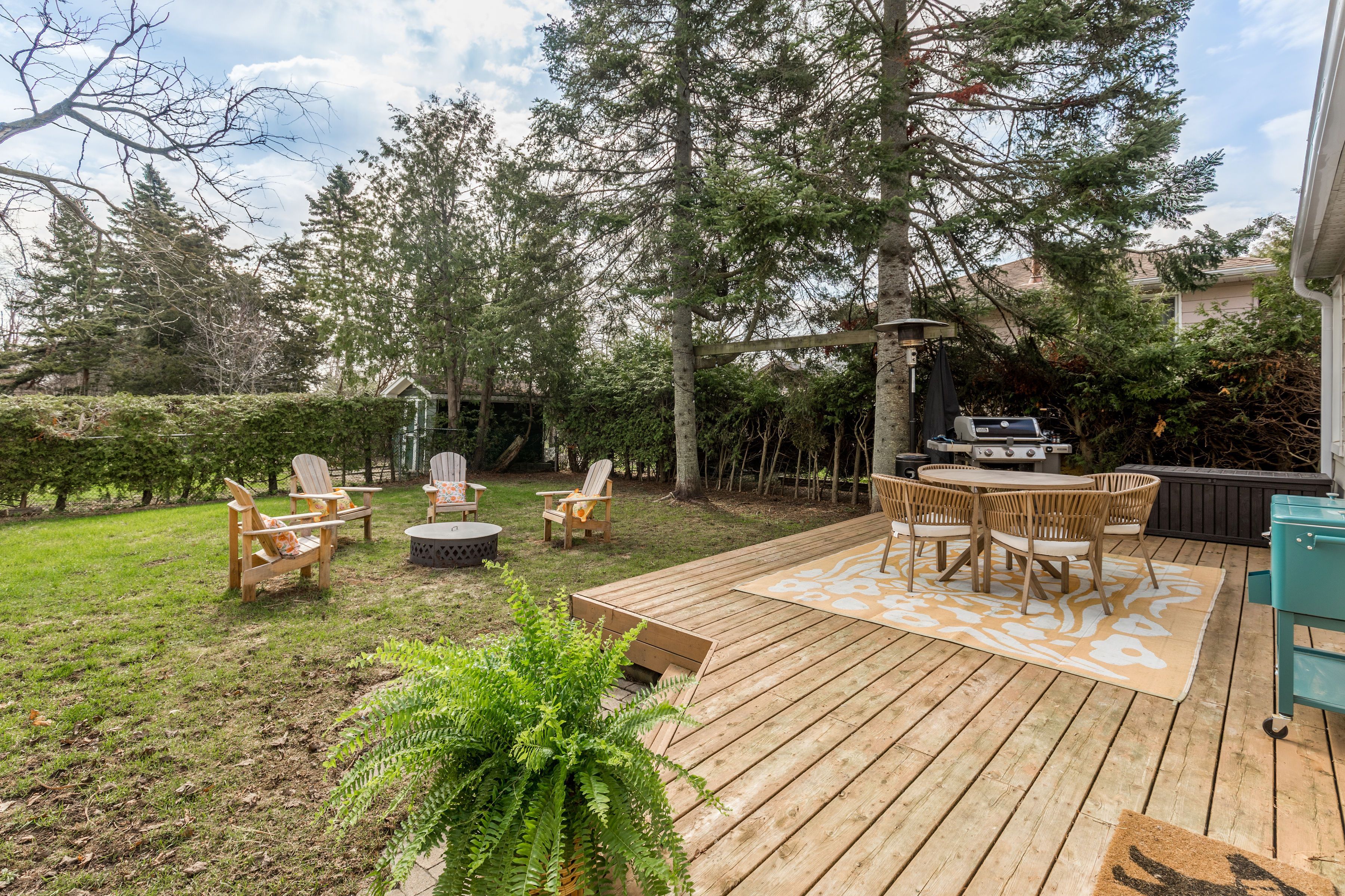 • Private backyard with mature trees and a beautifully manicured lawn.
