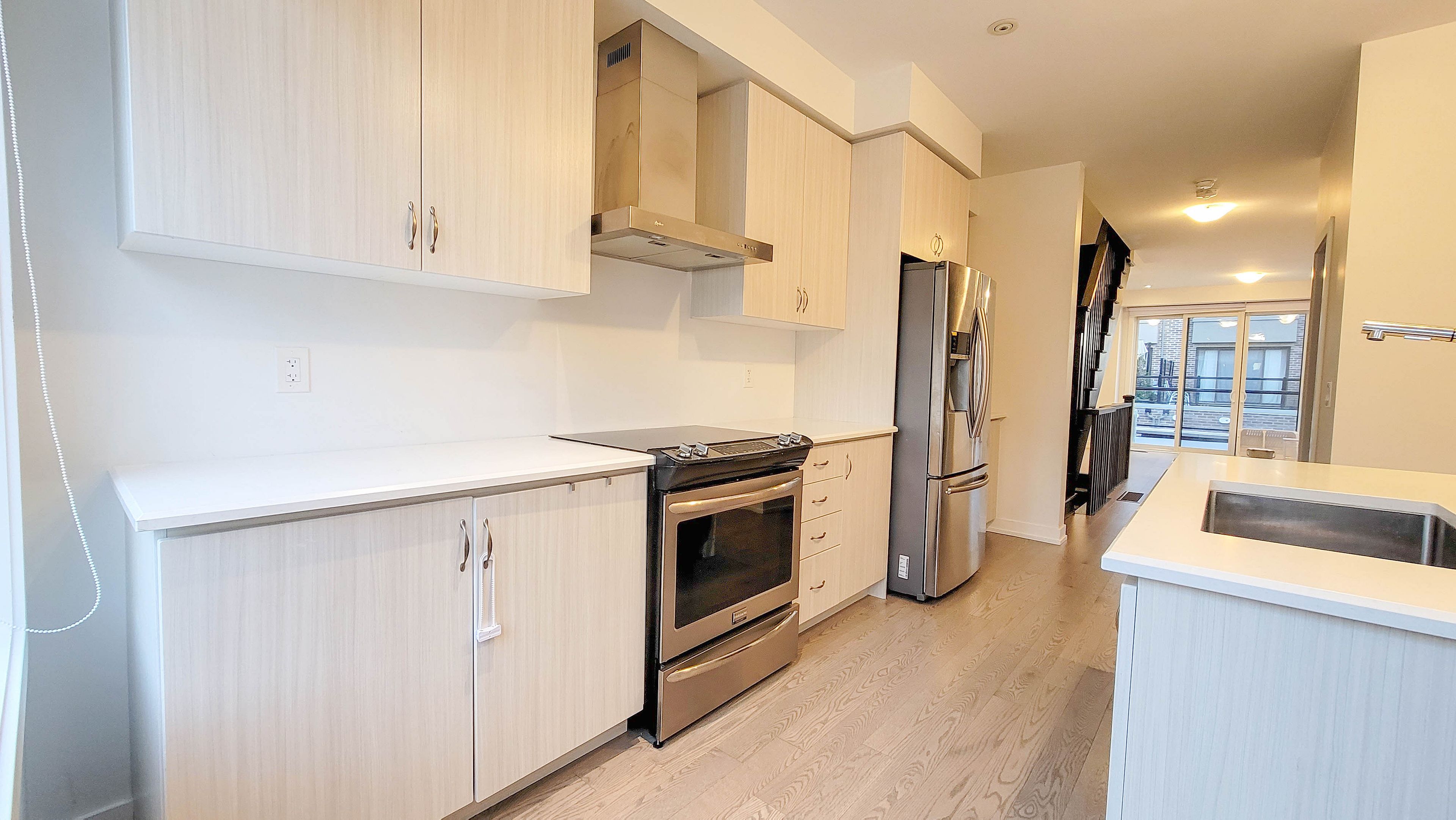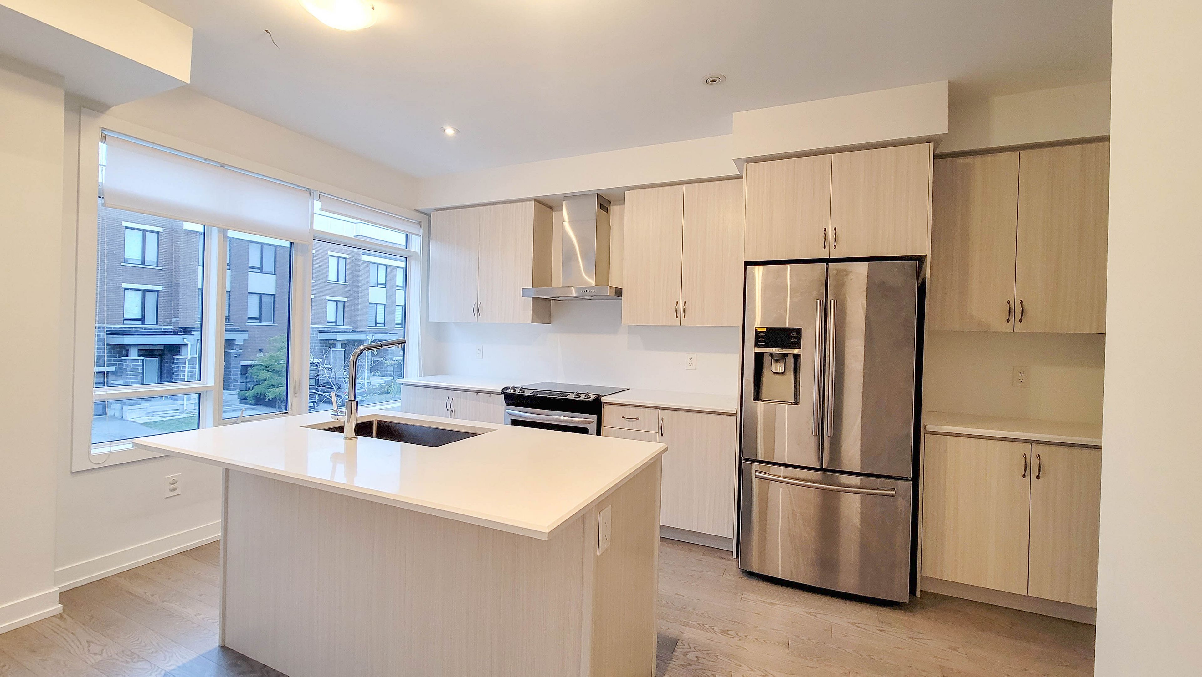 Rare executive townhouse offers modern living and convenience in the heart of maple. This bright, open concept 3+1 bedroom town boasts a gourmet-style kitchen, quartz counters, 9-foot smooth ceilings & potlights. Walk-out from the living room to a huge terrace for all of your entertainment needs! Primary bedroom w/ 3 pc ensuite & customized closets. 4th bedroom located on the ground floor w/ 3 pc ensuite. Close to the eagles nest golf club, walmart, lowes, go station, top ranking schools (michael cranny 9/10 score), parks, shopping, community centre, and highway 400.