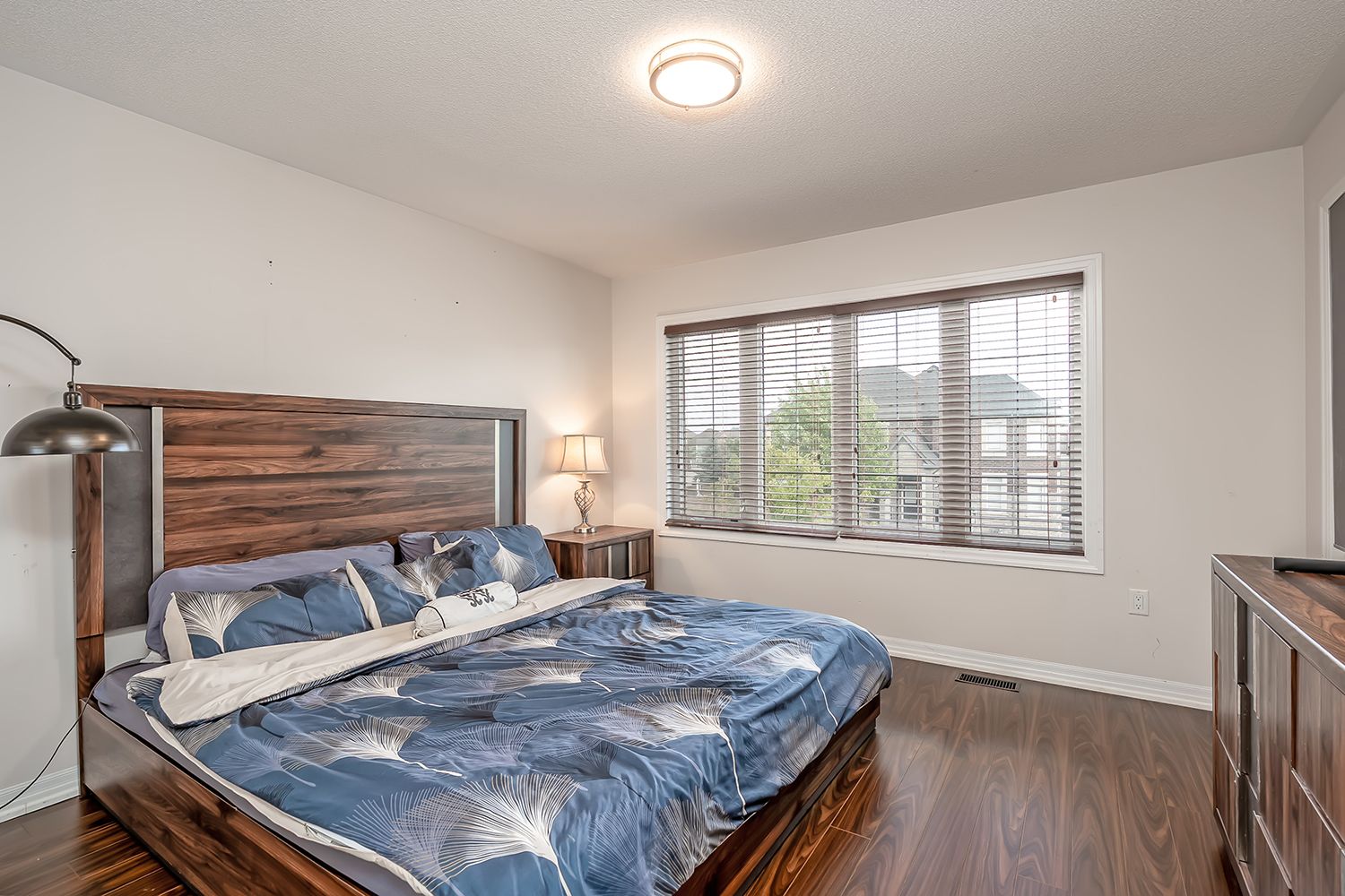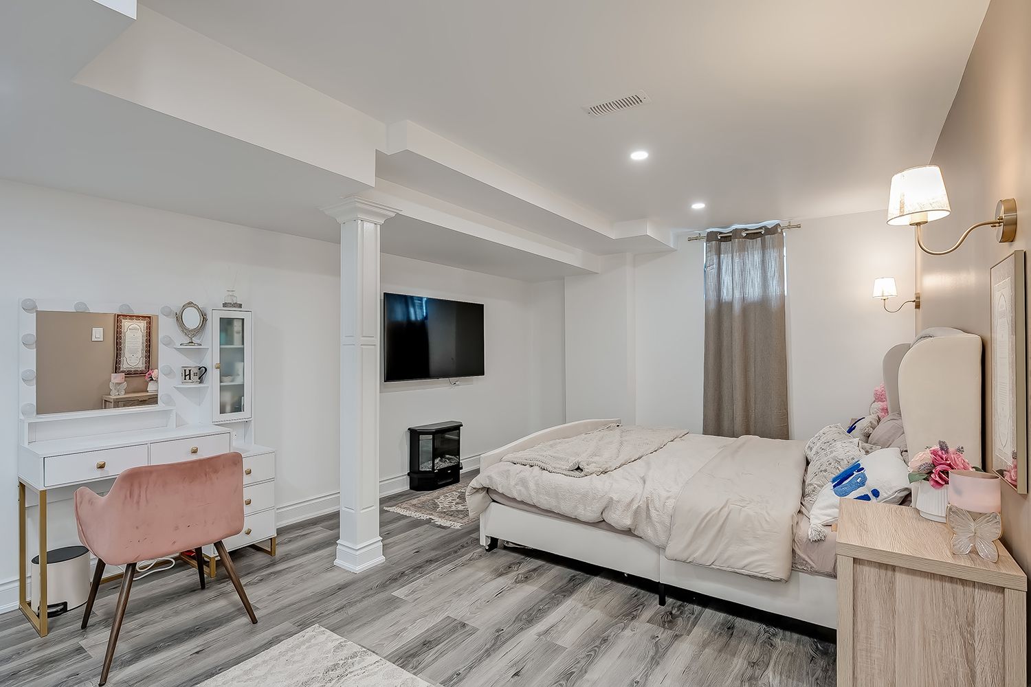 Welcome to the jasmine french chateau model by mattamy homes where timeless elegance meets modern comfort. This beautifully designed home offers a bright and airy main floor with 9-foot ceilings, rich hardwood floors, pot lights, and a cozy gas fireplace. The open-concept layout seamlessly connects the living and dining spaces, while the spacious eat-in kitchen features abundant cabinetry, a generous island, and direct access to a walk-in pantry and a convenient mudroom with a second walk-in closet off the garage. Upstairs, you'll find four well-appointed bedrooms. Two bedrooms feature private ensuites and walk-in closets, while a third enjoys semi-ensuite access and a charming window seat. The expansive primary suite is a true retreat with its own walk-in closet and a spa-like 5-piece ensuite, complete with double sinks, a soaker tub, and a glass-enclosed shower. The second-floor laundry room is full of natural light, adding both practicality and charm. The lower level has recently been professionally finished that offers even more living space, including a media room with pot lights, a dedicated home office area, a bright spacious additional bedroom with an oversized closet, and a sleek 3-piece bathroom. Bonus e/v charging station in the garage for your electric vehicle! This family home is perfectly located within walking distance to schools, smart centres shopping, major highways, and the go station this home offers exceptional lifestyle and convenience for today's modern family