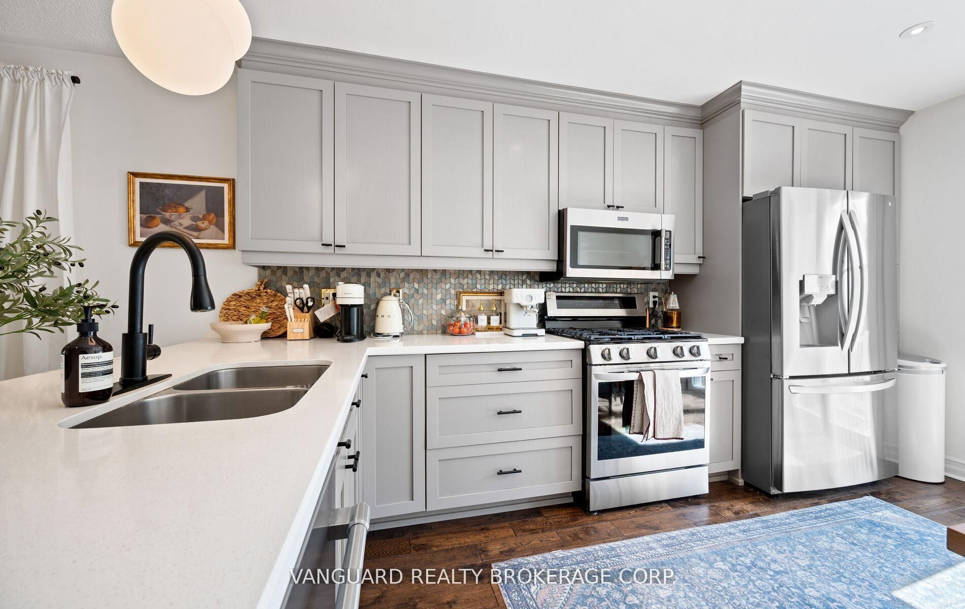 • Updated kitchen with modern cabinetry and stainless steel appliances.