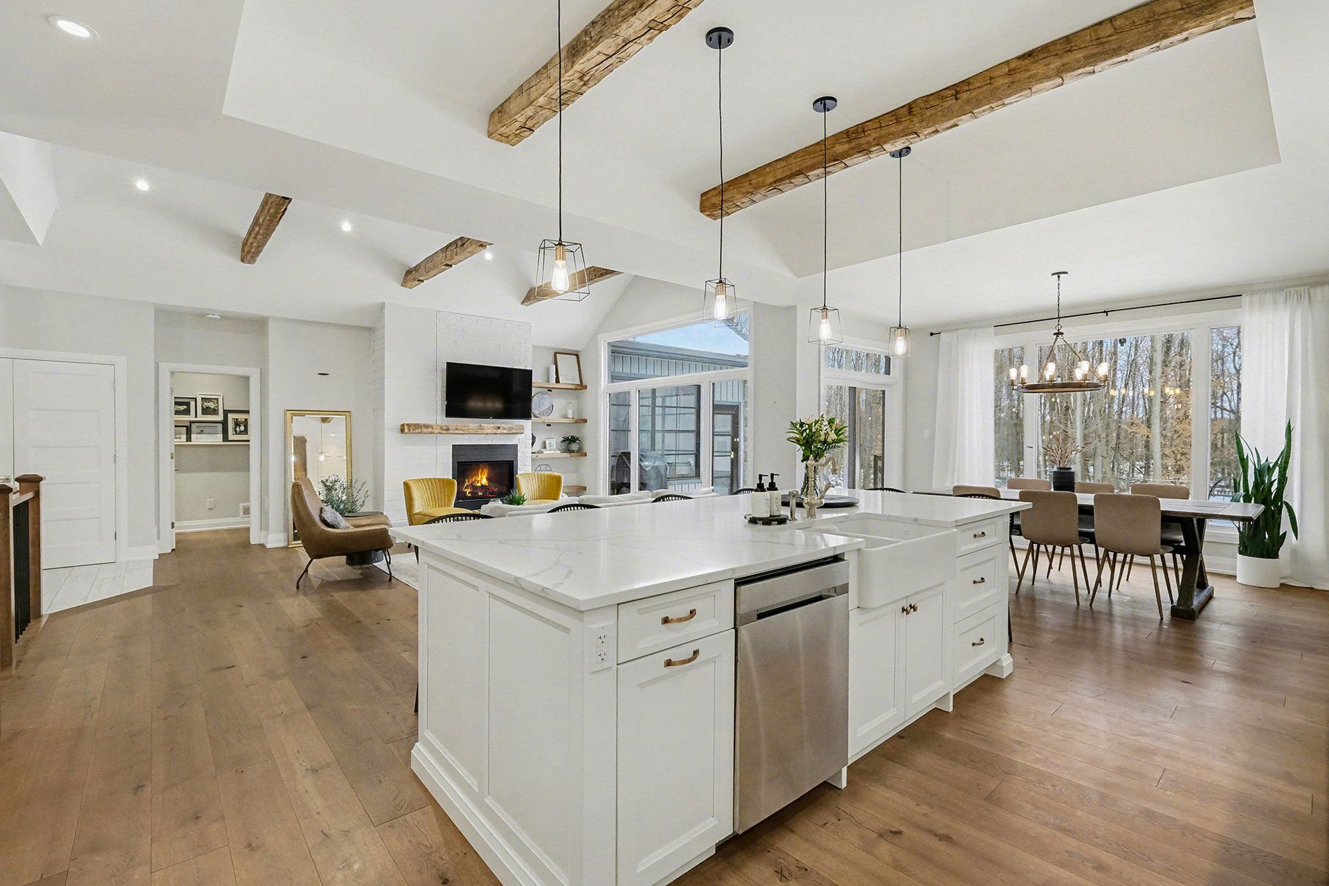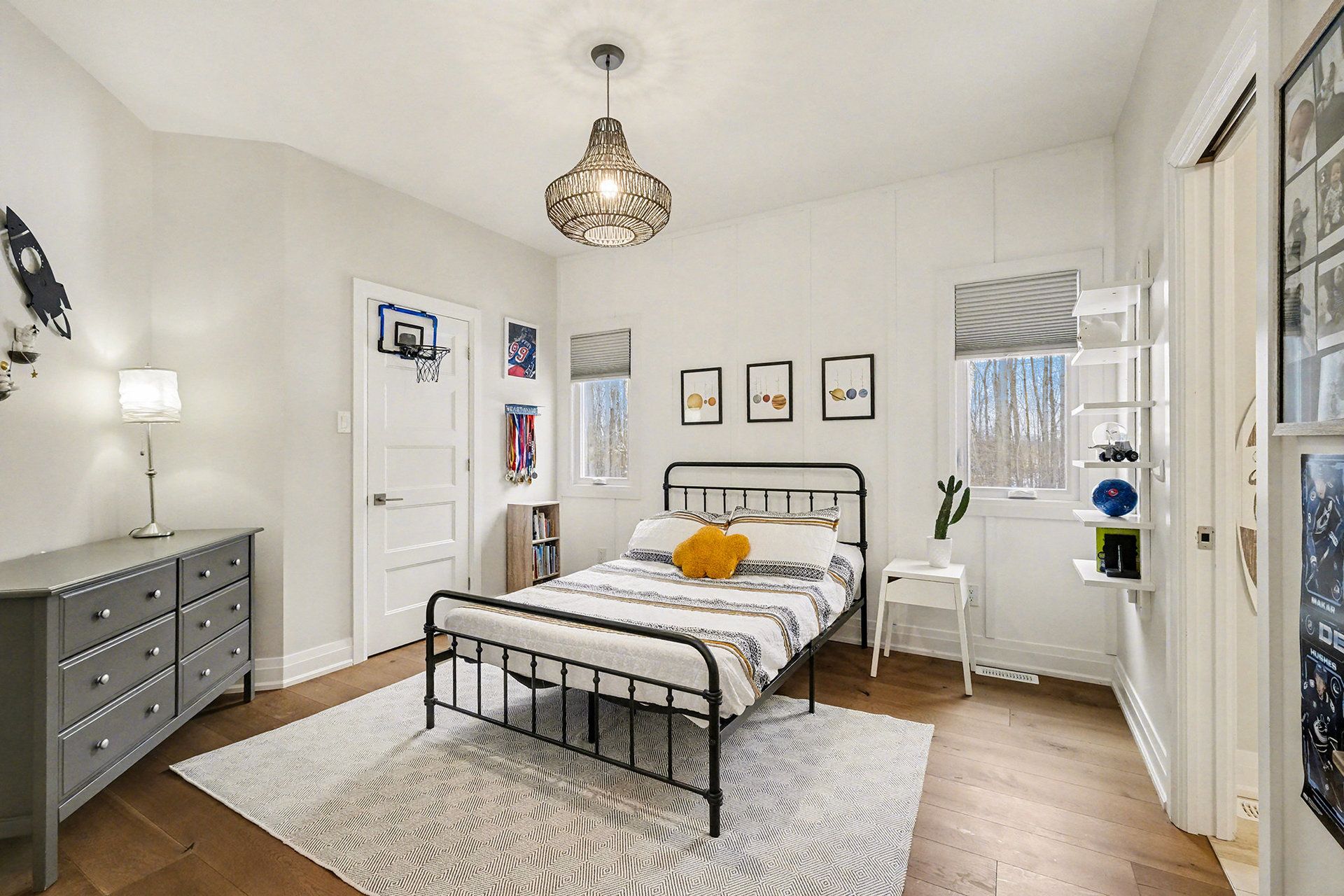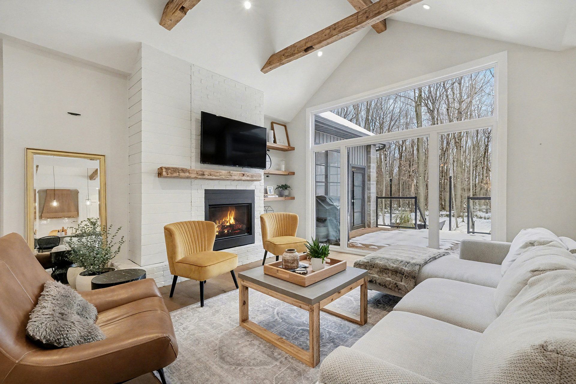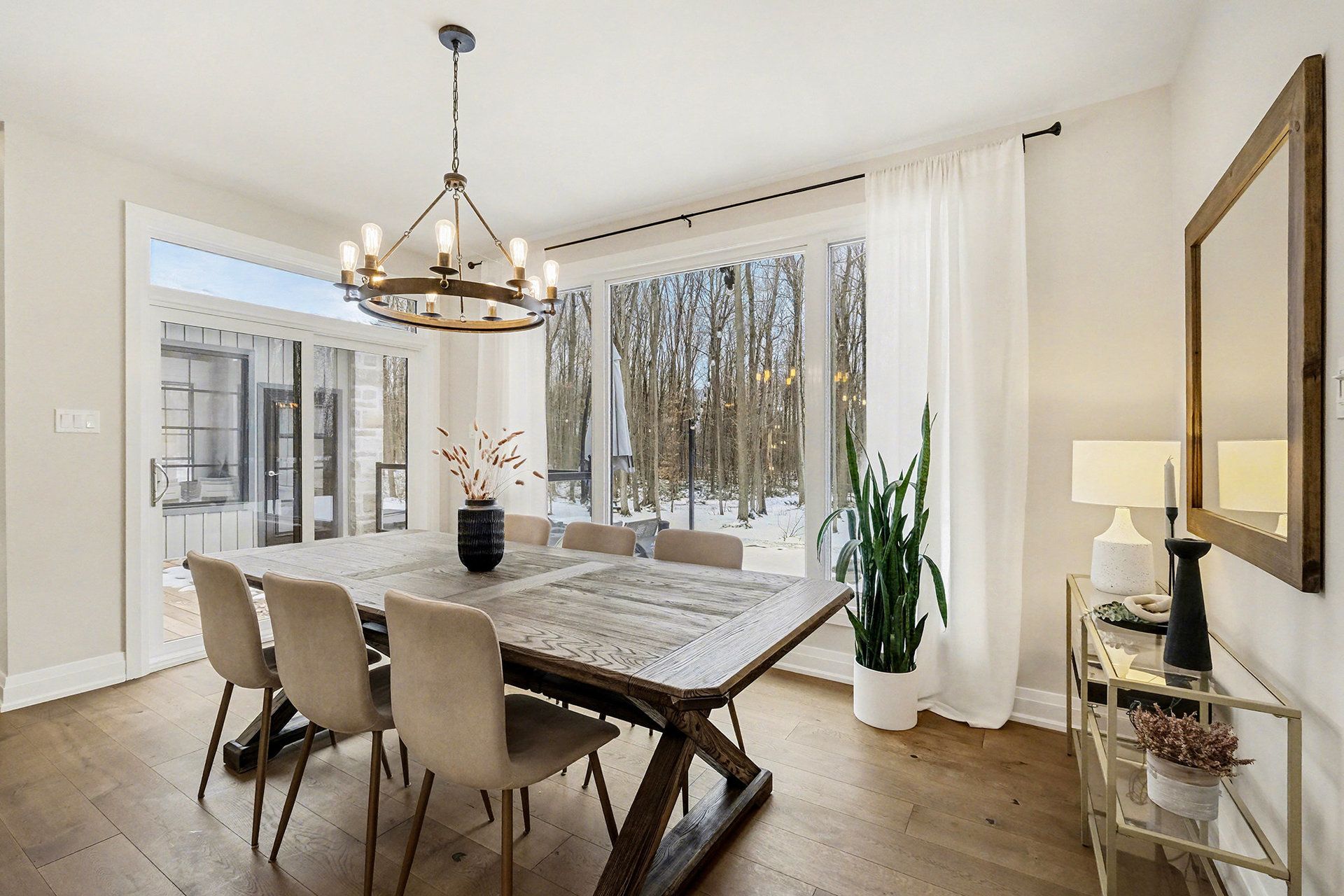 *open house sunday dec 7 2-4pm* prepare to discover the pinnacle of luxury country living in this breathtaking custom designer-built estate, perfectly poised on a premium, private treed lot just shy of four acres. Imagine waking up to mornings flooded with light, where the cathedral ceilings soar above elegant wood beam accents, setting the stage for unforgettable gatherings around the colossal 11-foot quartz island that anchors the open-concept gourmet kitchen, complete with a massive walk-in pantry and walls of fenestration framing serene outdoor views. The main floor offers a private sanctuary in the primary suite, boasting a walk-through closet, a highly upgraded ensuite with custom solid wood vanities and a large soaker tub, and direct access to a cozy, fireplace-warmed sunroom-your perfect year-round retreat. From the double attached garage, a large mudroom and main-floor laundry ensure family life stays organized, while two spacious children's bedrooms are connected by a high-end jack and jill washroom and a charming, flexible nook area, ideal as a reading retreat or homework station. The lower level is an entertainer's dream playground, featuring a sprawling bar area, a dedicated movie room for cinematic nights, and a generous kids' playroom beside it. Also on the lower level, a fourth bedroom, a fully equipped gym, and convenient walk-up garage access-perfectly accommodating multi-generational living. This dream is complete with an absolutely massive detached shop, featuring two large bays, a third side bay, and a loft, providing an incredible space for storing every toy and piece of equipment, cementing this home as the ultimate rural escape, truly overflowing with too many high-end, custom finishes to count. Don't miss out, book your private visit today!