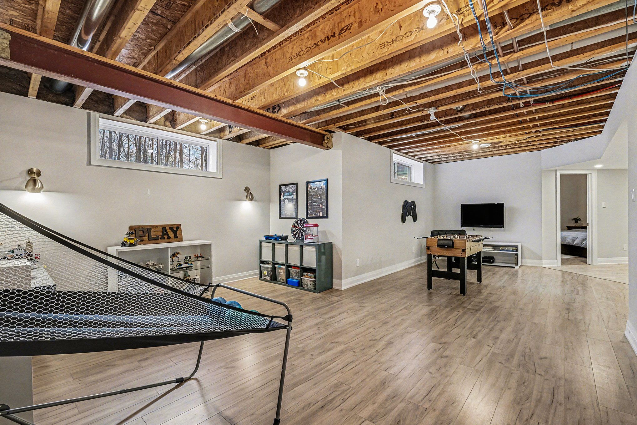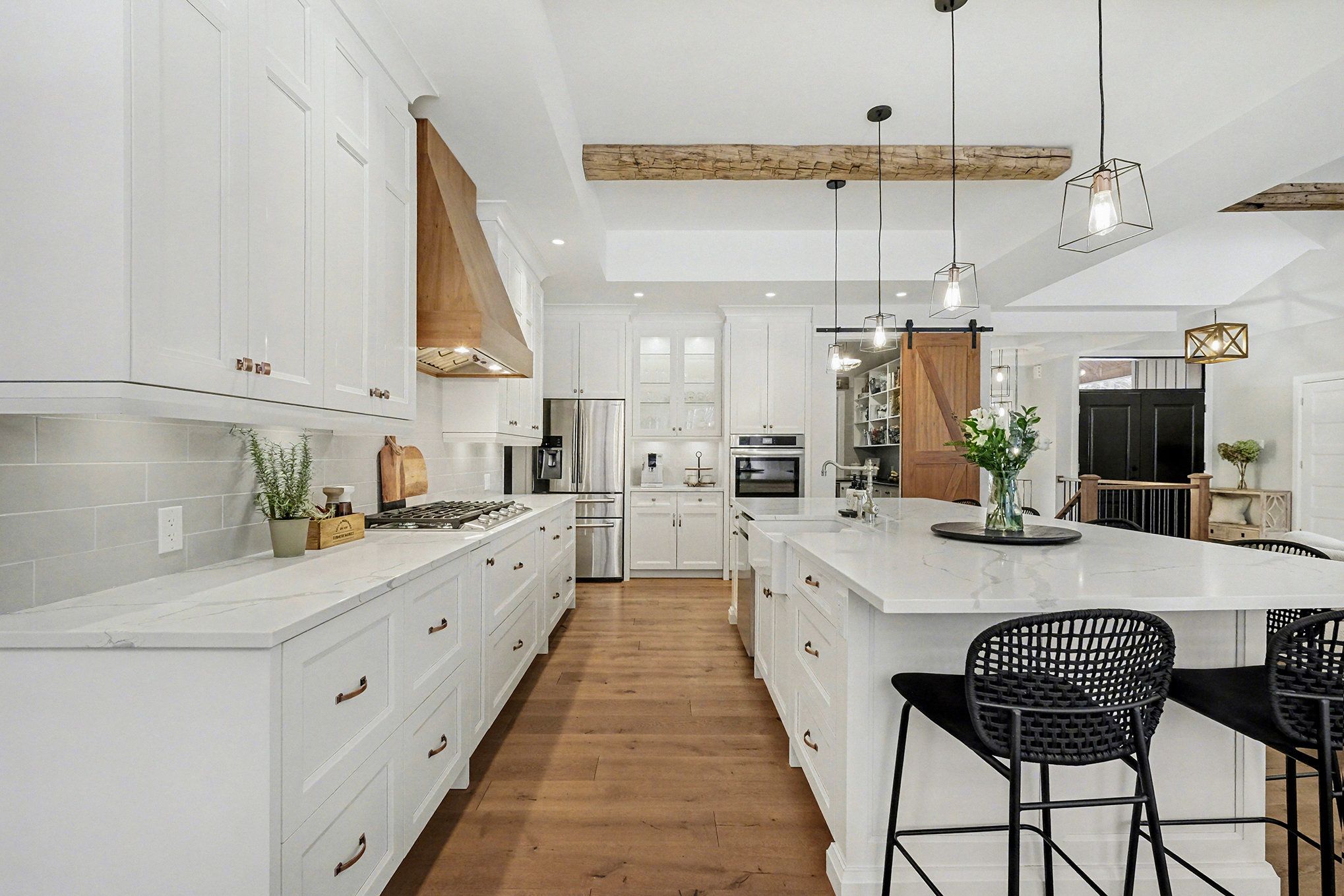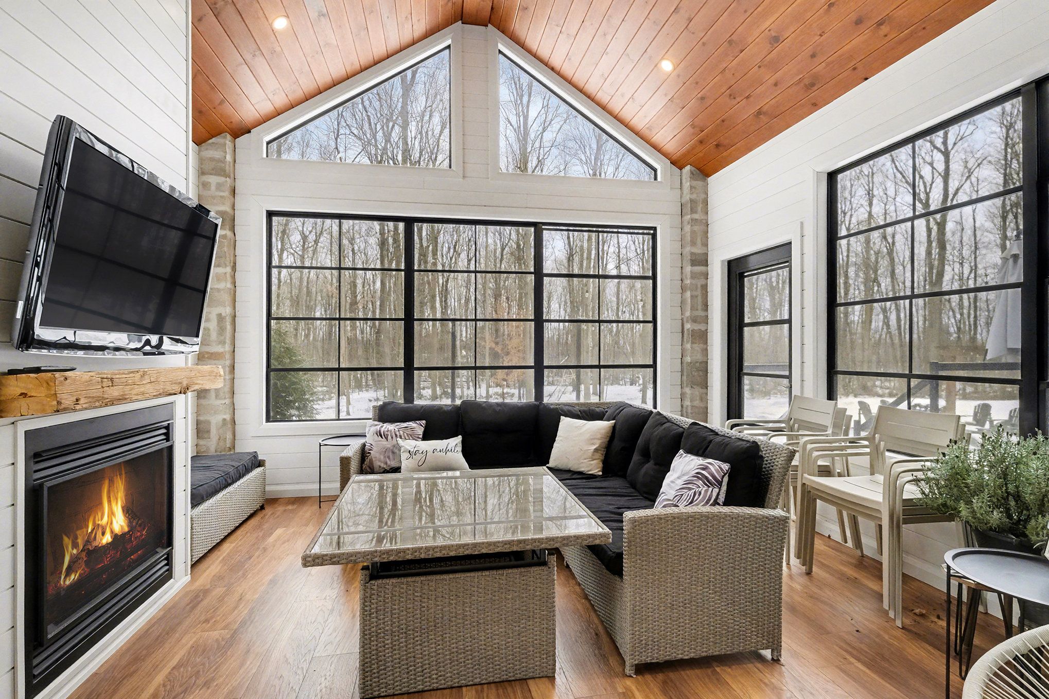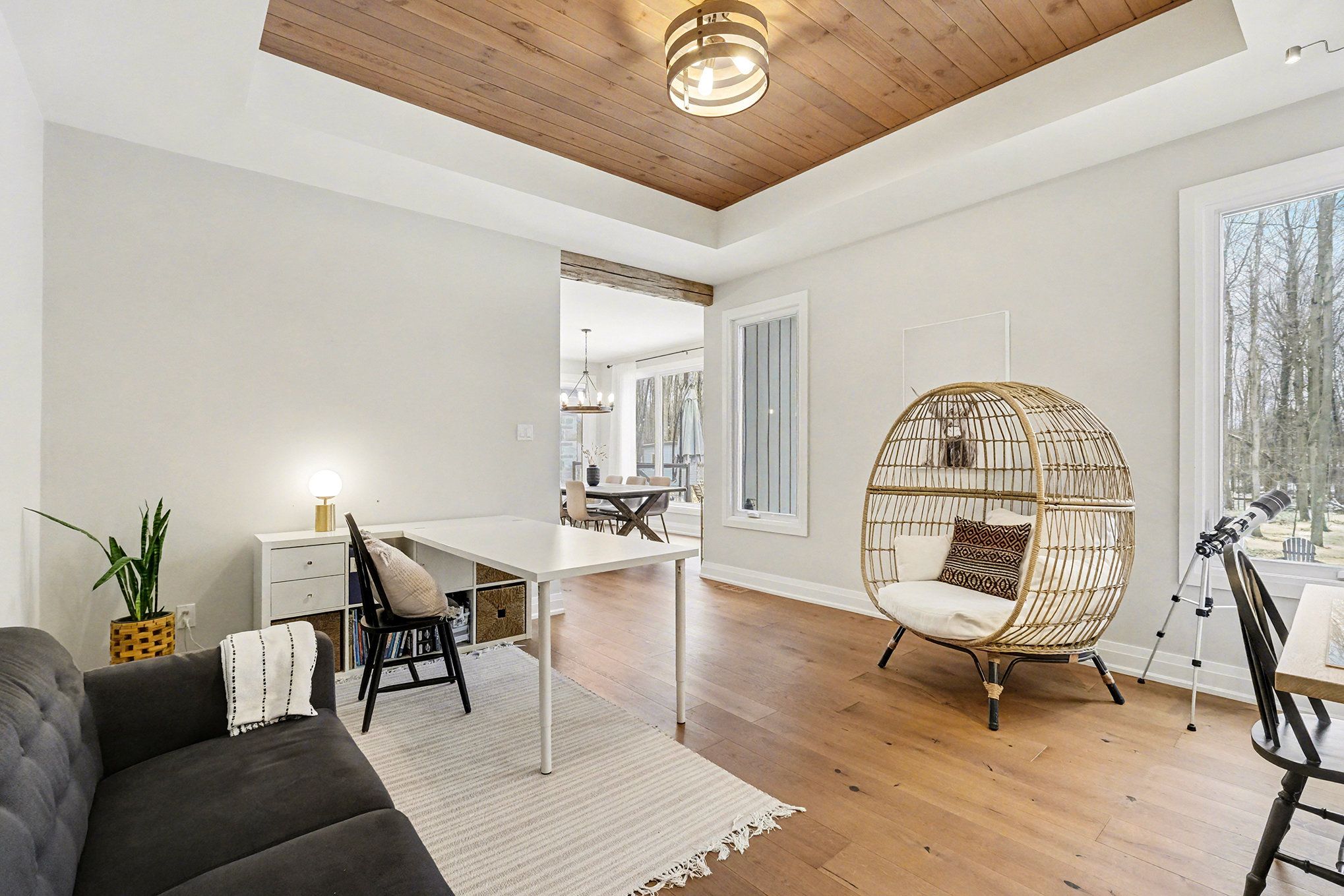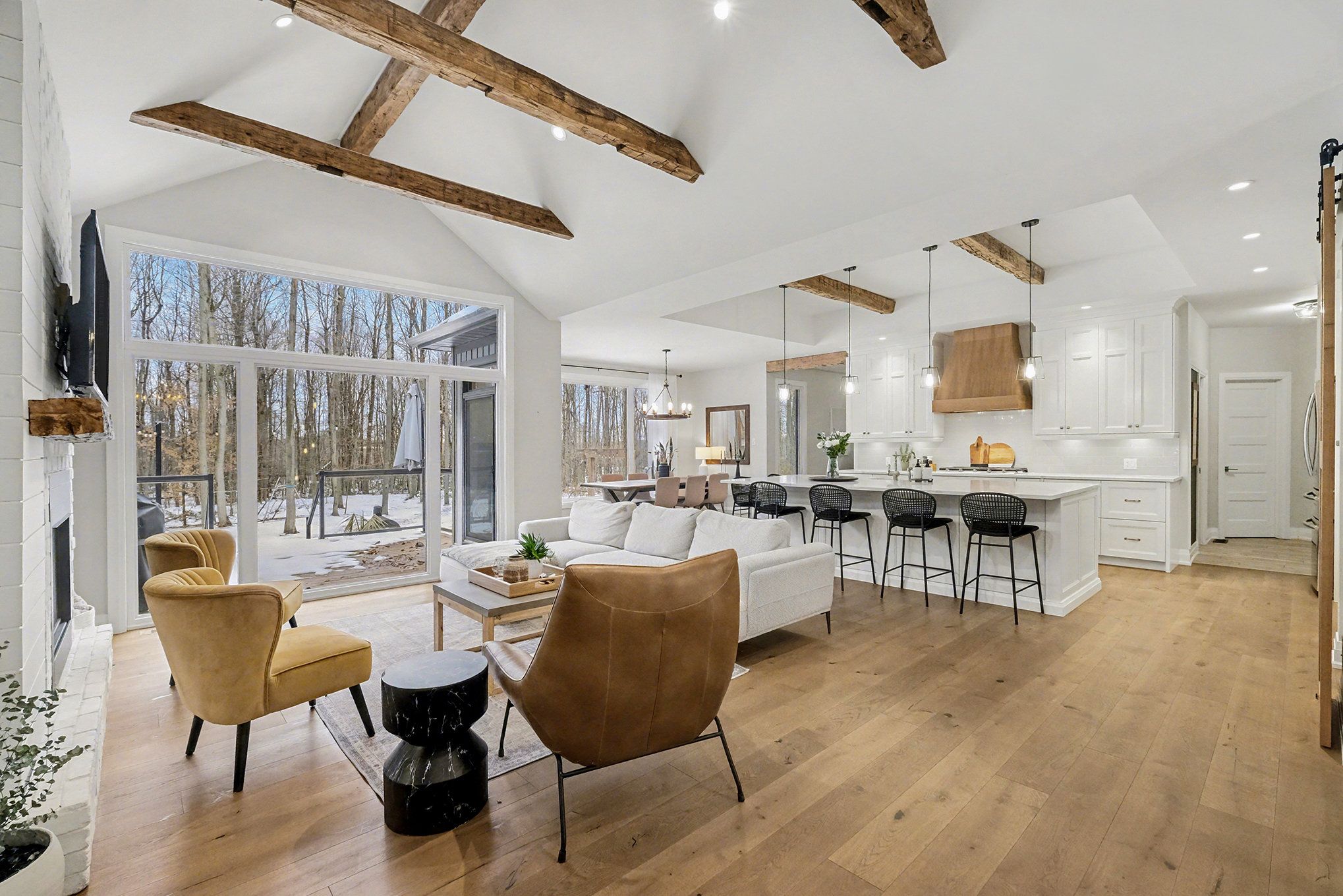 *open house saturday feb 7th 2026* prepare to discover the pinnacle of luxury country living in this breathtaking custom designer-built estate, perfectly poised on a premium, private treed lot just shy of four acres. Imagine waking up to mornings flooded with light, where the cathedral ceilings soar above elegant wood beam accents, setting the stage for unforgettable gatherings around the colossal 11-foot quartz island that anchors the open-concept gourmet kitchen, complete with a massive walk-in pantry and walls of fenestration framing serene outdoor views. The main floor offers a private sanctuary in the primary suite, boasting a walk-through closet, a highly upgraded ensuite with custom solid wood vanities and a large soaker tub, and direct access to a cozy, fireplace-warmed sunroom-your perfect year-round retreat. From the double attached garage, a large mudroom and main-floor laundry ensure family life stays organized, while two spacious children's bedrooms are connected by a high-end jack and jill washroom and a charming, flexible nook area, ideal as a reading retreat or homework station. The lower level is an entertainer's dream playground, featuring a sprawling bar area, a dedicated movie room for cinematic nights, and a generous kids' playroom beside it. Also on the lower level, a fourth bedroom, a fully equipped gym, and convenient walk-up garage access-perfectly accommodating multi-generational living. This dream is complete with an absolutely massive detached shop (32ft x 48ft) , featuring two large bays, a third side bay, and a loft, providing an incredible space for storing every toy and piece of equipment, cementing this home as the ultimate rural escape, truly overflowing with too many high-end, custom finishes to count. Don't miss out, book your private visit today!
