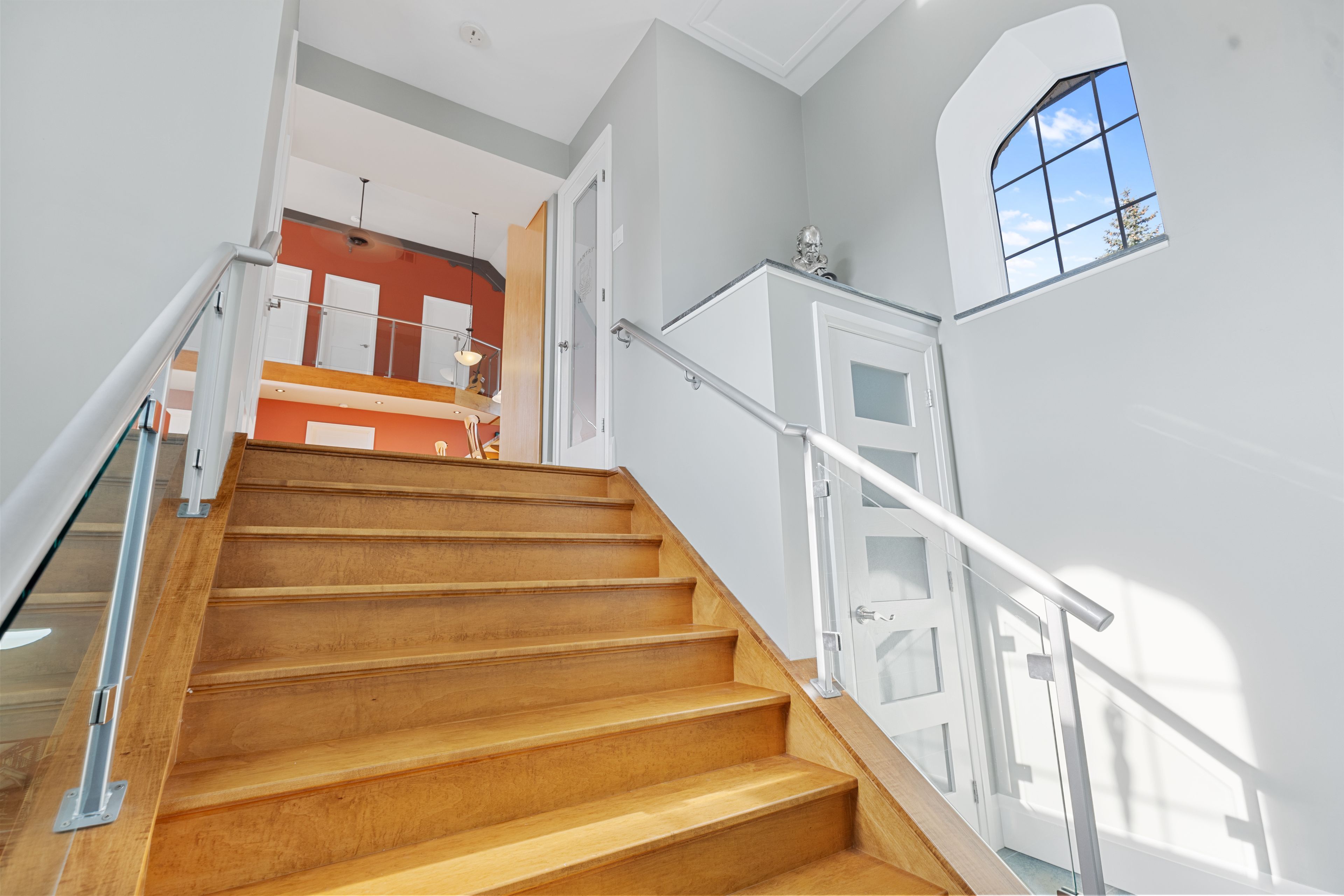 Imagine having the opportunity to immerse yourself in the rich history of an impeccably maintained and restored 1889 limestone schoolhouse in a quaint town outside of st. Marys. Surrounded by mature trees and hardly visible from the road is the former rannoch schoolhouse that helped educate hundreds of local children within its walls from 1889-1967. As you make your way inside you will be greeted with a large foyer with a wide staircase carrying you to the open concept main floor with bamboo flooring and soaring 20ft ceilings that have maintained the original rafter accents. The renovated kitchen offers granite countertops, tiled backsplash, and a pantry just outside of the kitchen. The kitchen overlooks the dining and living space and is perfect for entertaining and enjoying home cooked meals with family and friends. The main floor also features the primary bedroom with a walk in closet and luxurious primary ensuite bathroom and a separate powder room off the main living space. The beautiful maple hardwood staircase with glass railings brings you to two more spacious bedrooms in the upstairs loft with 10ft high ceilings and a full 3 piece bathroom separating the two bedrooms. The gorgeous 8ft tempered glass windows have deep marble window sills and offer an abundance of natural light through all directions, you can even watch the sun rise and set all from inside your home. This is not your usual conversion of a heritage rich property, where often they lack sufficient usable space required for the modern day single family dwelling. This home has the character and beautiful architecture of a 1889 schoolhouse with tasteful modern day finishes that exemplify its beauty. There is also a large full basement with plenty of natural light pouring through the large above grade windows, a fourth bedroom, living space and laundry room. Outside there is an oversized 2 car garage (24ft x 26. 5ft) built in 2008 with an upstairs loft for the perfect man cave, and 100amp service