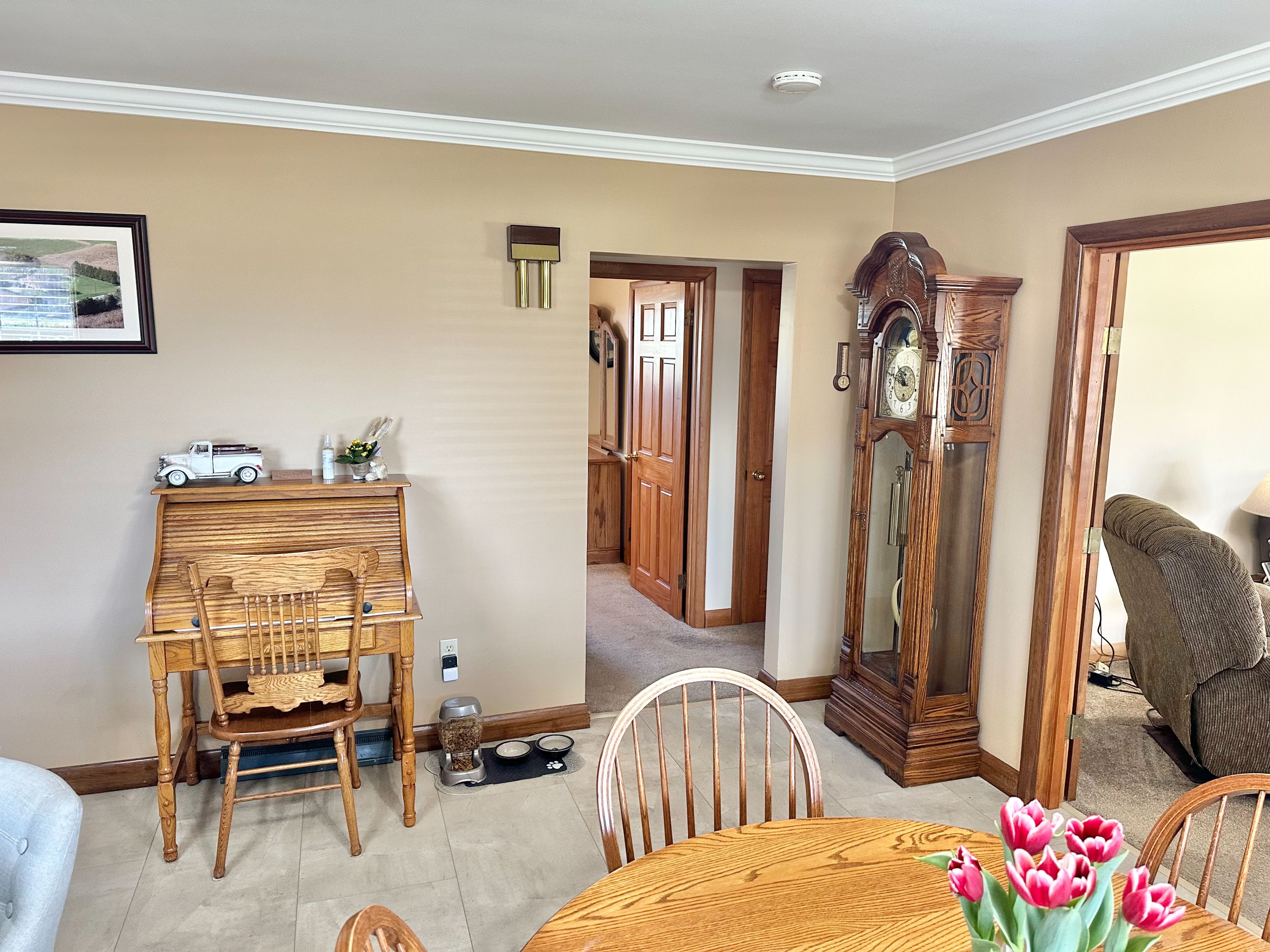 • Sprawling brick ranch surrounded by peaceful farmland for country living.