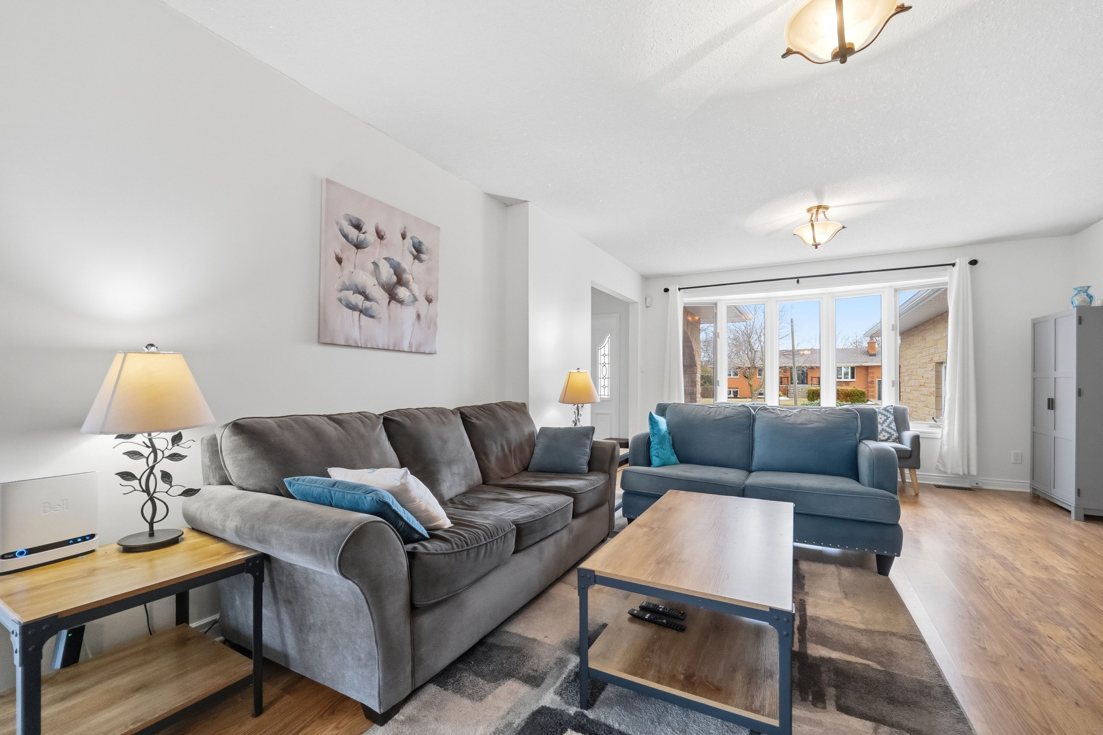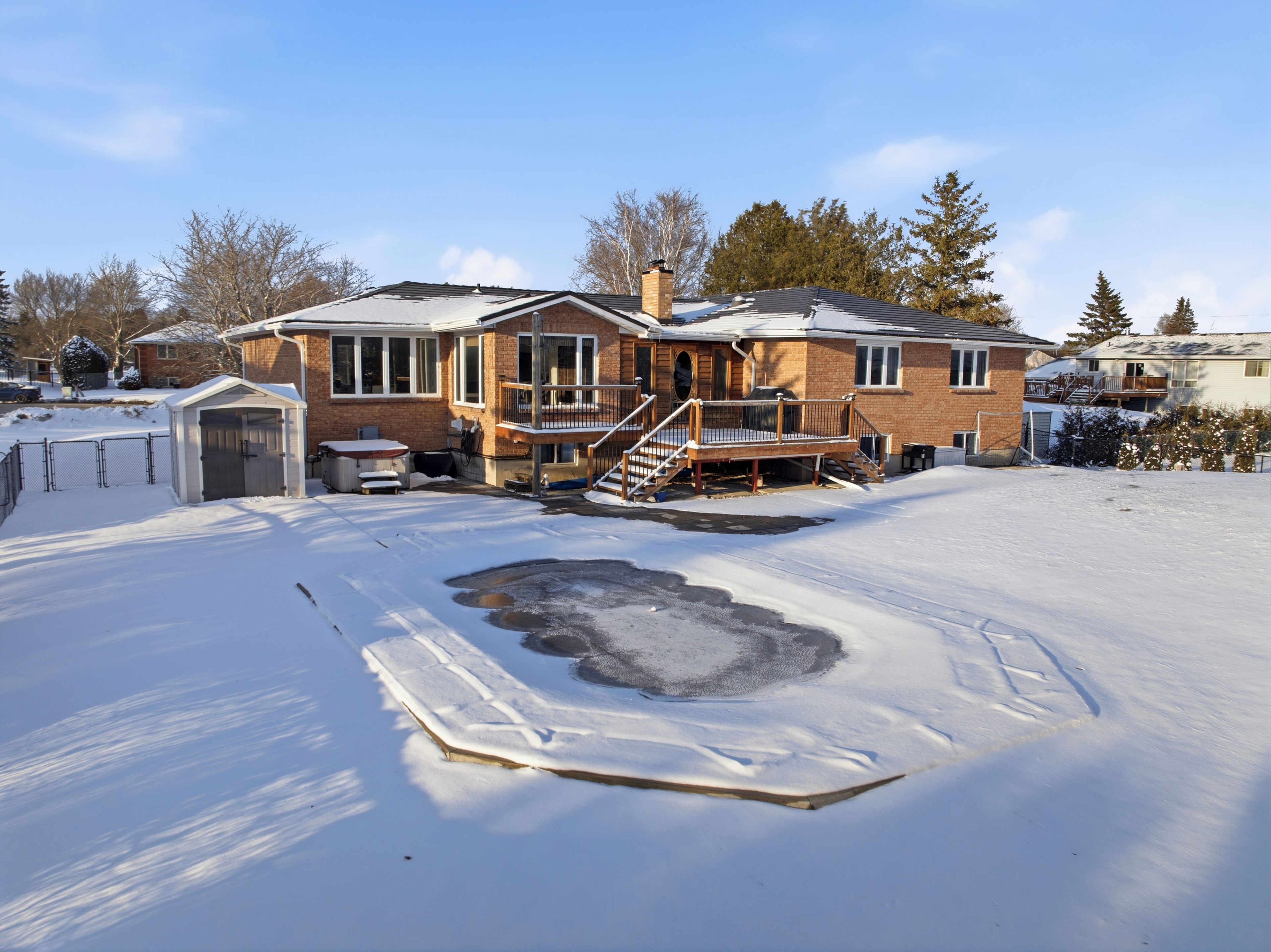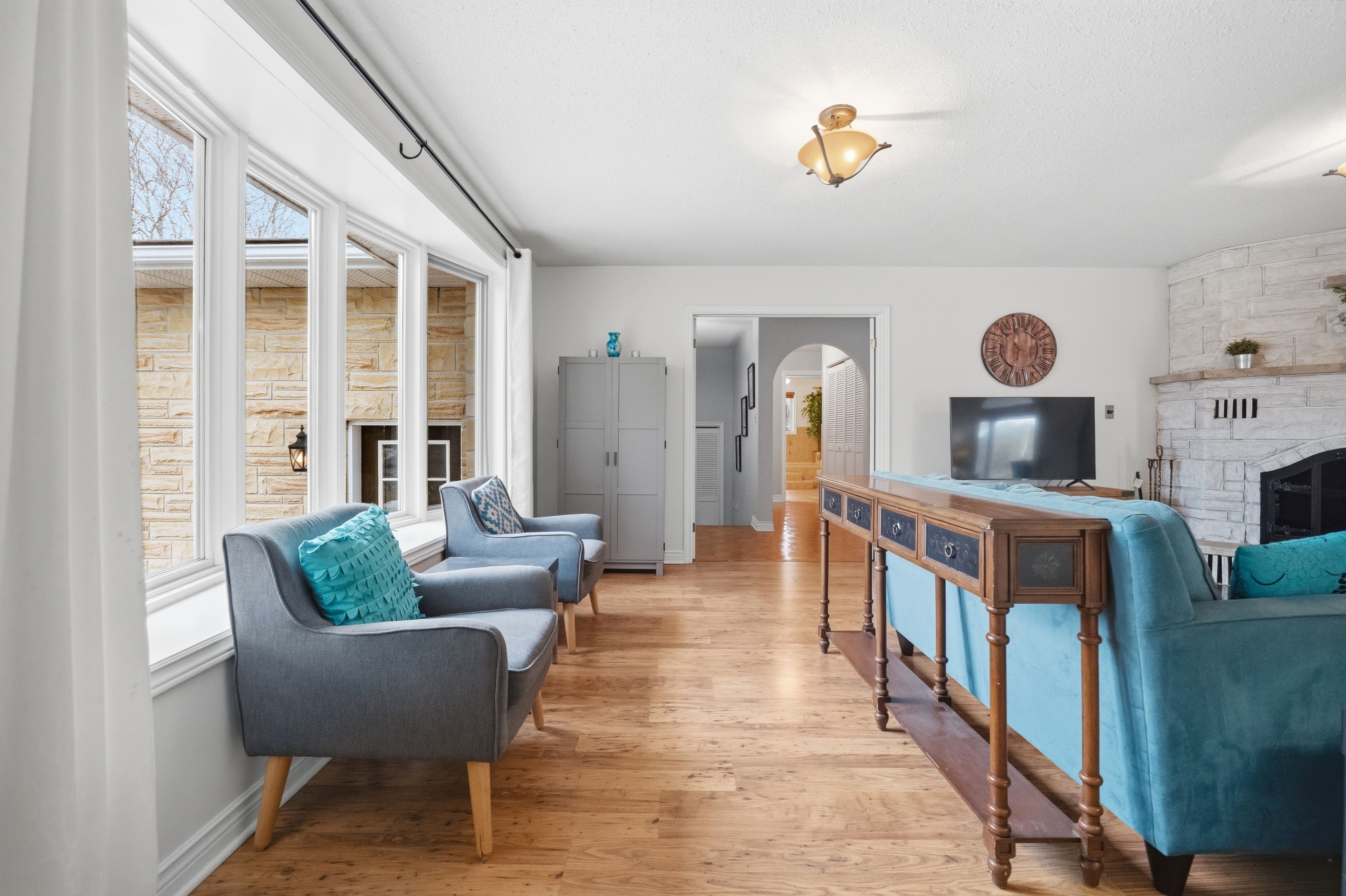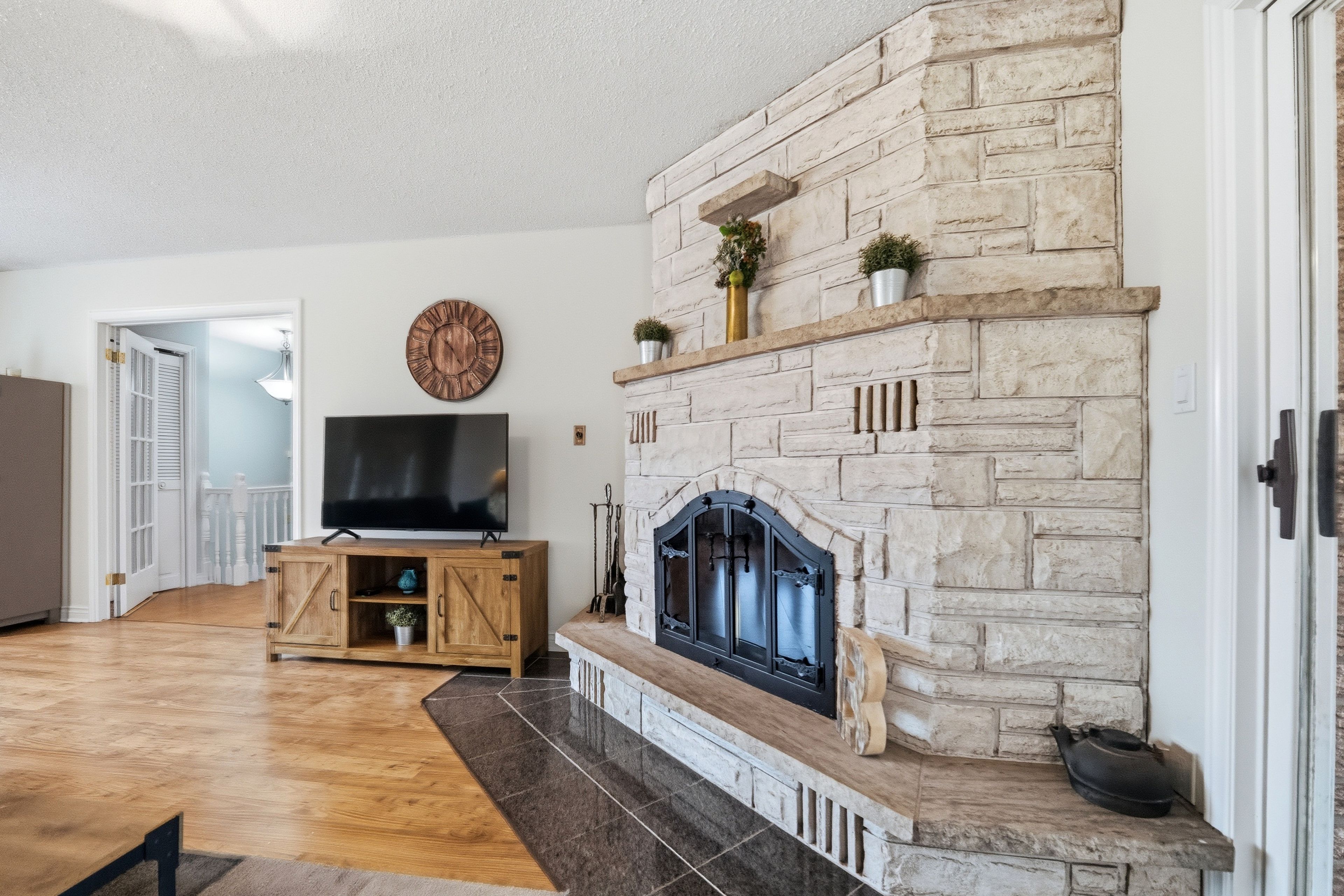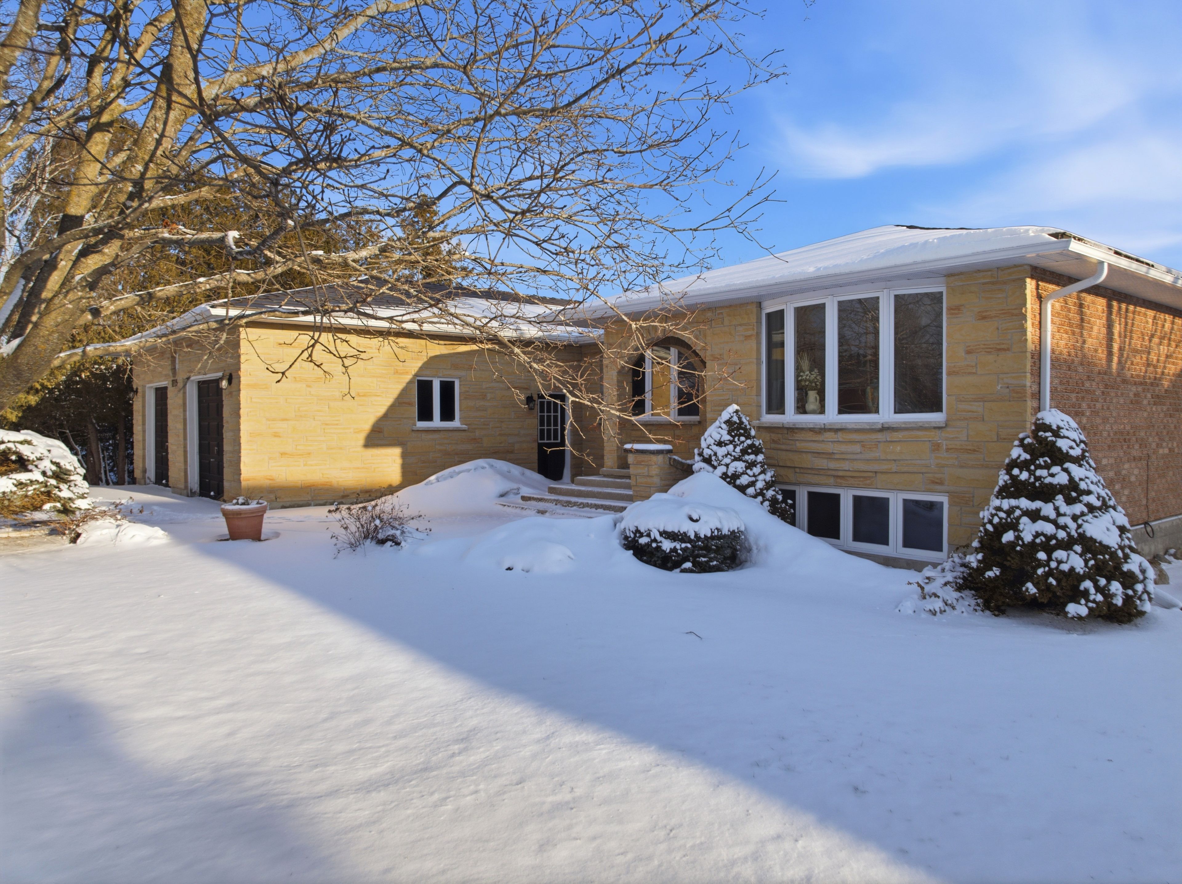 An exceptional opportunity to own this stunning all-stone executive bungalow, perfectly positioned on a quiet cul-de-sac in one of the area's most sought-after neighbourhoods. Homes like this are rarely offered, and once you experience it in person, you'll understand why. This expansive residence welcomes you with a large foyer that opens into a bright and beautifully laid-out main floor. Enjoy a spacious eat-in kitchen, a warm and inviting family room with a wood-burning fireplace, a formal dining room, dedicated office, sunroom, and three generously sized bedrooms. The impressive primary suite features a large ensuite, while the main level also offers a full 6-piece bathroom, a convenient 2-piece powder room, and main floor laundry with direct access to the oversized double car garage. The lower level adds incredible versatility with a massive family room and rec room, along with a full in-law suite complete with its own kitchen, fourth bedroom, den, and full bathroom-ideal for extended family, multi-generational living, or added income potential. Step outside to your private, fully fenced backyard retreat, featuring an inground pool, spacious deck, and stone patio-perfect for relaxing or entertaining. Significant updates including the septic system, metal roof, furnace, and basement windows offer peace of mind for years to come. Located in a prime neighbourhood close to shopping, schools, parks, and with easy access to the 401, this is a rare offering you won't want to miss.