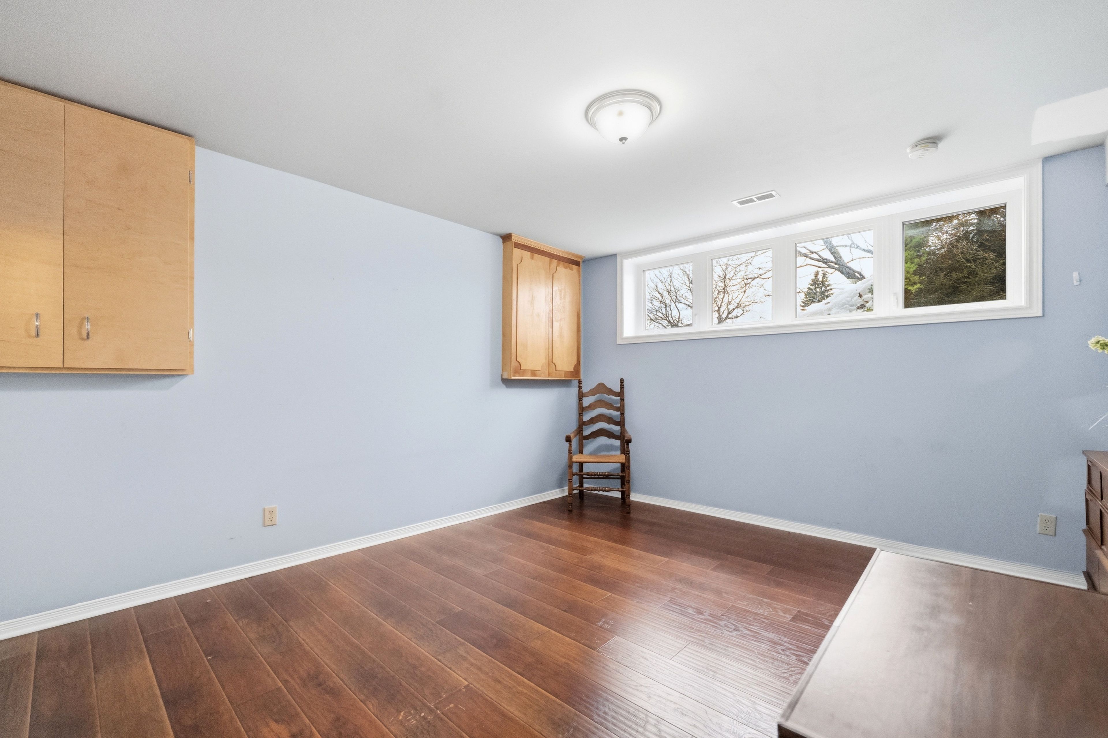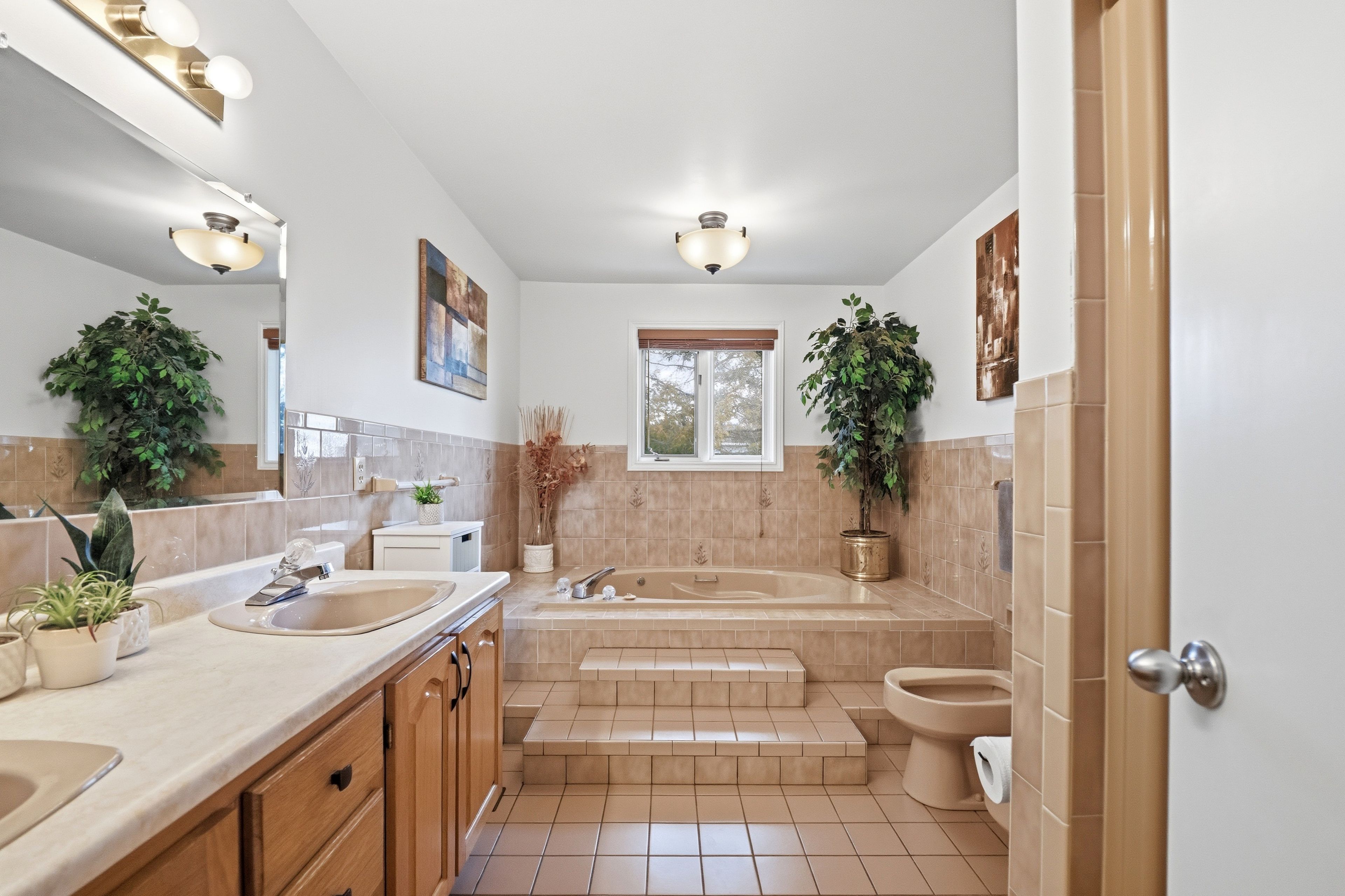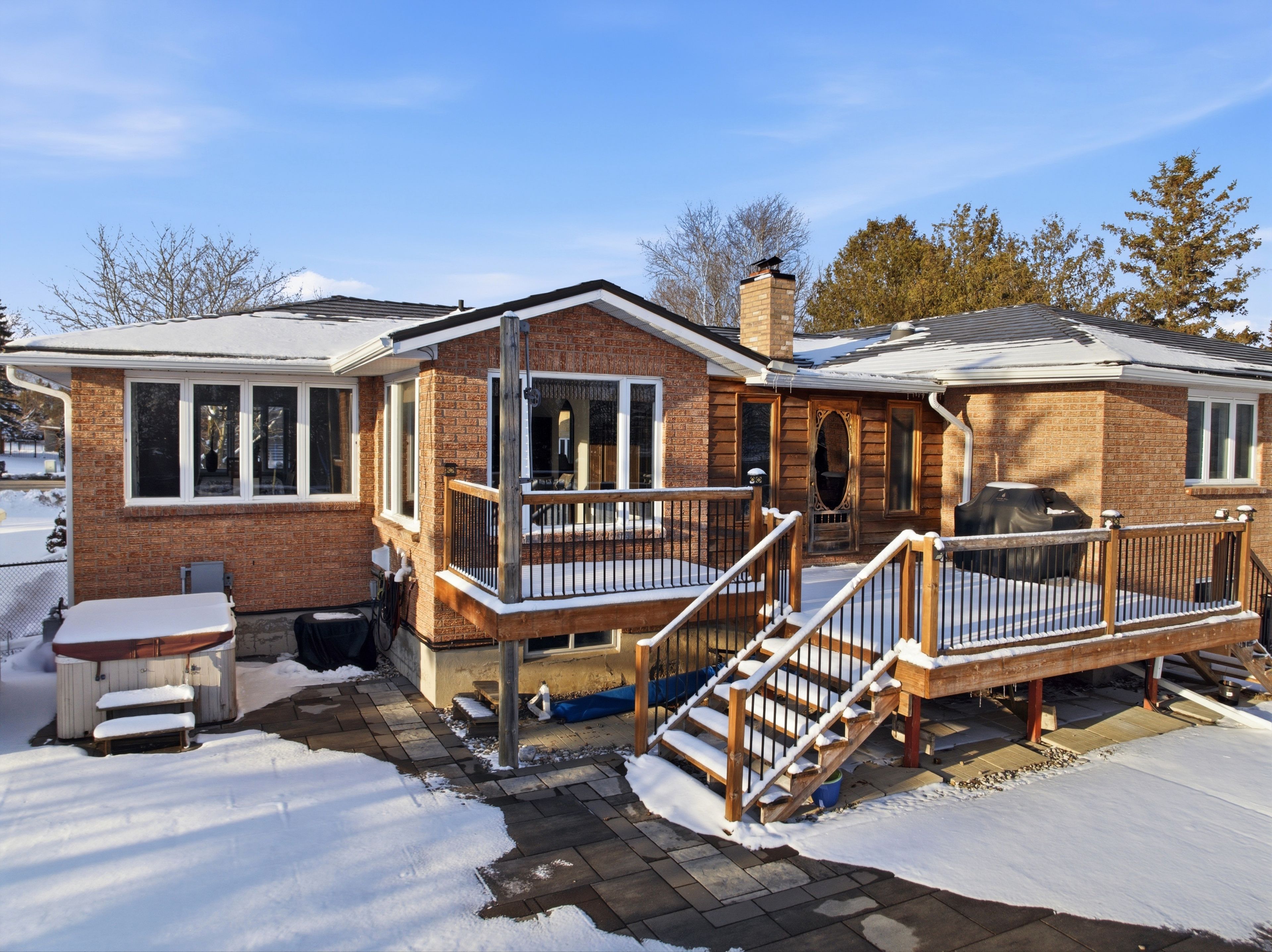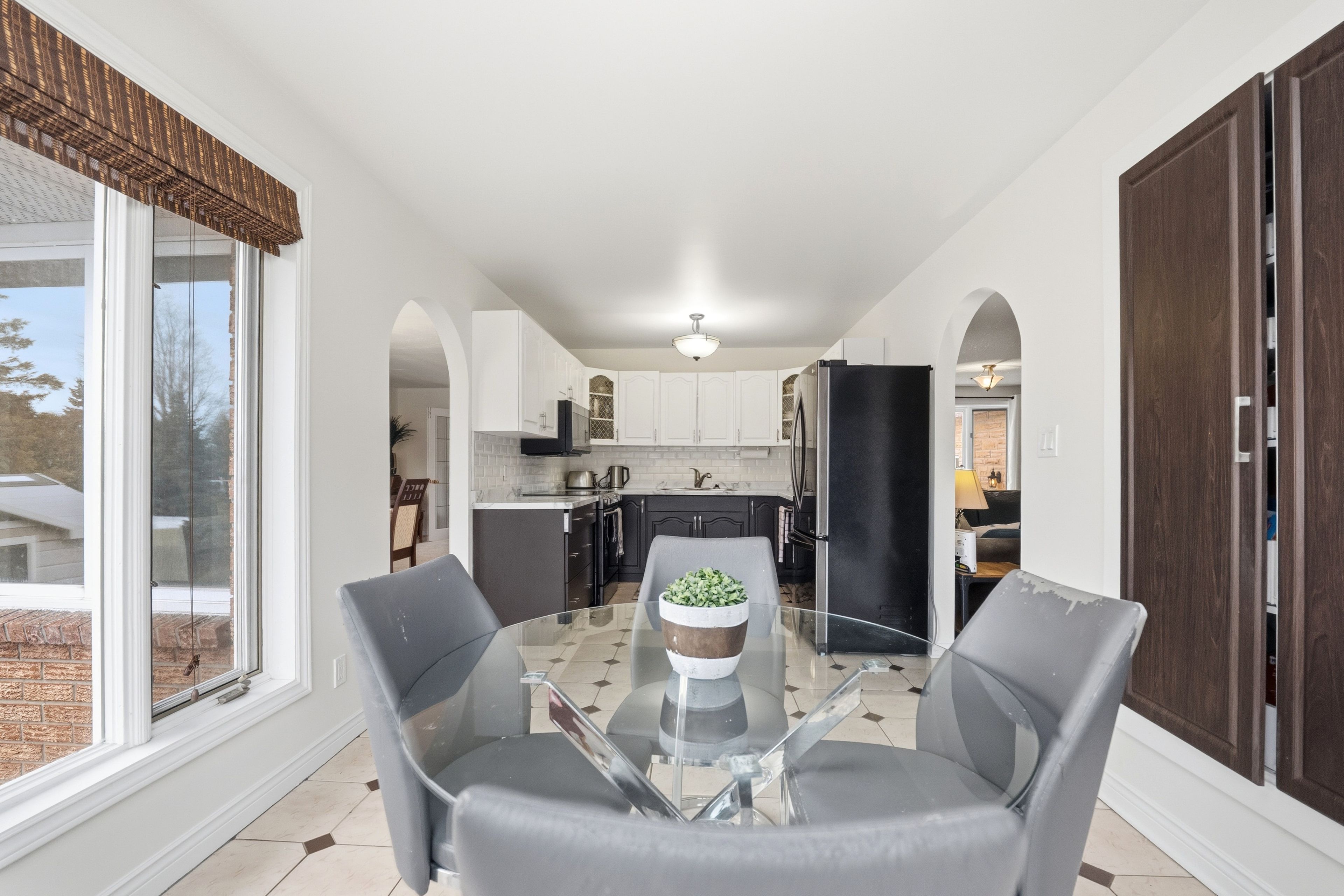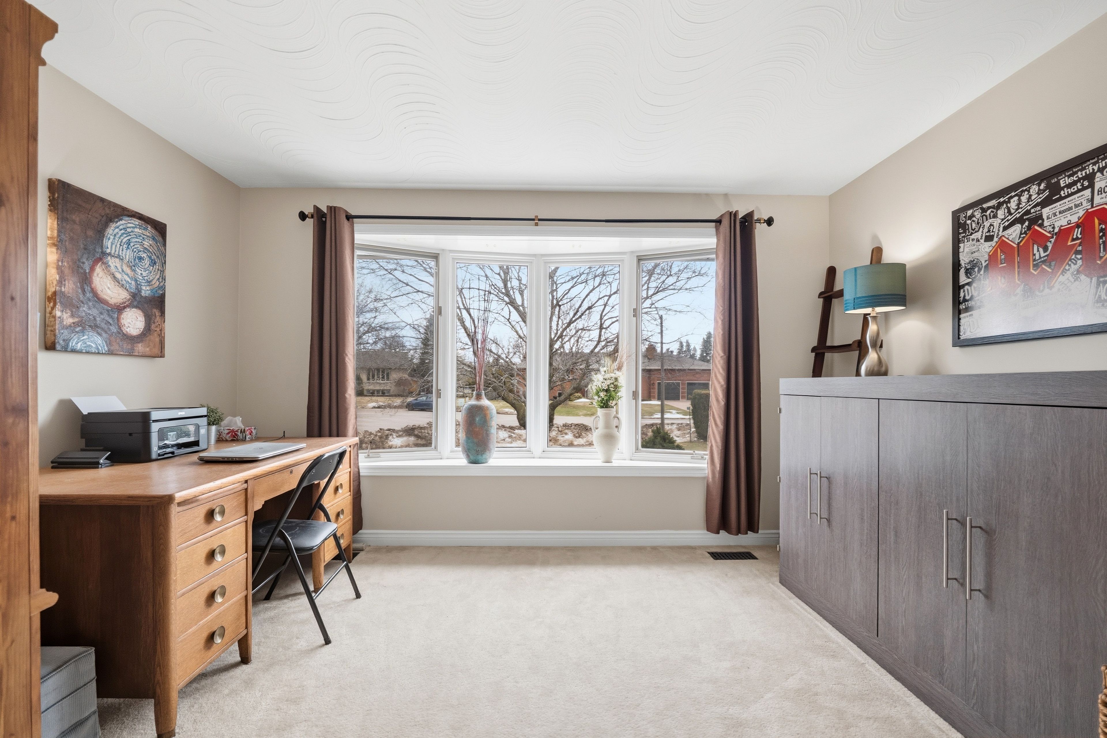 An exceptional opportunity to own this stunning all-stone executive bungalow, perfectly positioned on a quiet cul-de-sac in one of the area's most sought-after neighbourhoods. Homes like this are rarely offered, and once you experience it in person, you'll understand why. This expansive residence welcomes you with a large foyer that opens into a bright and beautifully laid-out main floor. Enjoy a spacious eat-in kitchen, a warm and inviting family room with a wood-burning fireplace, a formal dining room, dedicated office, sunroom, and three generously sized bedrooms. The impressive primary suite features a large ensuite, while the main level also offers a full 6-piece bathroom, a convenient 2-piece powder room, and main floor laundry with direct access to the oversized double car garage. The lower level adds incredible versatility with a massive family room and rec room, along with a full in-law suite complete with its own kitchen, fourth bedroom, den, and full bathroom-ideal for extended family, multi-generational living, or added income potential. Step outside to your private, fully fenced backyard retreat, featuring an inground pool, spacious deck, and stone patio-perfect for relaxing or entertaining. Significant updates including the septic system, metal roof, furnace, and basement windows offer peace of mind for years to come. Located in a prime neighbourhood close to shopping, schools, parks, and with easy access to the 401, this is a rare offering you won't want to miss.