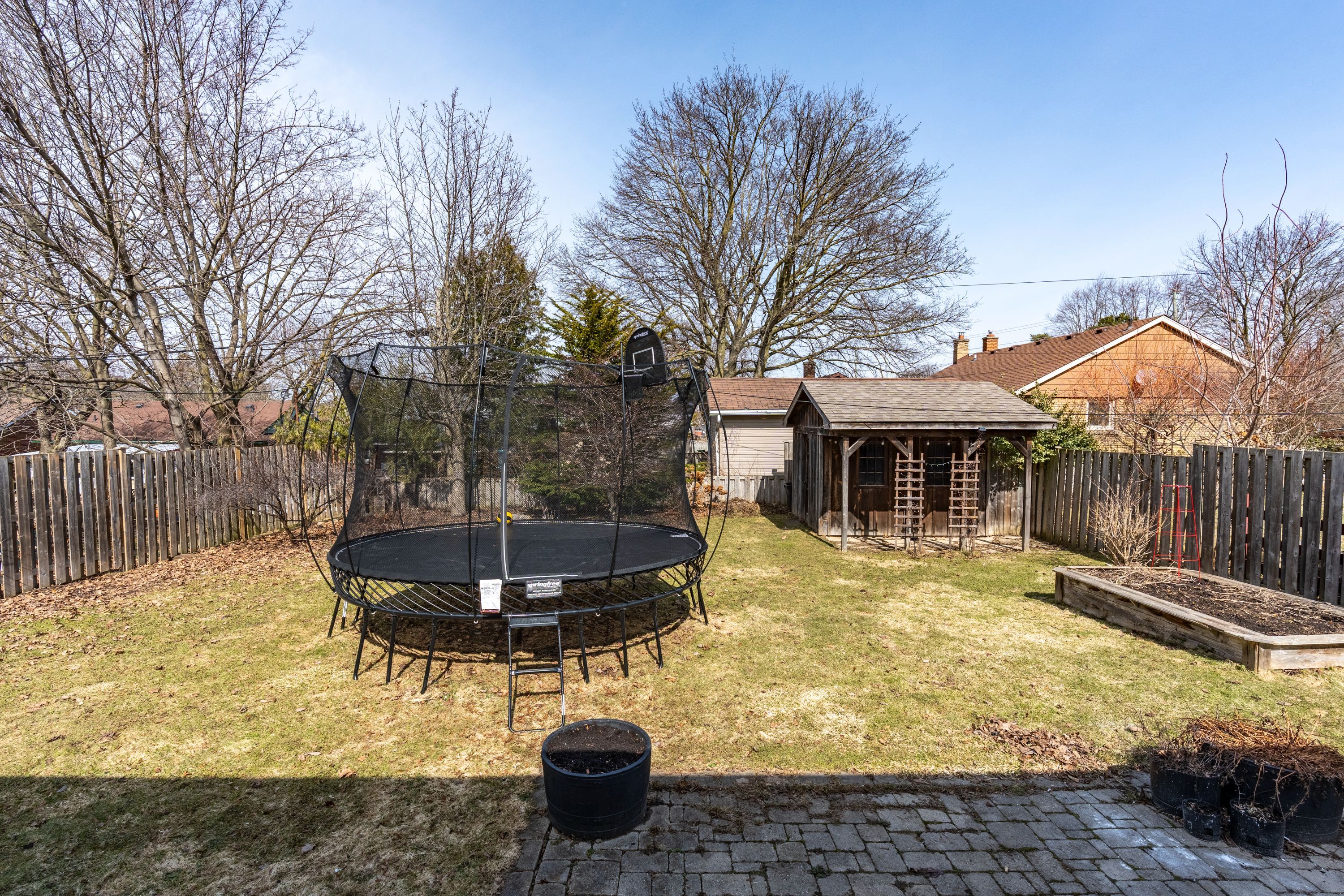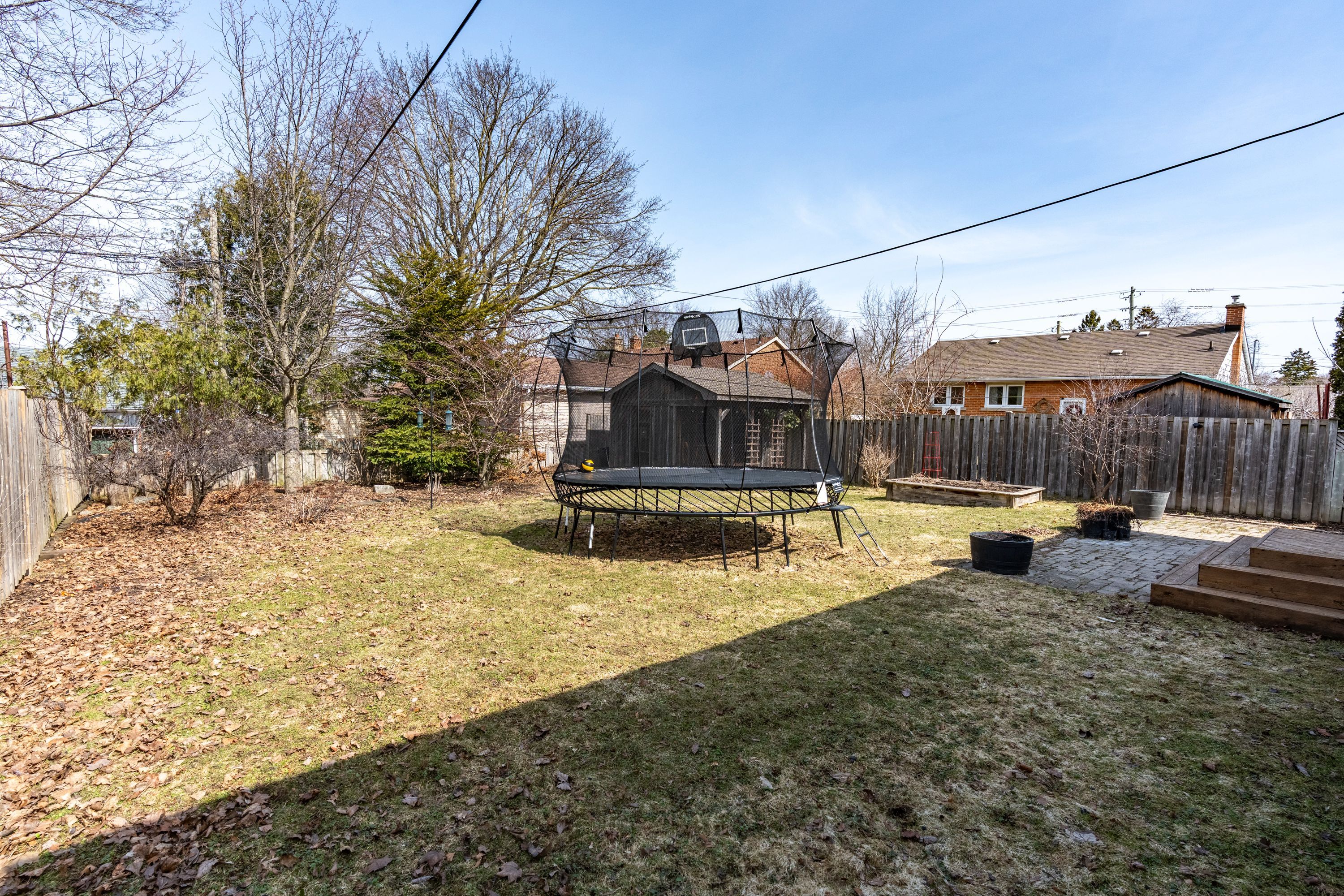 • Fully fenced backyard perfect for kids and pets to play.