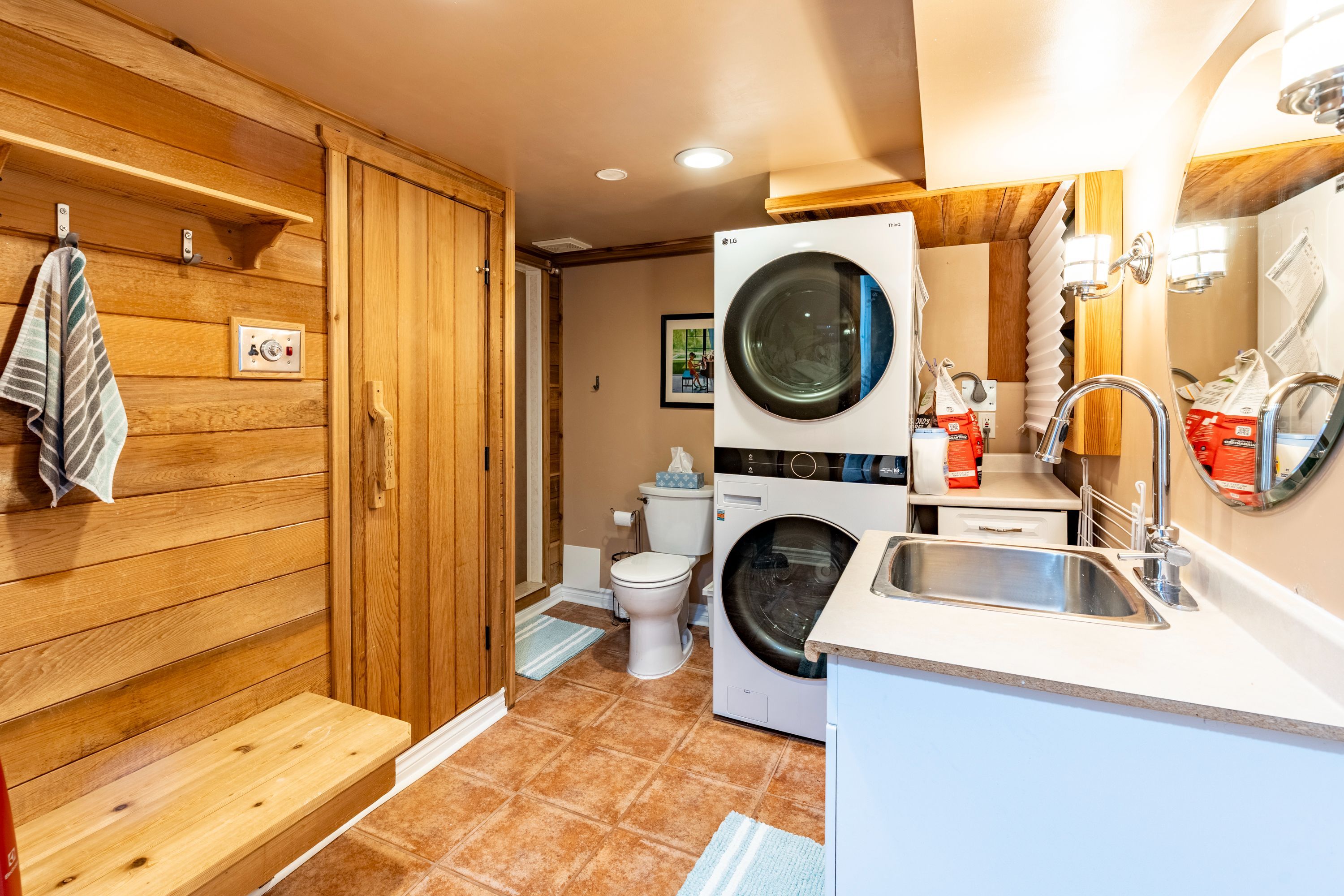 • Flexible finished basement space with a built-in sauna for relaxation.