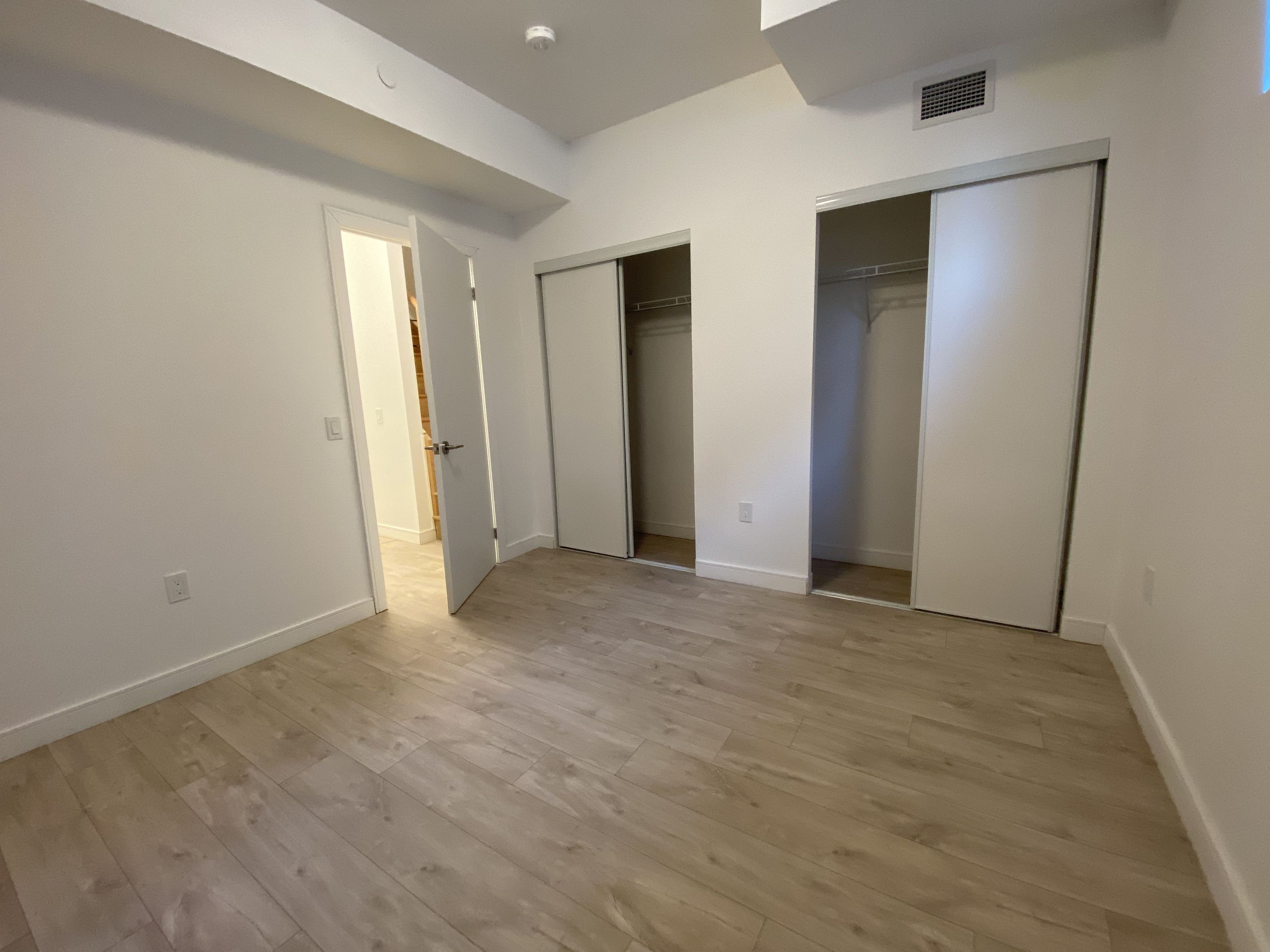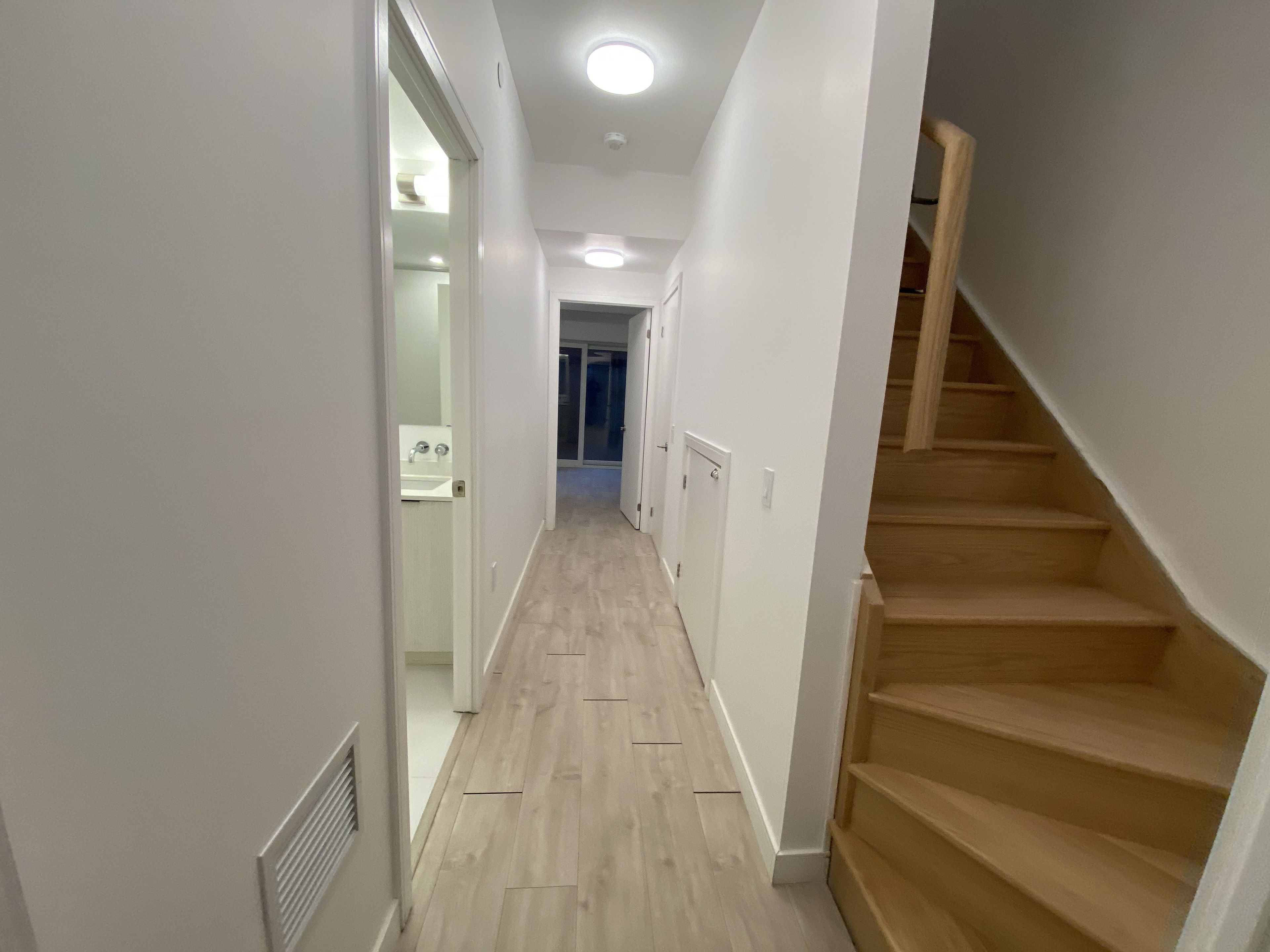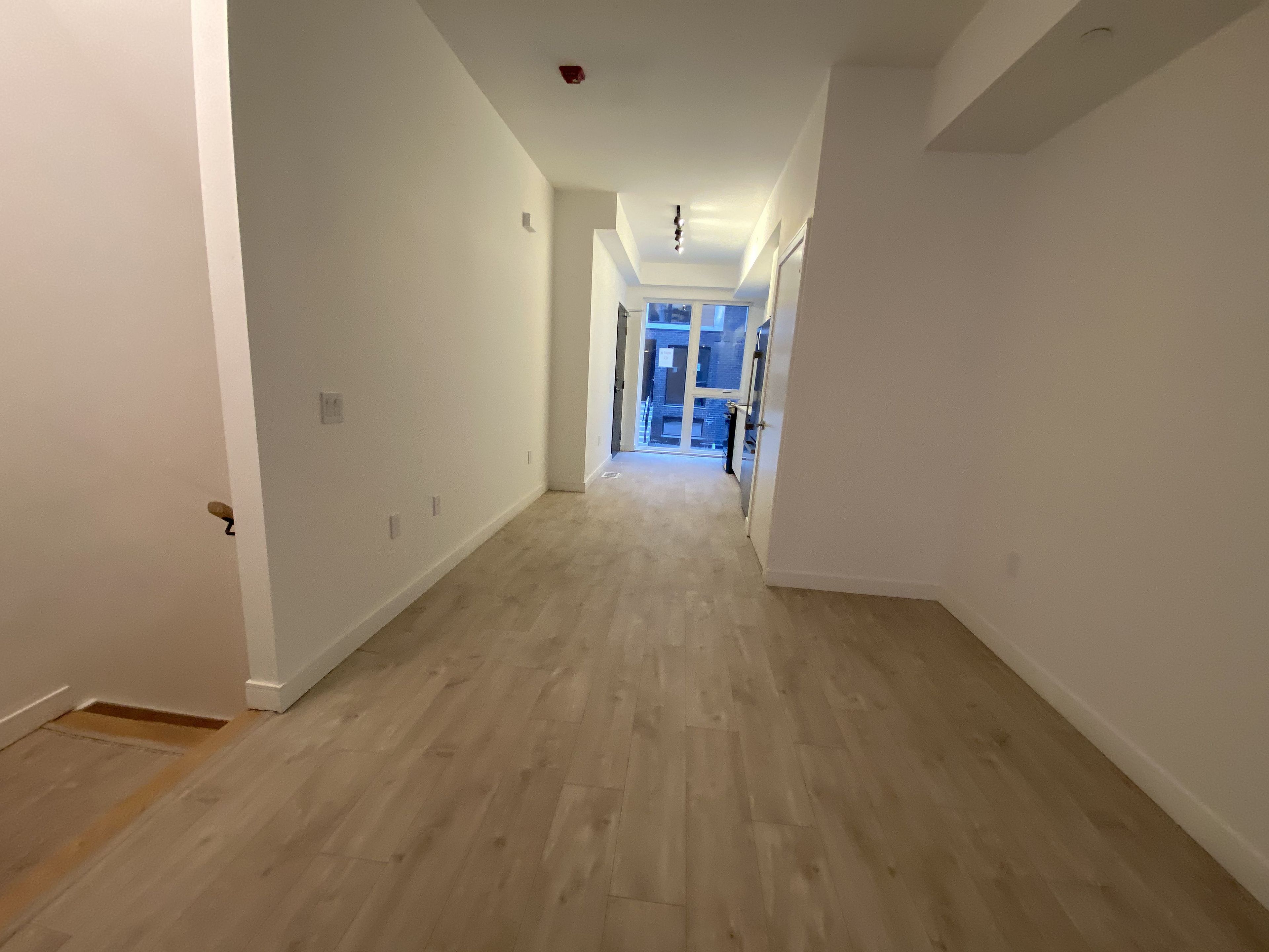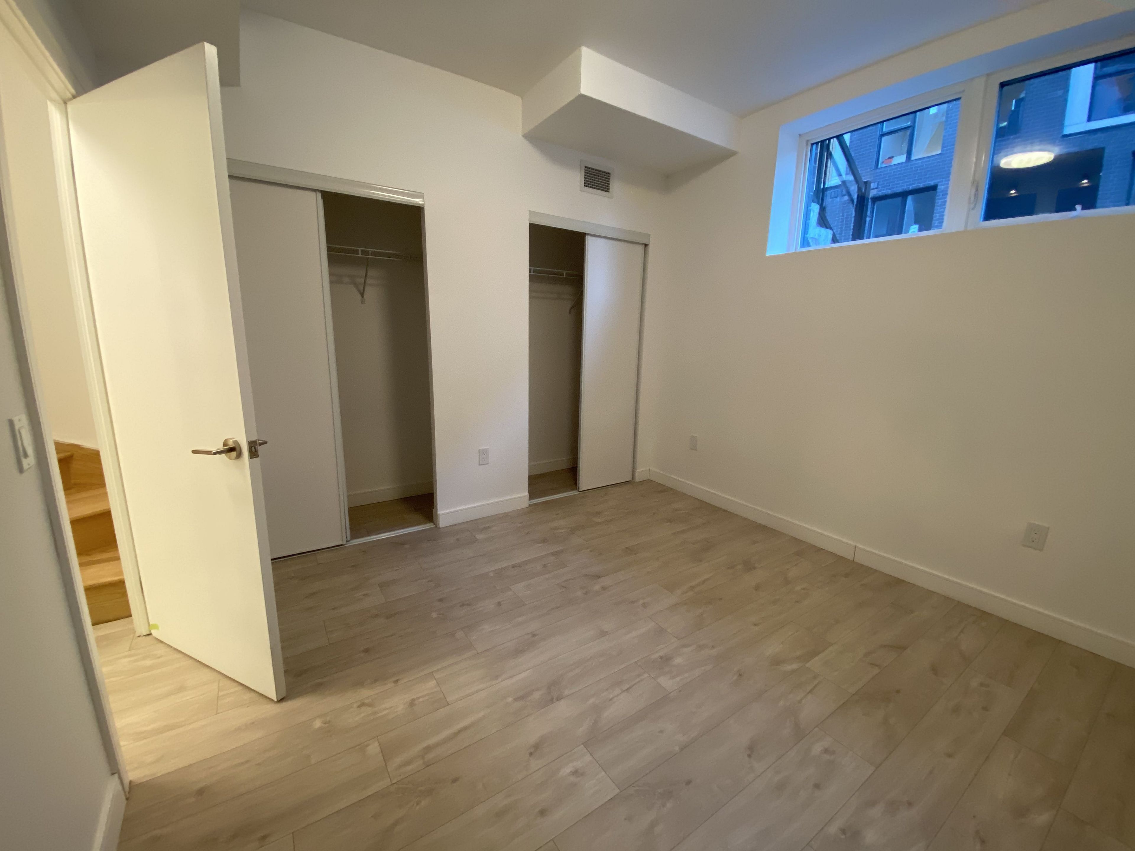 Discover the perfect blend of style and functionality in this stacked townhouse 3 bedrooms, 2 baths, spanning the ground and lower levels. Designed to impress, this home features 9 ft ceilings and elegant hardwood flooring throughout. Natural light floods the space through floor-to-ceiling windows in both the front of the house and the ground-level bedroom, creating a bright and welcoming atmosphere. The contemporary kitchen boasts quartz countertops, stainless steel appliances, and a high-gloss beveled tile backsplash, combining beauty with practicality. The primary bedroom featuring large windows, wall-to-wall double door closets, and a 4-piece ensuite bathroom. The third bedroom offers versatility, complete with his & her closet. Ensuite laundry enhances the comfort and convenience. Situated near public transit, shopping, lake ontario, beaches, schools, a community center, and a variety of eateries, this townhouse provides the perfect balance of urban convenience and serene living. One parking & storage locker.