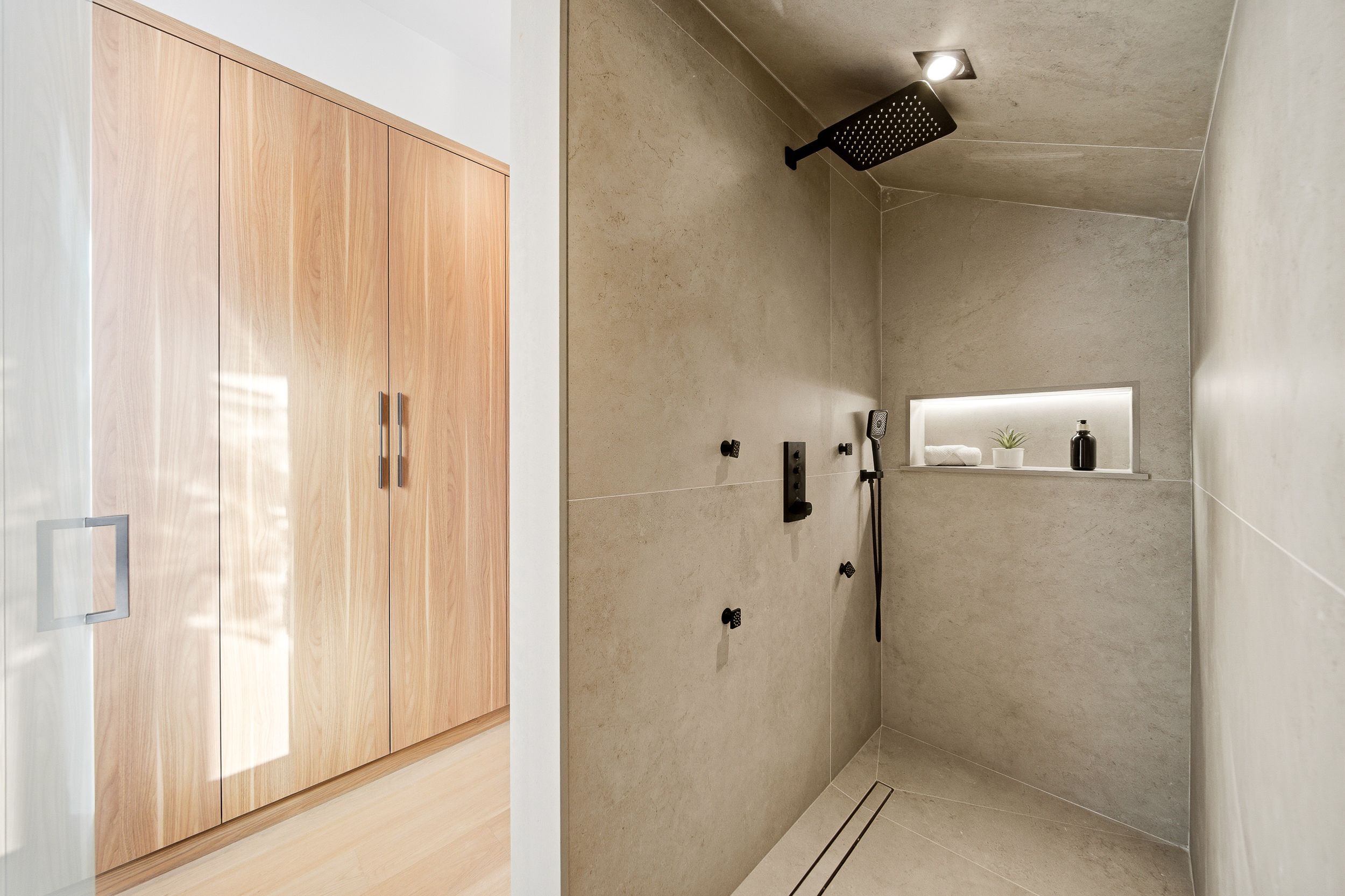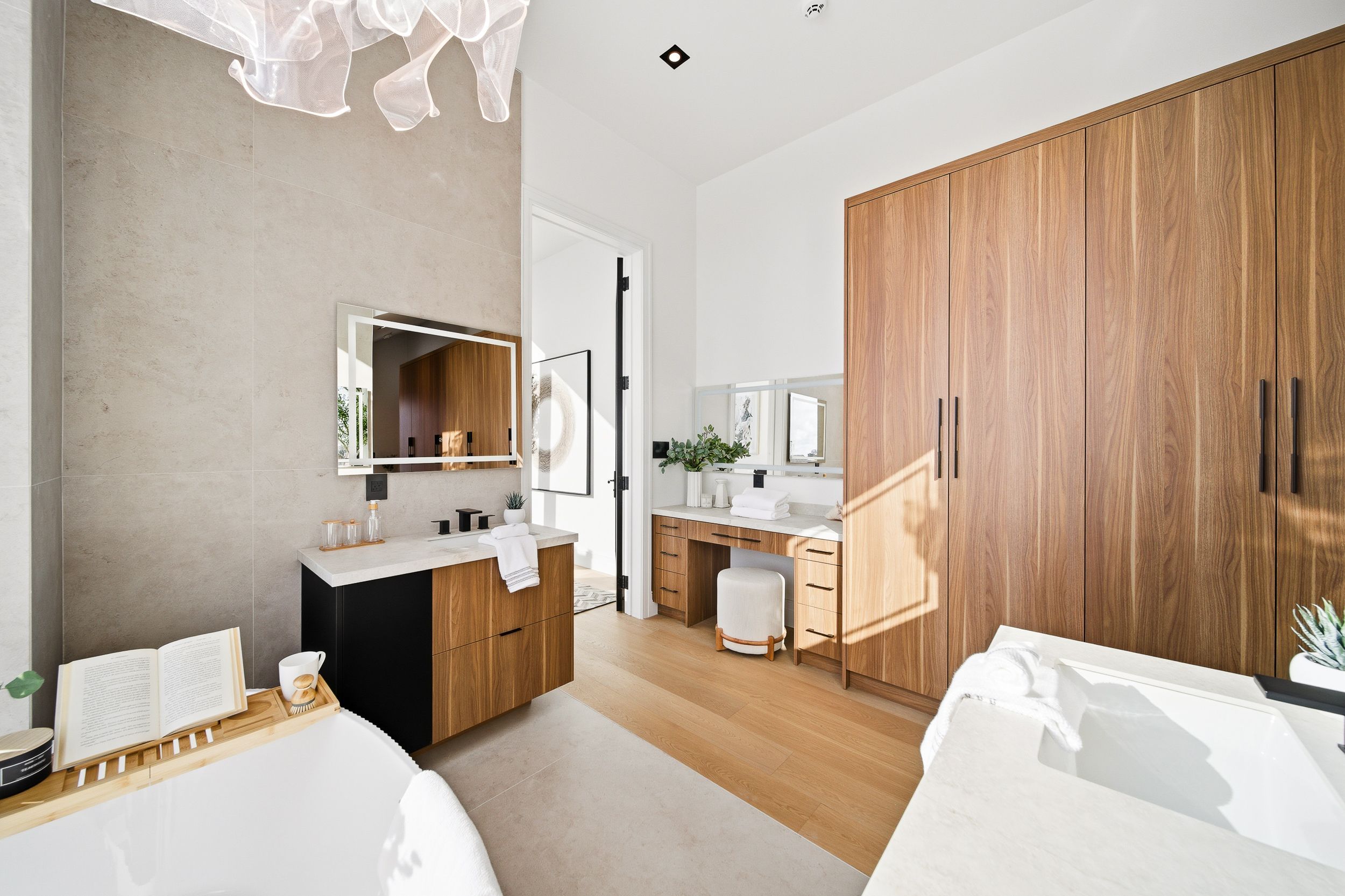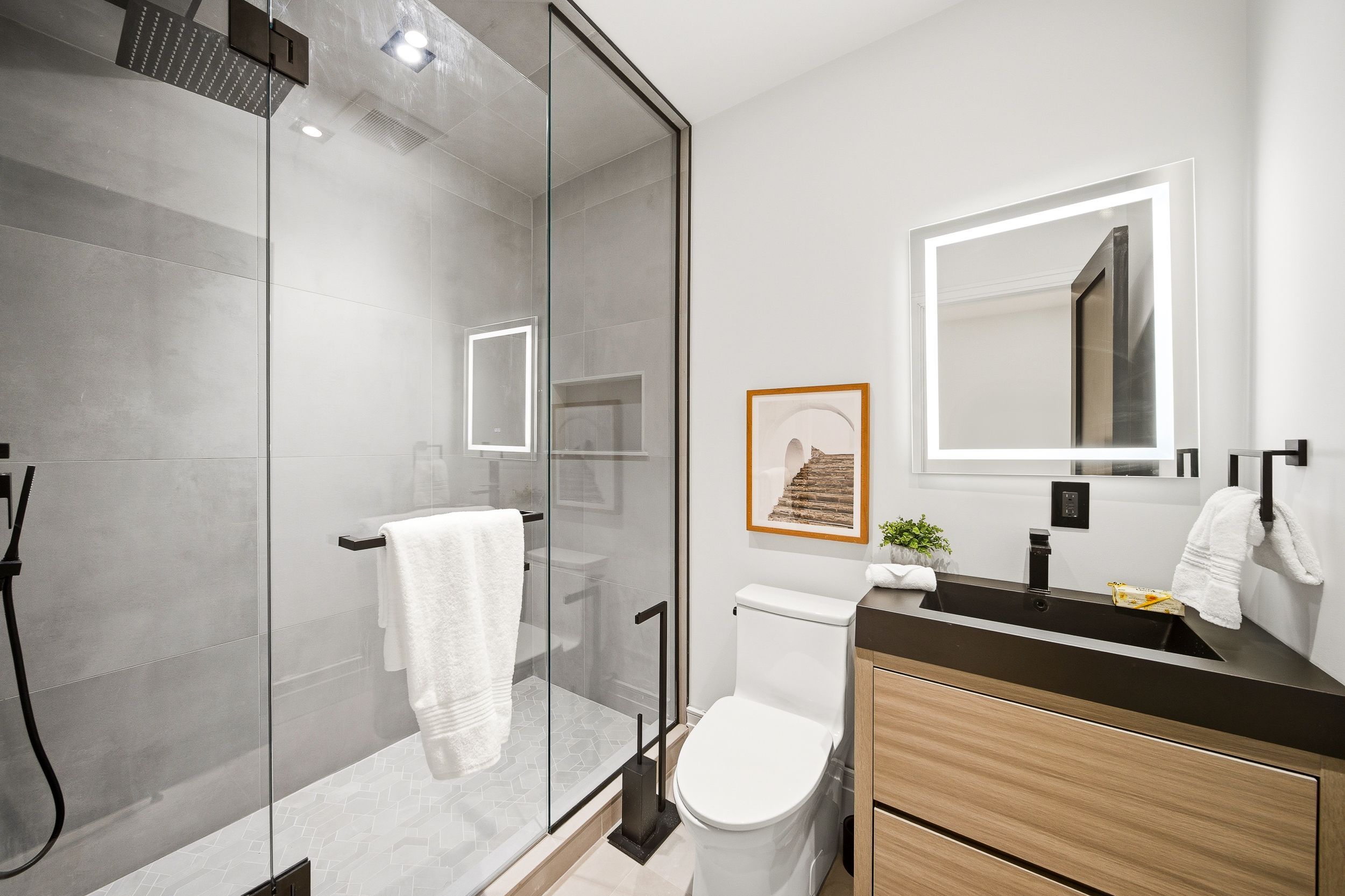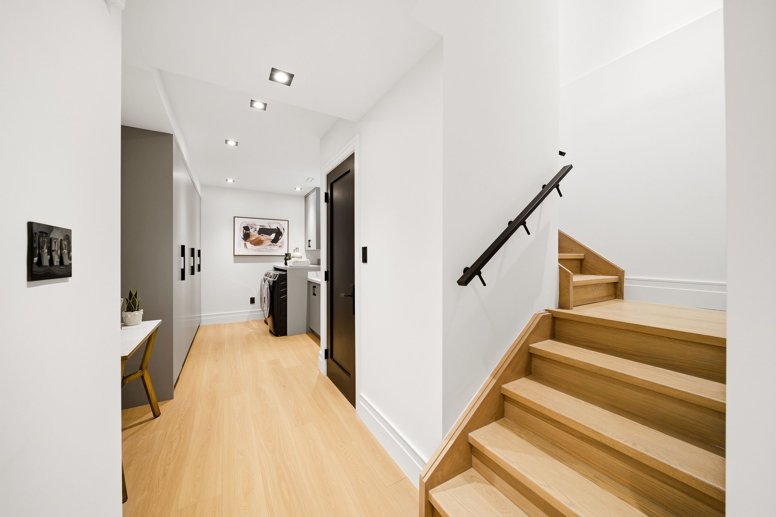 Discover this brand new, custom-built modern home with striking architectural presence, showcasing soaring ceiling heights, walls of glass, and refined detailing throughout. The main level is anchored by an impressive double-height dining area defined by 19-foot ceilings and floor-to-ceiling window walls on two sides. With east and west exposures, natural light pours through the interior from morning to evening. The kitchen features extensive custom cabinetry, taj mahal-inspired porcelain stone surfaces, and a premium integrated appliance package. The adjacent living area features a striking three-sided glass fireplace. A convenient side entrance provides direct access to the kitchen and front closet, offering functional everyday entry into the home. The upper levels continue the home's emphasis on thoughtful design, offering well-proportioned bedroom spaces, custom closets, and beautifully finished bathrooms. The full-floor primary retreat occupies its own level, featuring 11. 6-foot ceilings, and a spa-inspired ensuite with a freestanding tub, double vanity, and walk-in shower, along with extensive custom built-in storage and a built-in coffee bar with integrated beverage fridge, extending directly to a rooftop terrace with cn tower views. The lower level offers impressive ceiling height and a highly functional layout, featuring vinyl flooring throughout, a laundry area with built-in cabinetry, an additional bedroom idea for guests, a home office, or extended living space, and a three-piece bathroom. Additional features include white oak engineered flooring throughout the main and upper levels, reynaers architectural aluminum windows and doors, automated window coverings, and curated designer lighting. Fully landscaped front and rear yards complete the property, featuring turf, steel planters for a polished, low-maintenance outdoor experience. Ideally located in toronto's west end, close to neighbourhood cafes, shops, transit, and everyday conveniences.