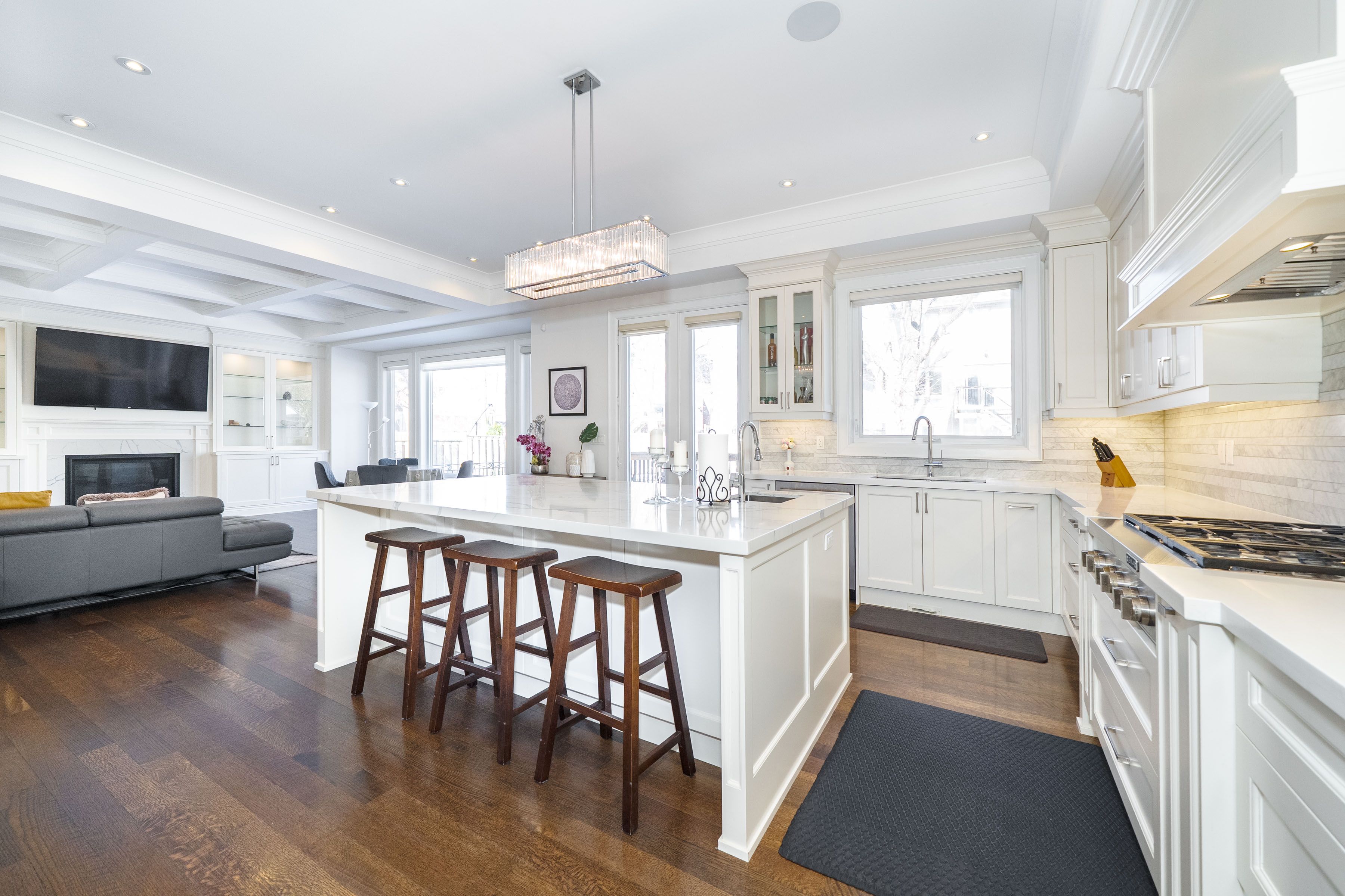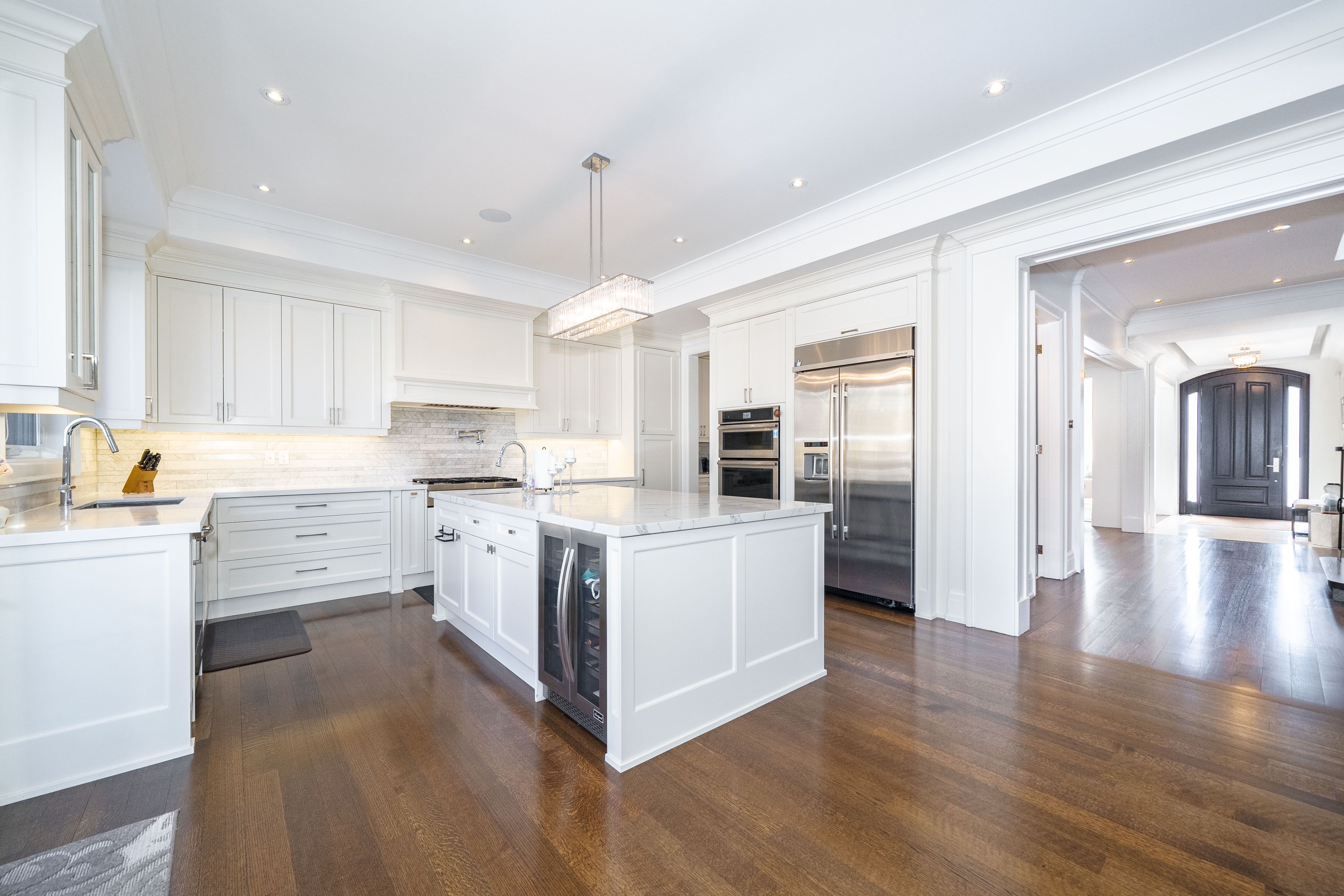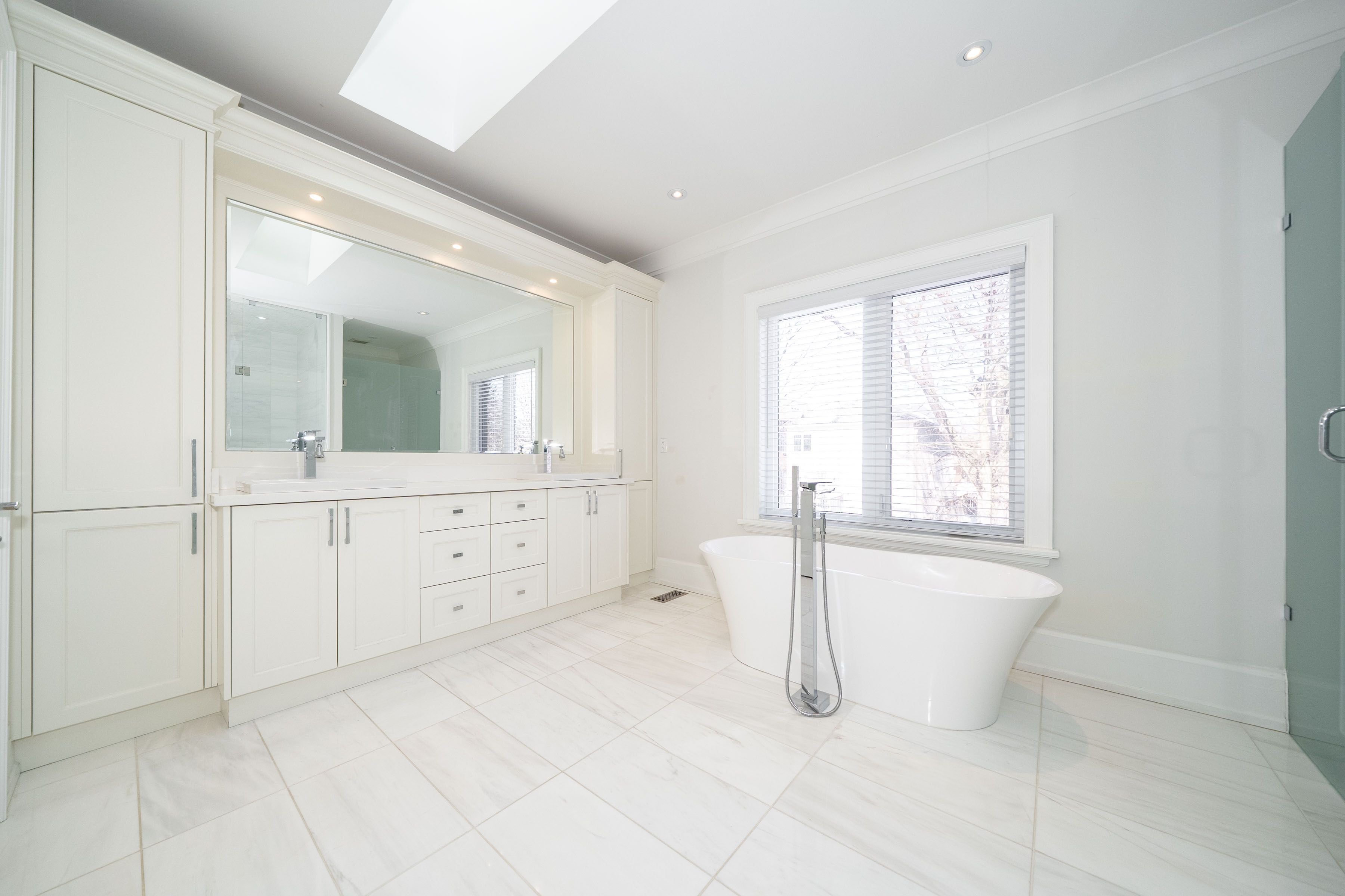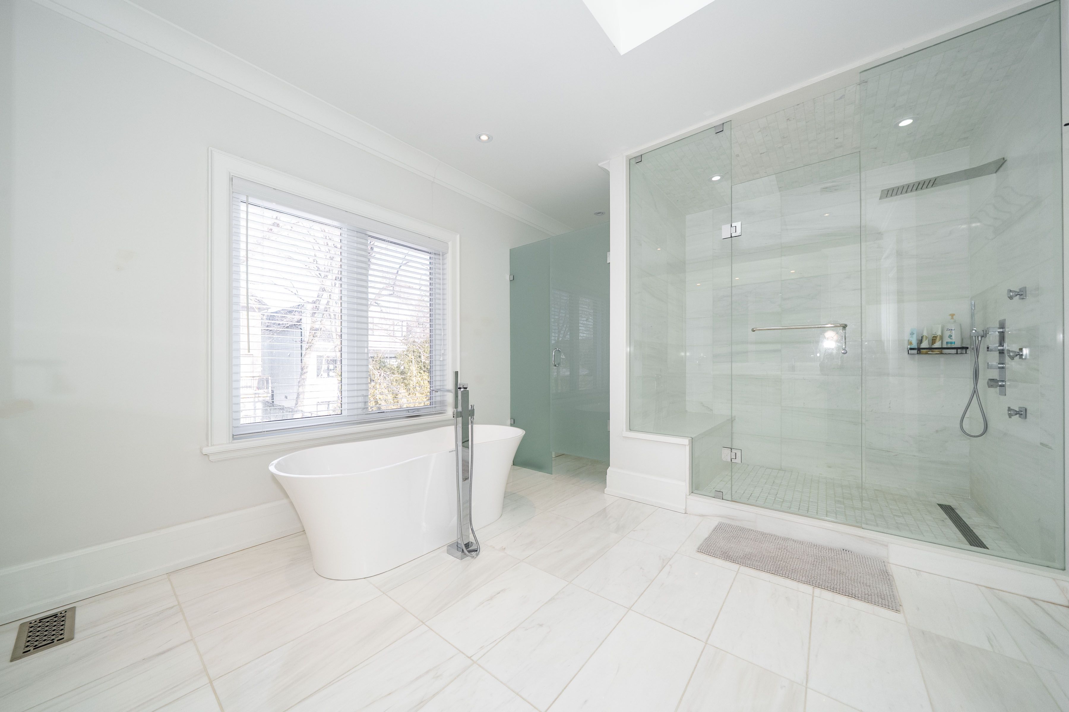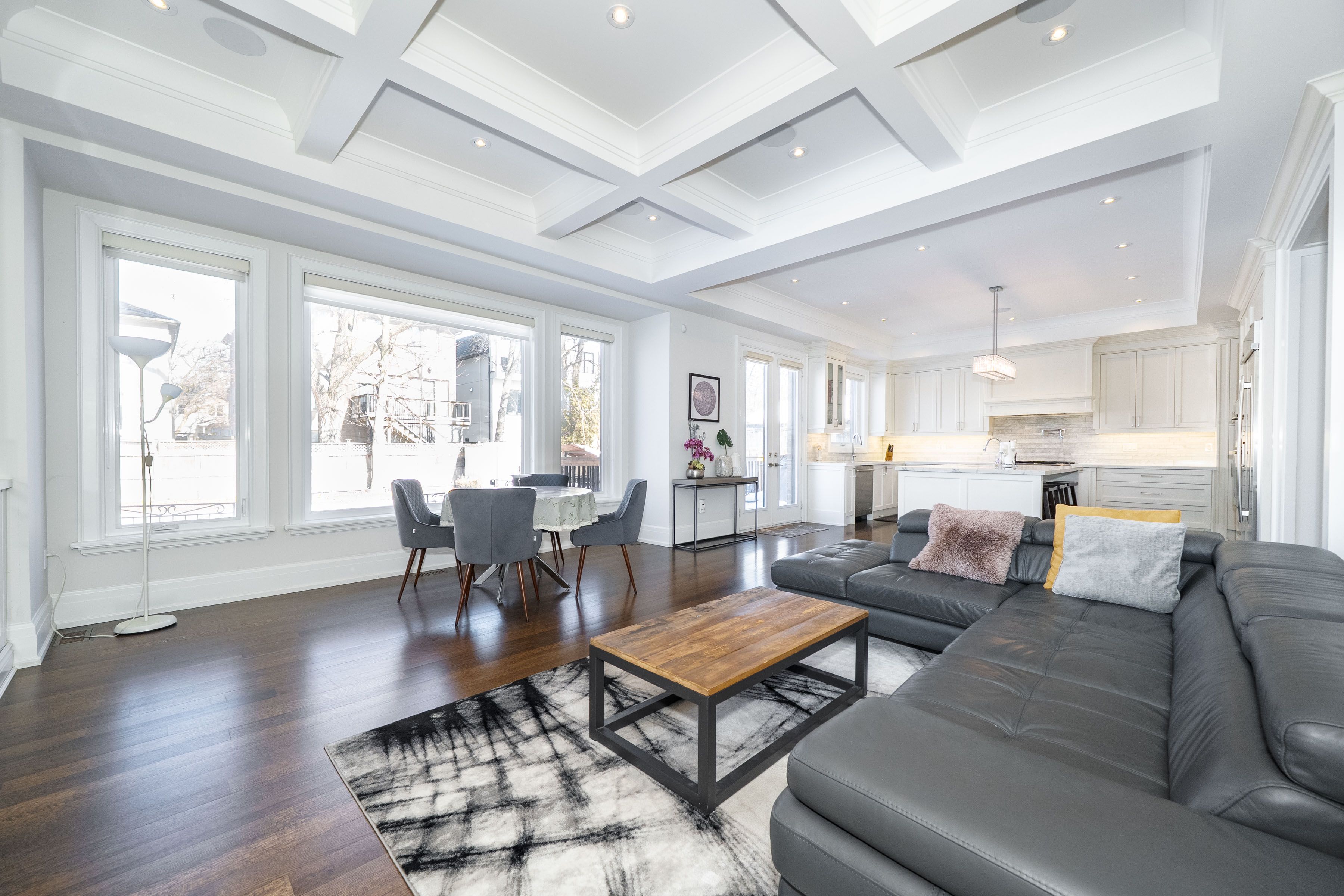 Luxurious interior design, appx. 5000 sqft living space including bsmt, 10' ceiling at main, expensive white oak hardwood floor in first/2nd floor crown moulding & sky light, prime bedroom w/coffered ceilings, heated master bathroom, gourmet kitchen with natural stone counter top & large centre island, heated floor in the basement with large rec rm w/bar, walk up to backyard. Min to yonge subway and shopping centre.