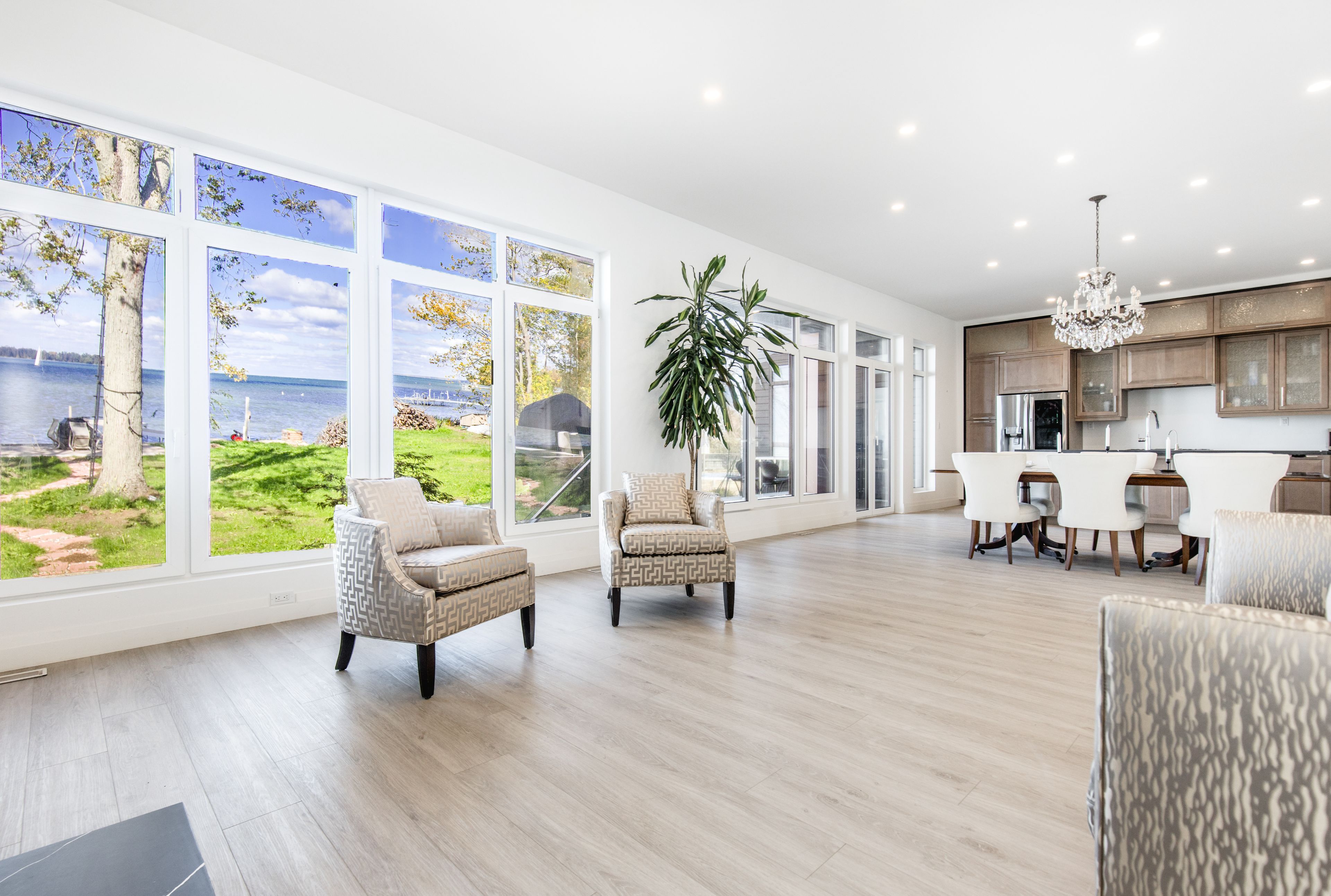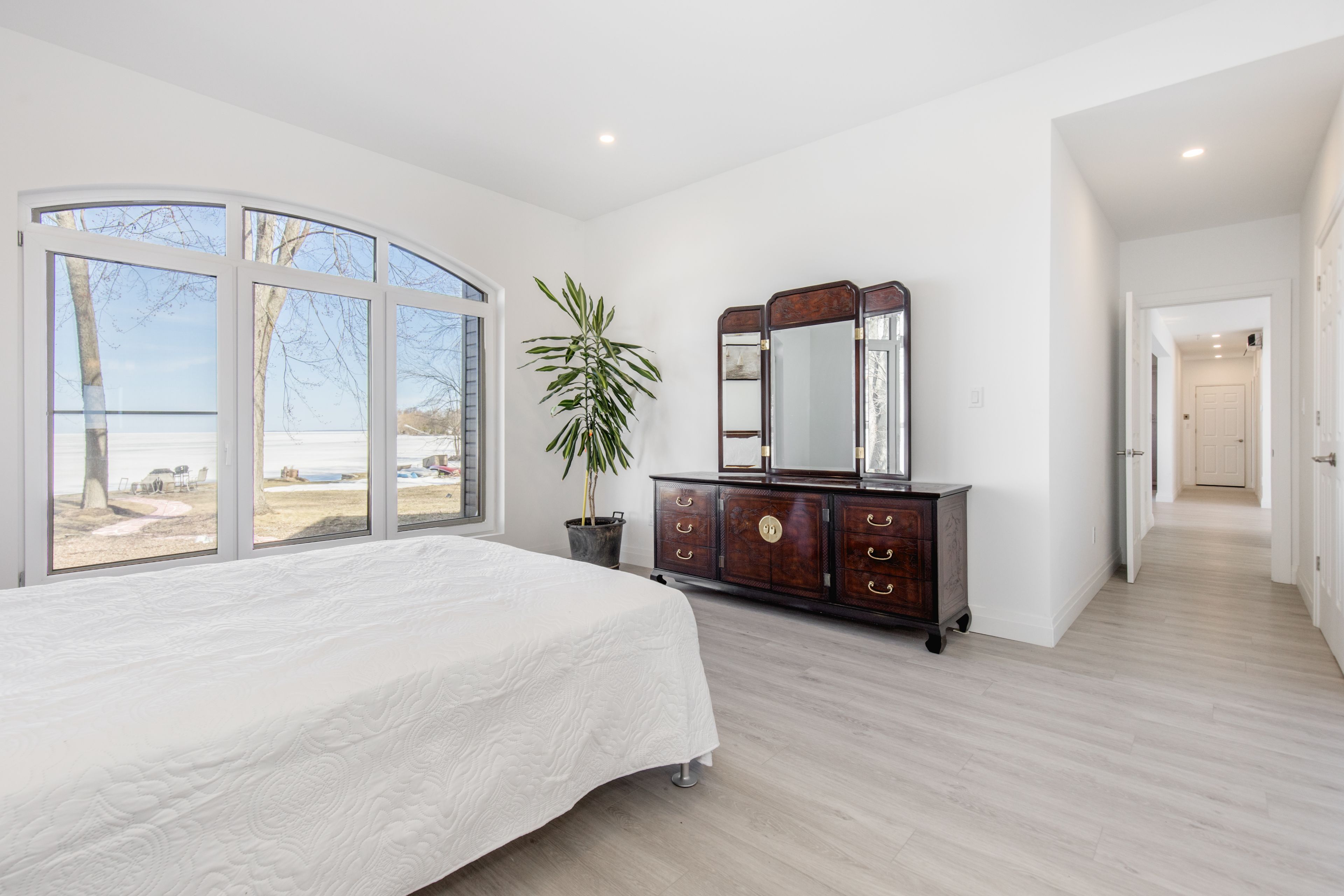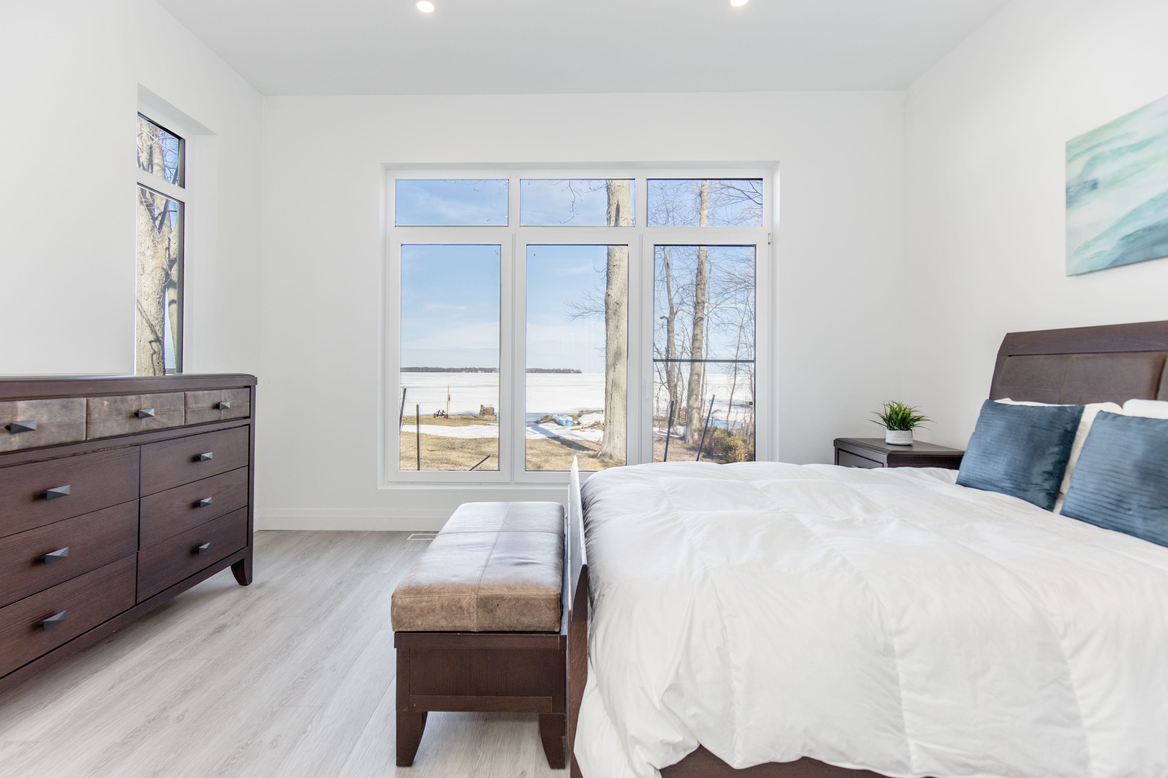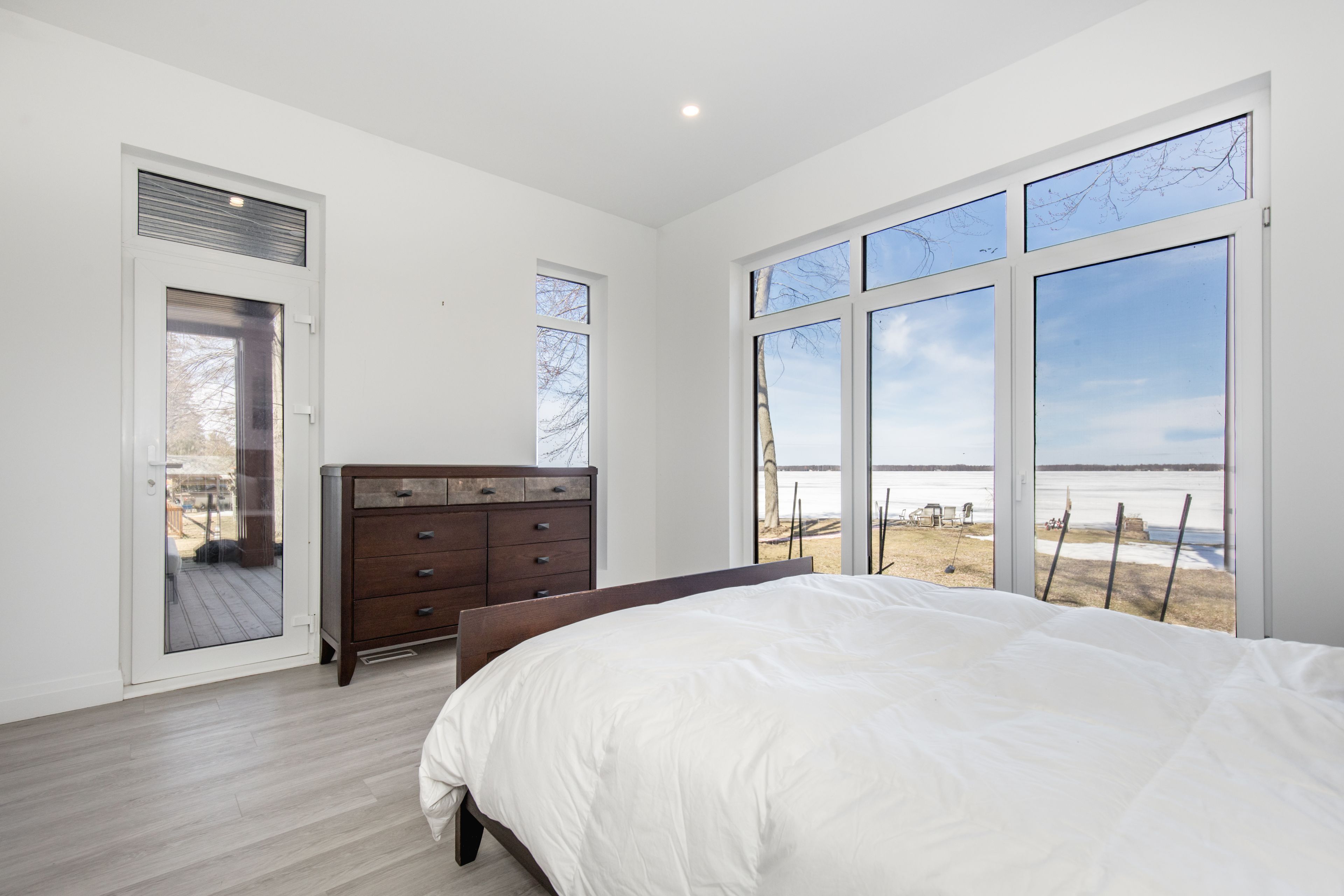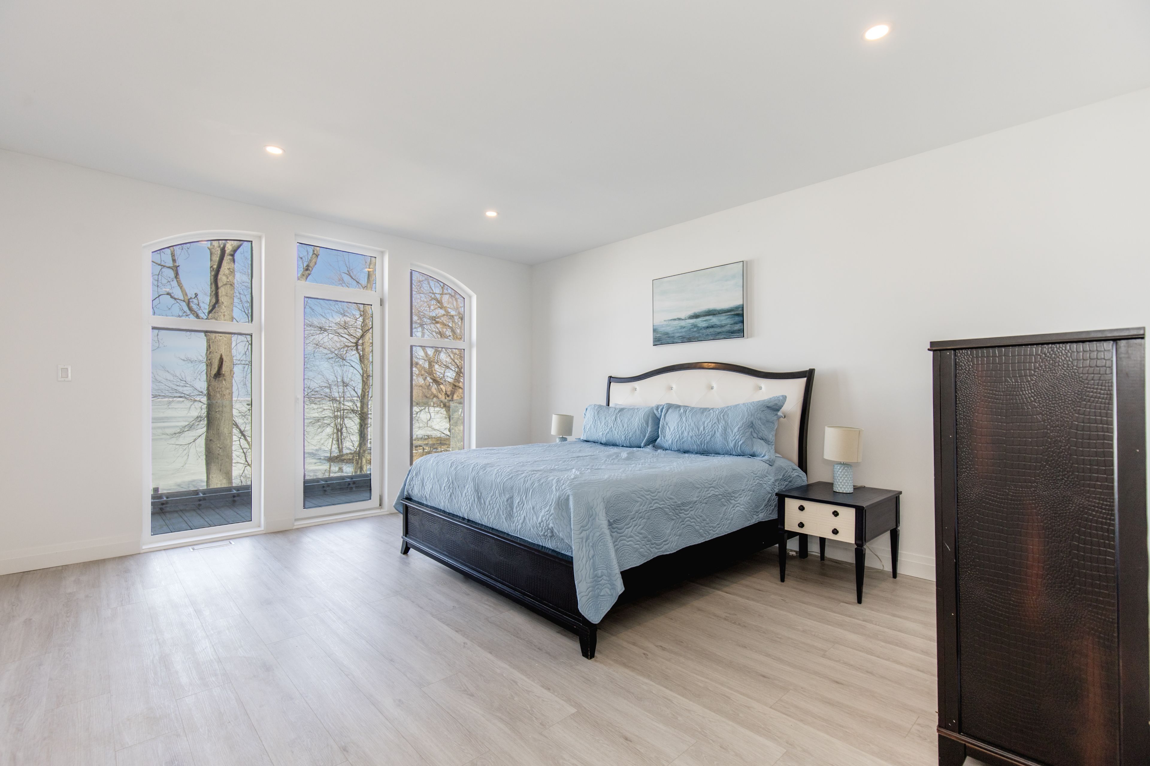 Welcome to luxury waterfront living on lake simcoe. This custom-built 4,500sqft home sits at the end of a quiet dead-end street, offering unmatched privacy and breathtaking views. Designed for year-round comfort, featuring heated flooring throughout, a geothermal system, a uv water system, & triple-pane glass windows. The open-concept main living space is centred around the view, w/ a striking fireplace, w/a wall of windows that flood the home with golden light at sunset. W/ 5 bedrooms3 w/ ensuites, 2 w/balconies, and 1 w/ a w/o to the back deck this home offers both comfort and versatility. The main-fl primary suite delivers an unmatched connection to the water, w/ stunning views that make it feel as if you're right on the lake. Upstairs, a second primary suite offers a private retreat w/ its own balcony, w/i closet, & a spa-like ensuite featuring a soaker tub, a spacious glass walk-in shower w/ custom tile, &double sinks. The upper level is also home to an impressive great room w/ soaring 18ft cathedral ceilings, a fireplace, & wet bar w/ full cabinetry plus island. This flexible space can serve as an add. Family room,home office, gym, or be transformed into a private in-law suite. Step outside to nearly 100ft of pristine waterfront, complete w/ a 50ft dock, a sandy shoreline, & a boat ramp for effortless lake access. Whether you're lounging on the dock, kayaking in the calm waters, or unwinding after a day of work in the sauna,this property delivers an unparalleled lakeside lifestyle.