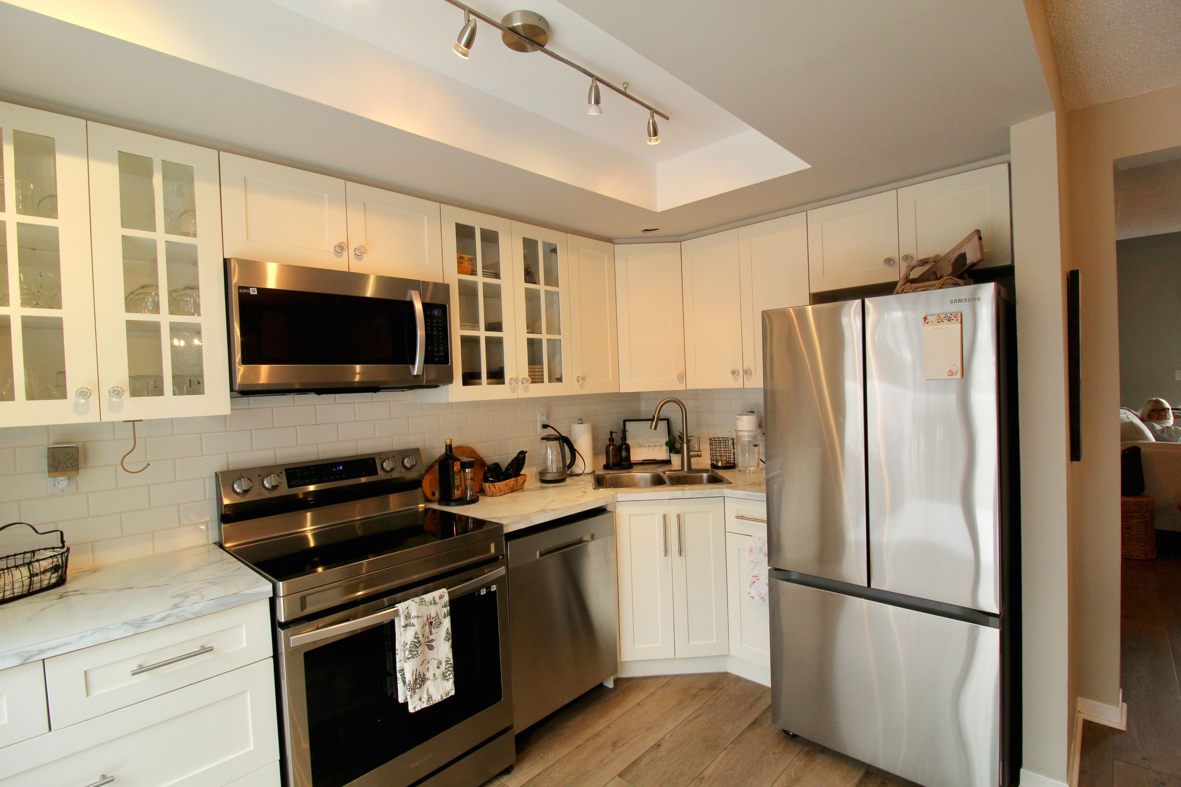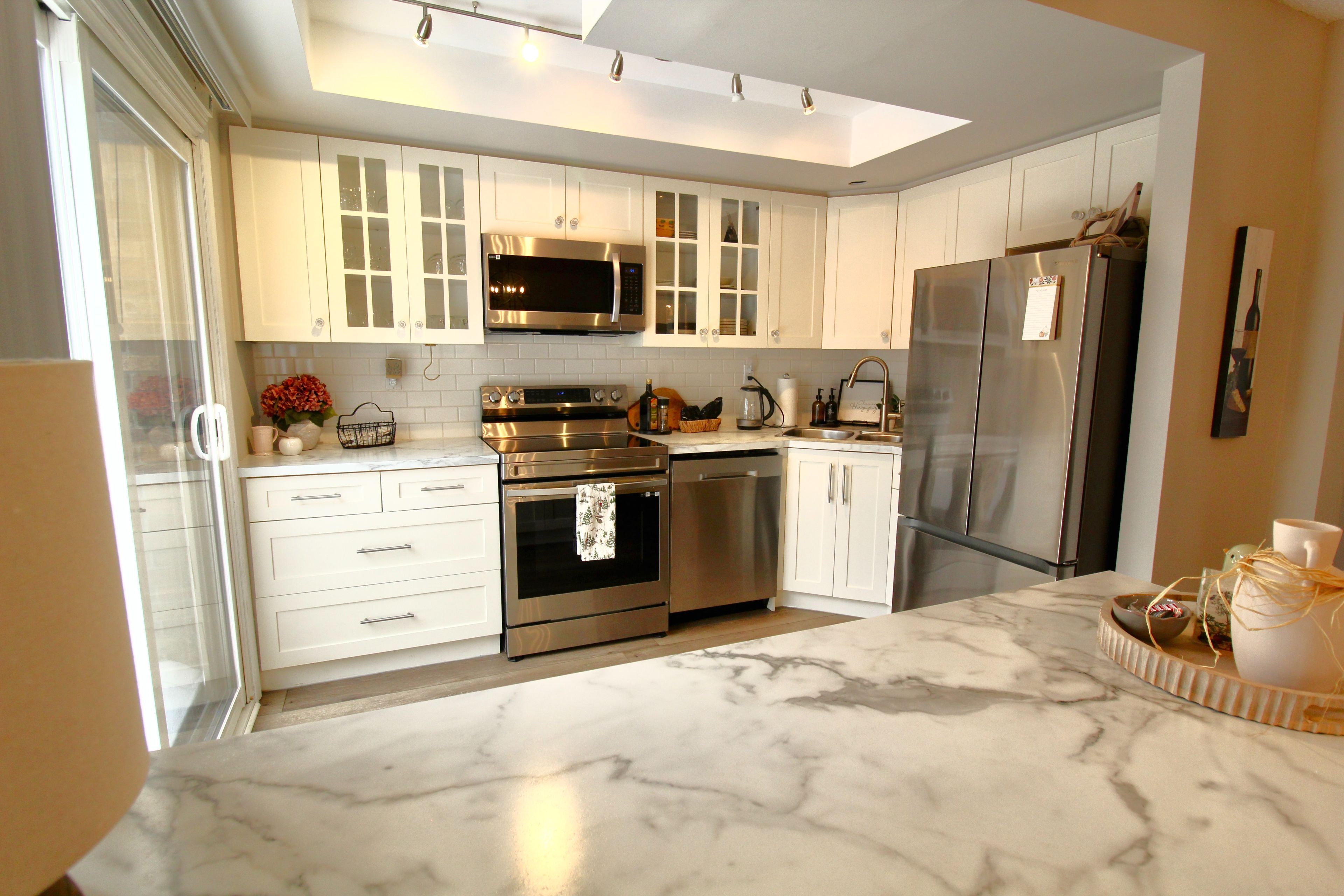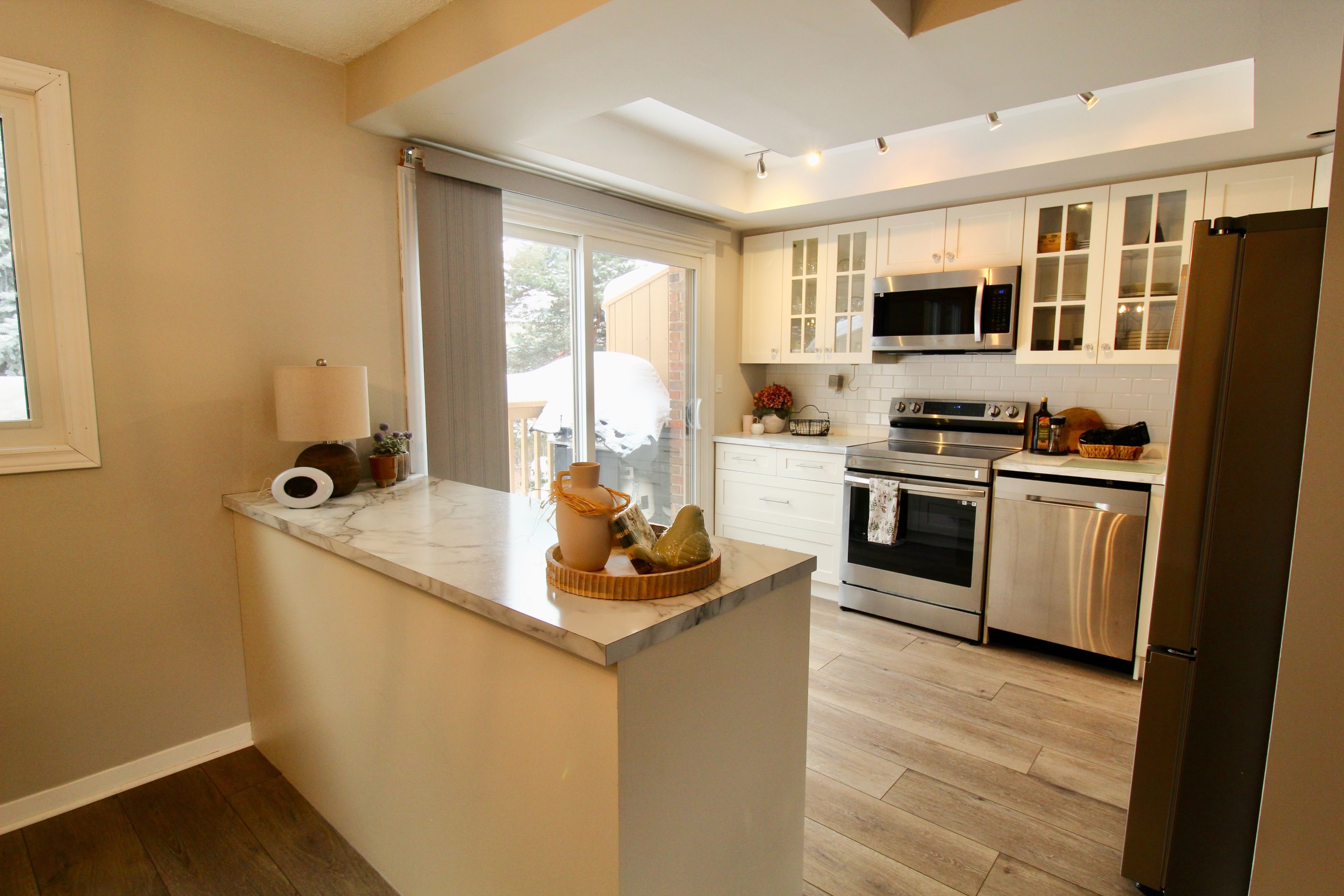Absolutely stunning 2 bedroom town house in the coveted "clusters" town house community. This unit has been re done from top to bottom. All new flooring, new kitchen, up stairs bath has new walk-in shower and new custom fit vanity, new carpeted stairs, new paint throughout, 2 balcony's, vaulted ceilings, and a garage! Can't forget to mention the beautiful pool, and all the lovely landscaping, looked after by the condo corp, and the winter the snow removal!! For lease, to that special someone who has great credit, proof of income, non smoker.