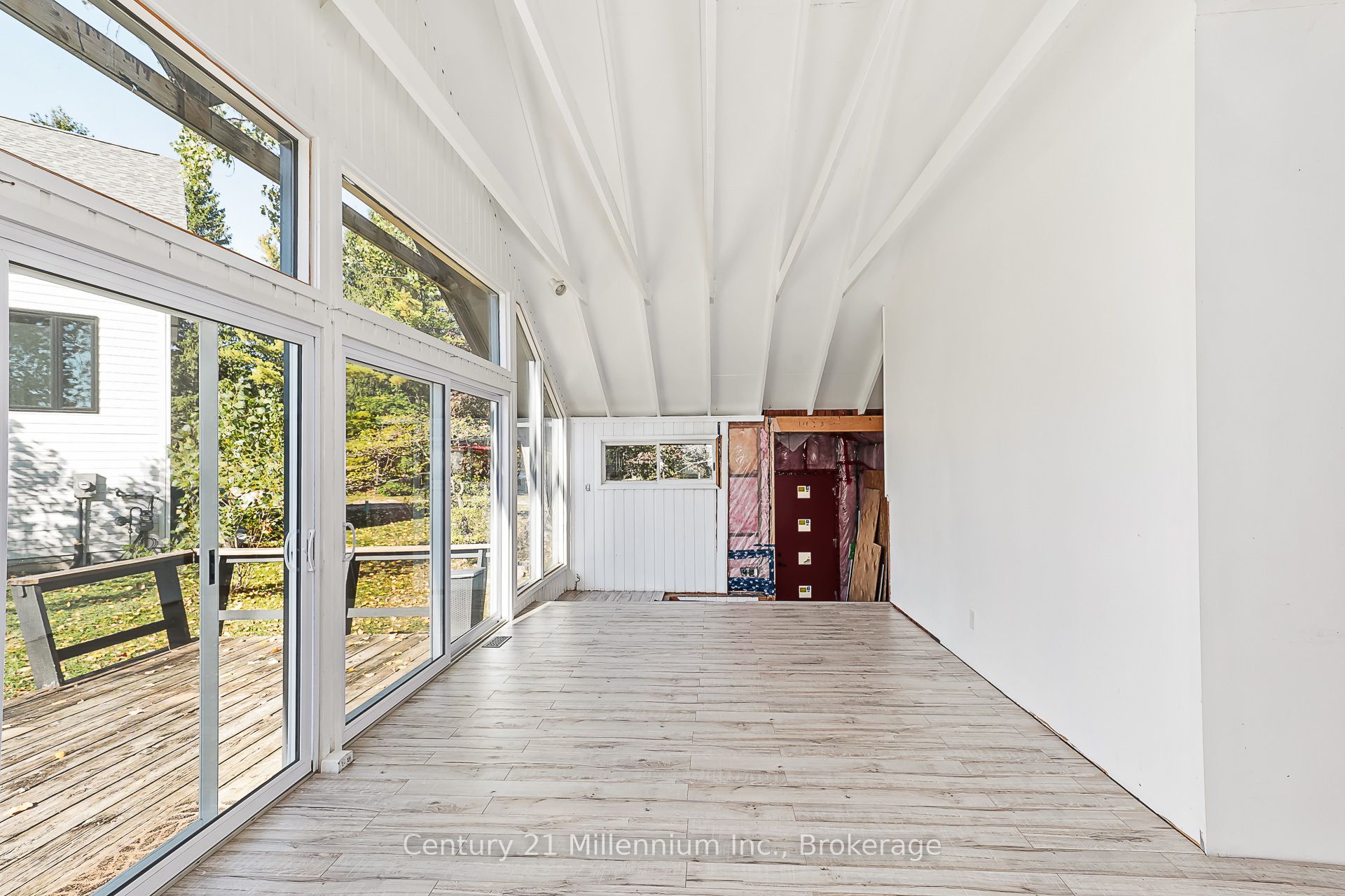 • Open-concept main floor with vaulted ceilings and natural light.