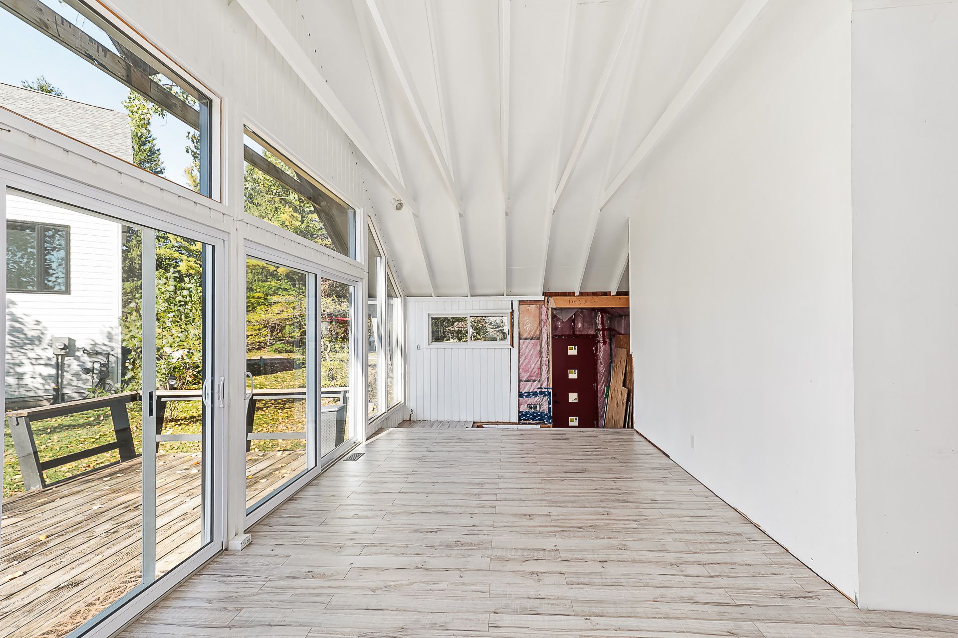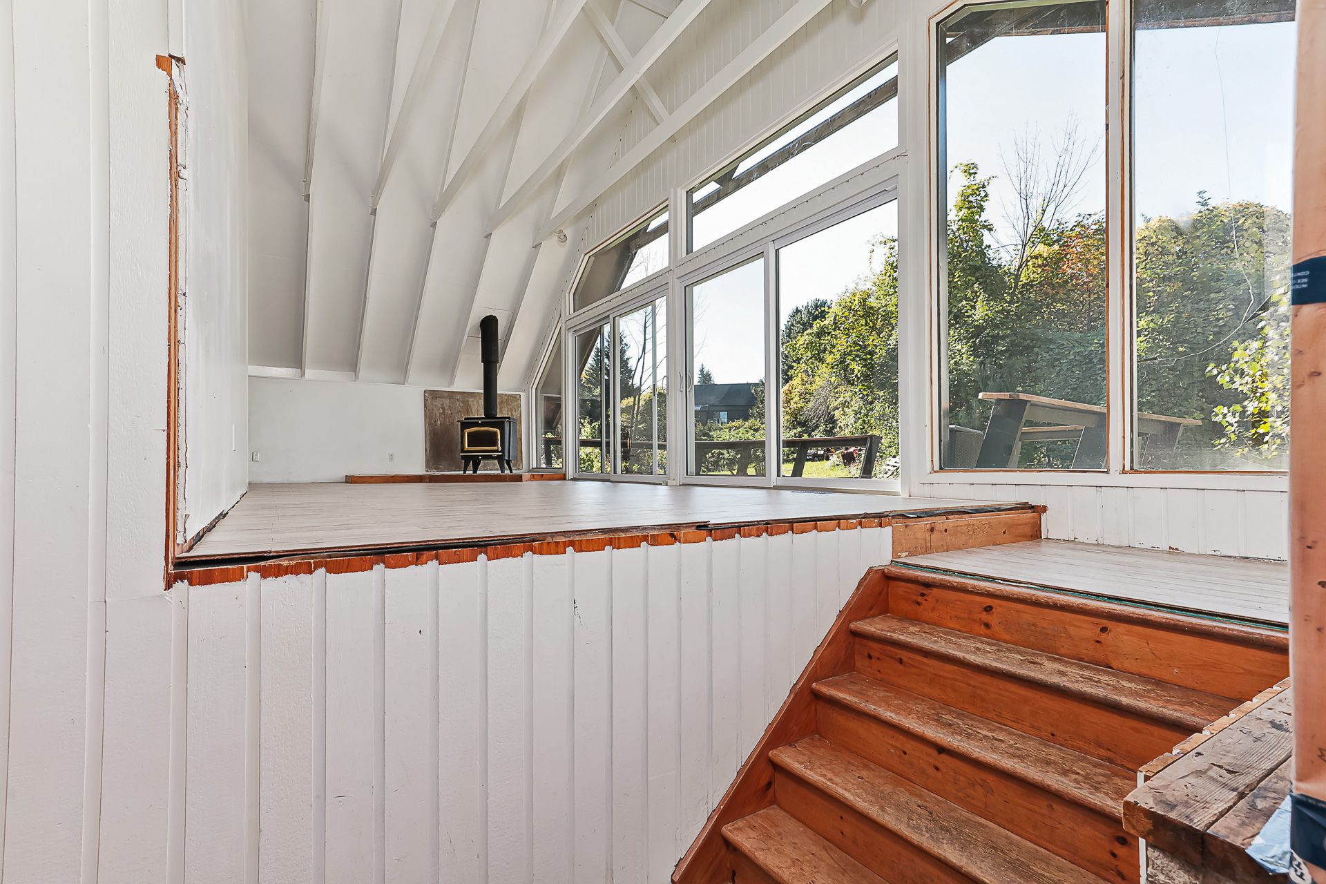 • Open-concept main floor with charming vaulted ceilings and fireplace.