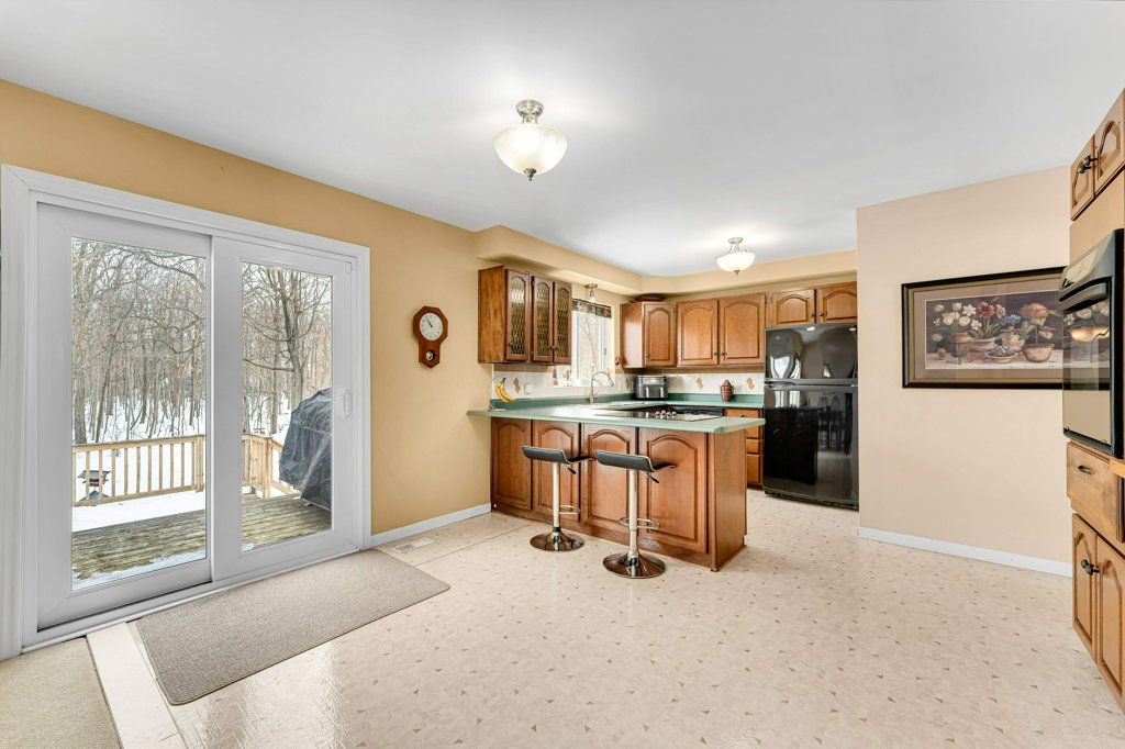 Welcome to 1780 middle road. This is a bi-level bungalow nestled amongst trees on a 1. 97 acre lot. With over 1700 sqft on the main level, enjoy spacious living. The principal bedroom has a walk-in closet and updated ensuite bathroom with heated floors. Main bathroom has also been updated with heated floors and the 3rd bedroom has laminate flooring. The kitchen has great workspace with countertop stove, built-in oven, ample cupboards and patio doors to the rear three tiered deck. The lower level offers a large recreation room with pellet stove and patio doors to back yard. Off the recreation room is a laundry/utility room and inside entry to the two-car garage. Updates include insulated vinyl exterior (2006), updated soffits and eavestroughs (2006) roof shingles (approx 2018) propane furnace (2021), heat pump (2026). The home is equipped with a generator. The bonus is the 24'x 32' heated (pellet stove) and insulated workshop which could easily be converted to an artist or yoga studio. Enjoy the privacy of country living while being just 15 minutes to downtown kingston.