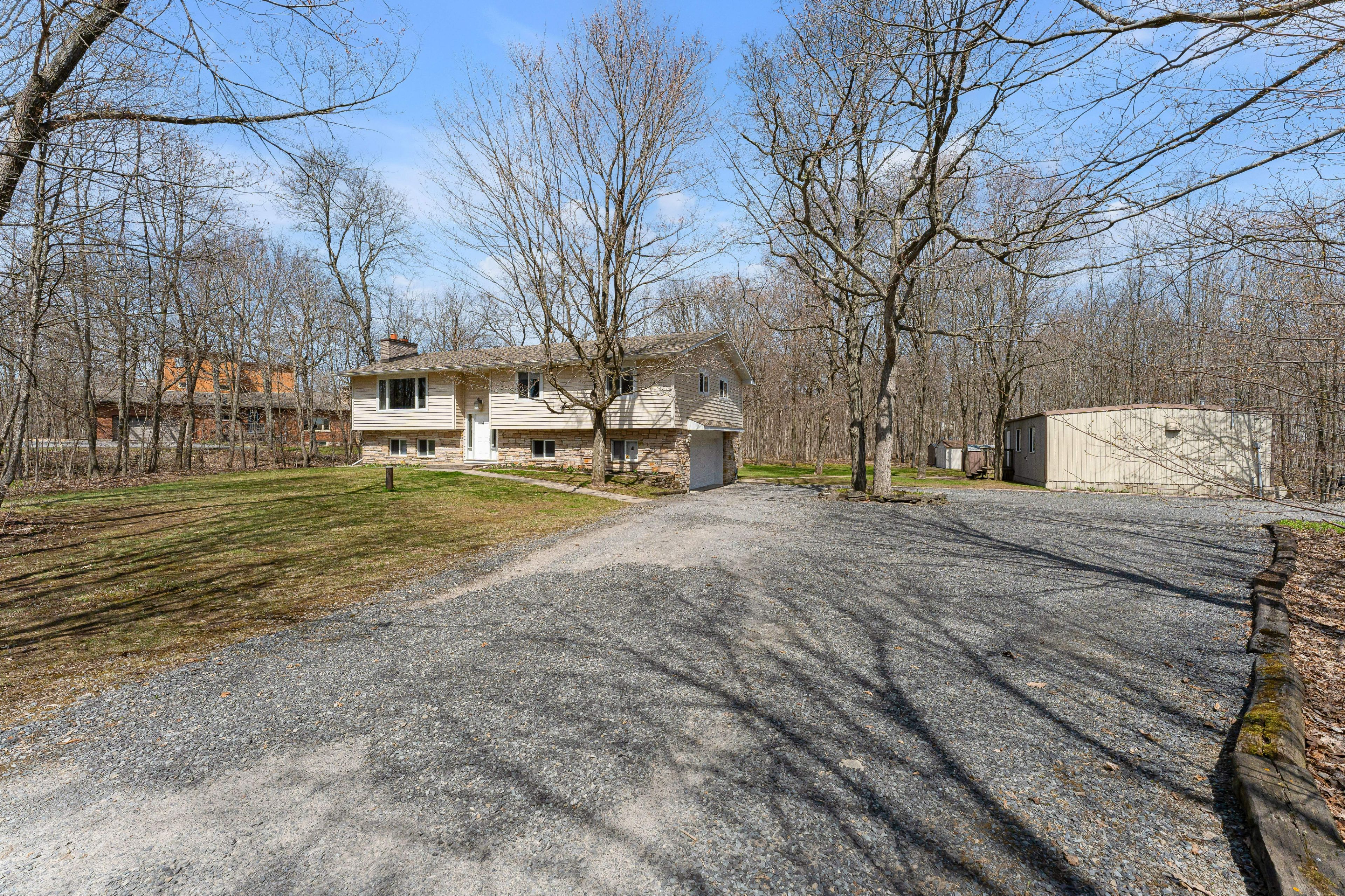 • Spacious bi-level bungalow on a private 1.97-acre lot.