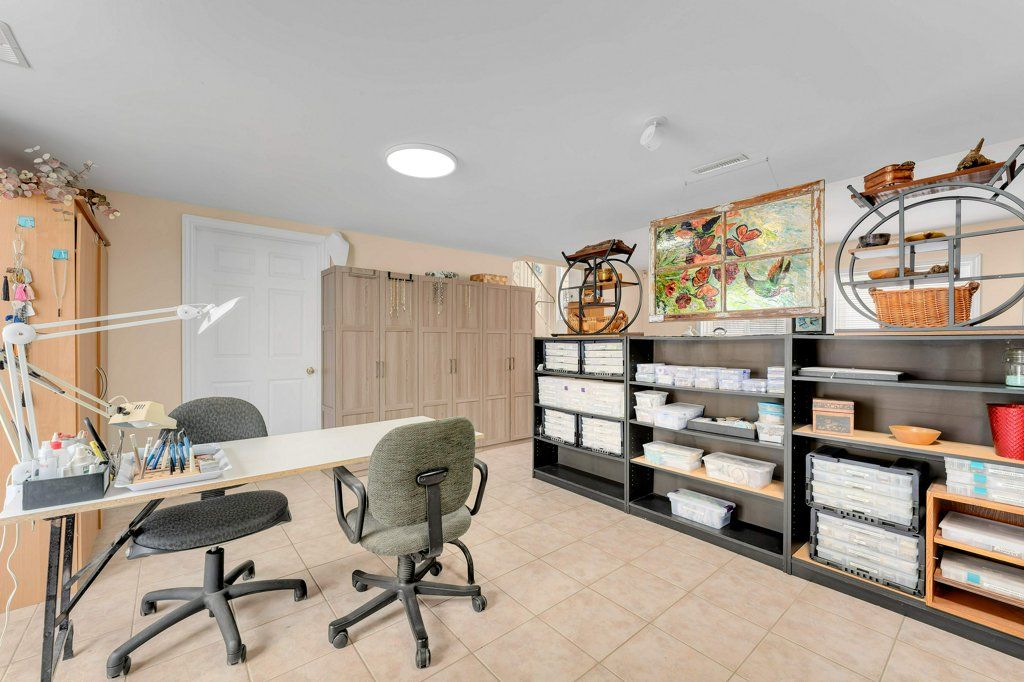 • Heated workshop easily convertible to a studio or yoga space.