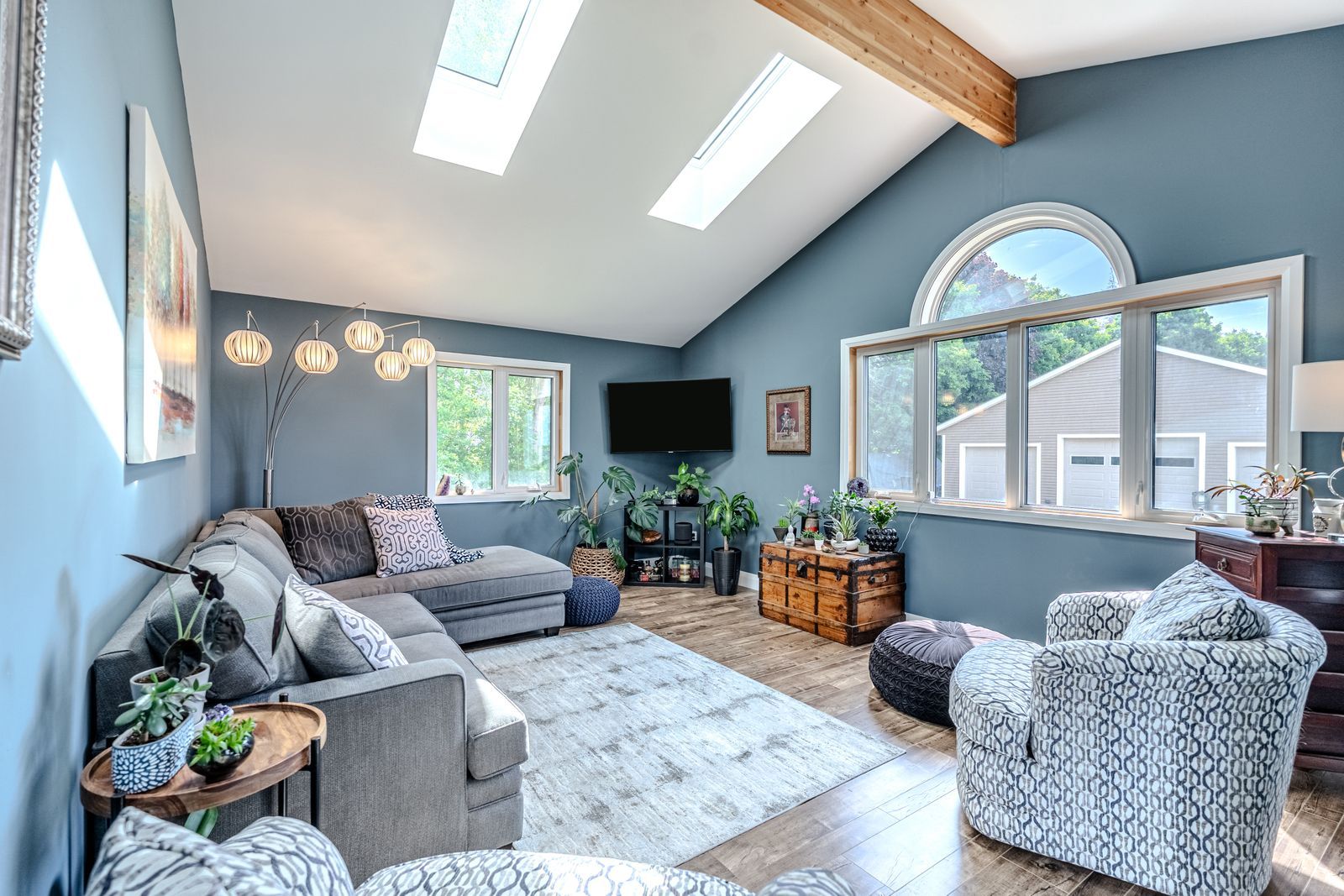 • Stylish design features vaulted ceilings and oversized triple-pane windows.