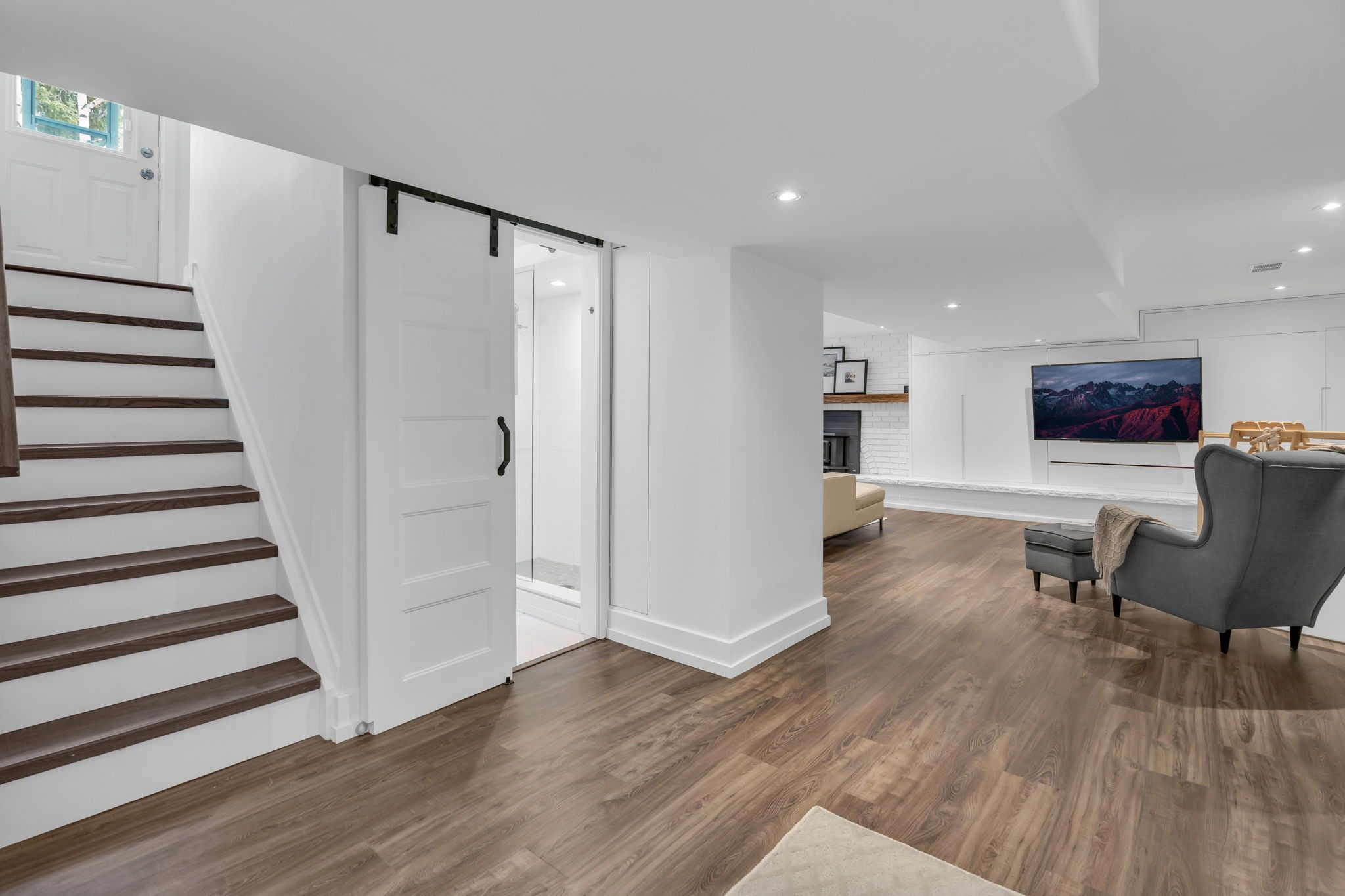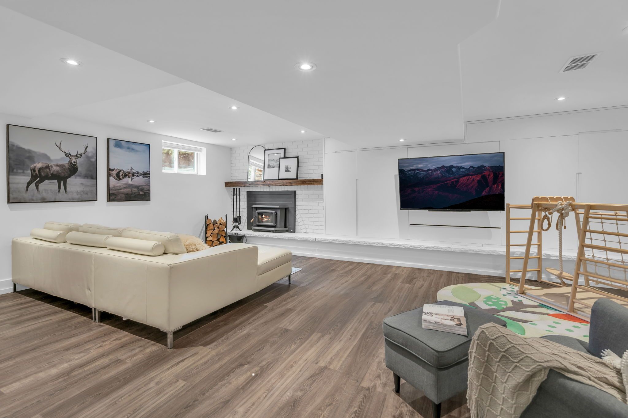 • Lower-level rec room with a cozy wood-burning fireplace for relaxation.