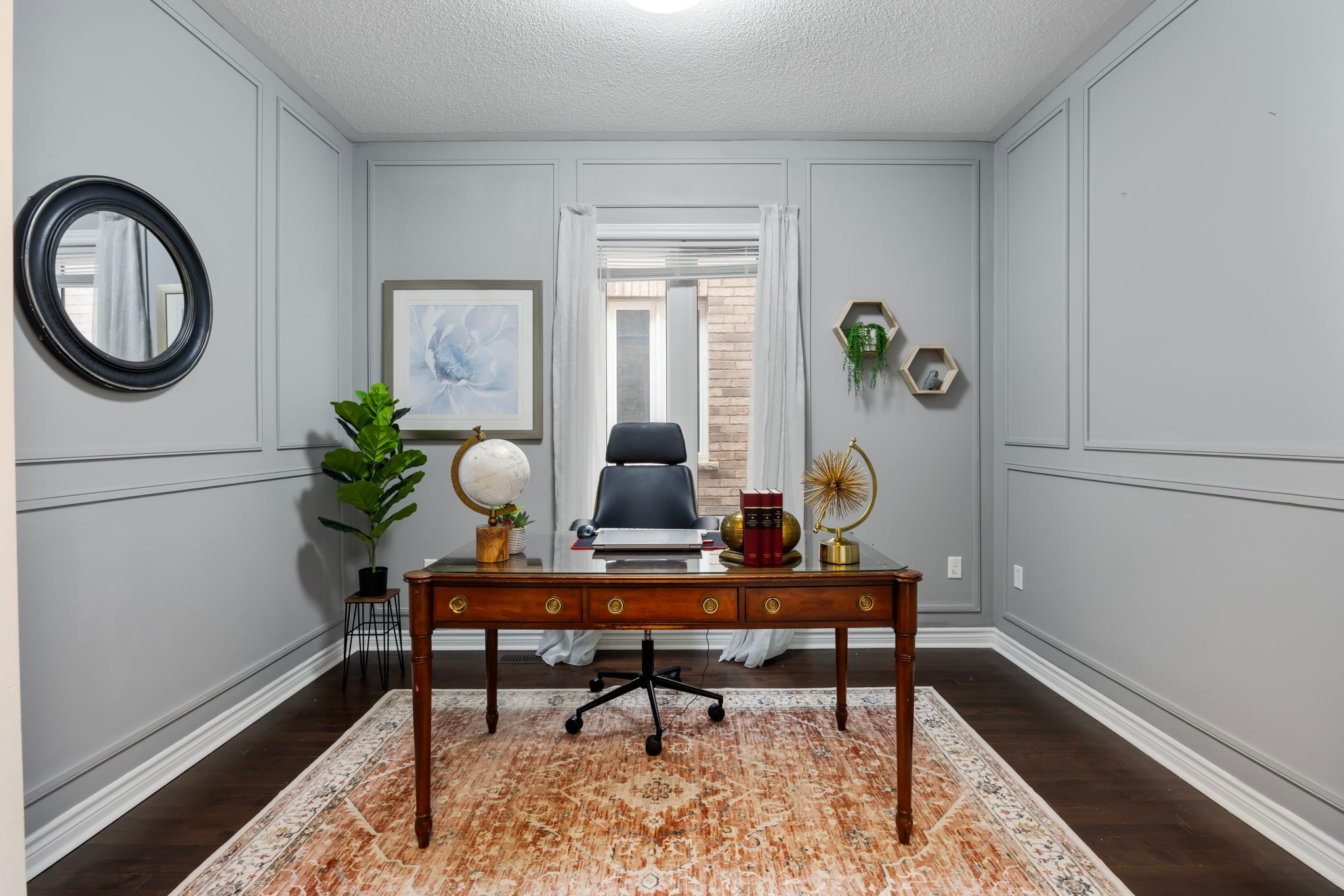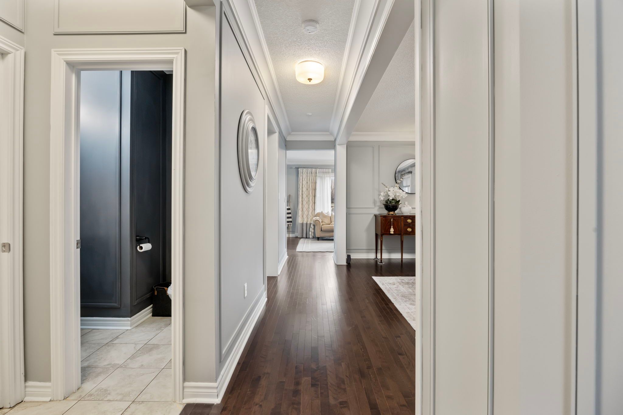 • Rich hardwood floors and intricate details throughout the main living areas.