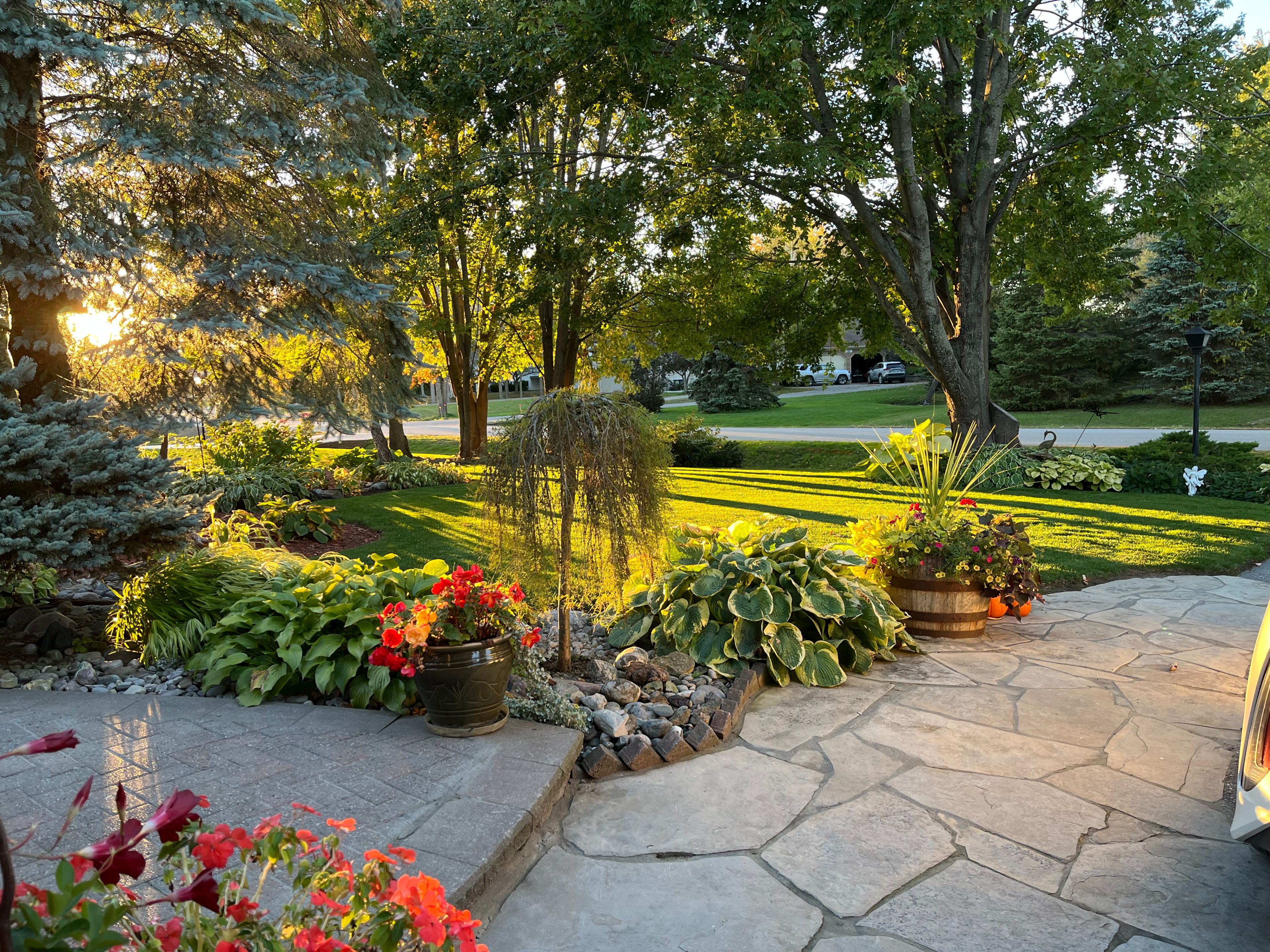 • Raised deck overlooking landscaped grounds with irrigation and a vegetable garden.
