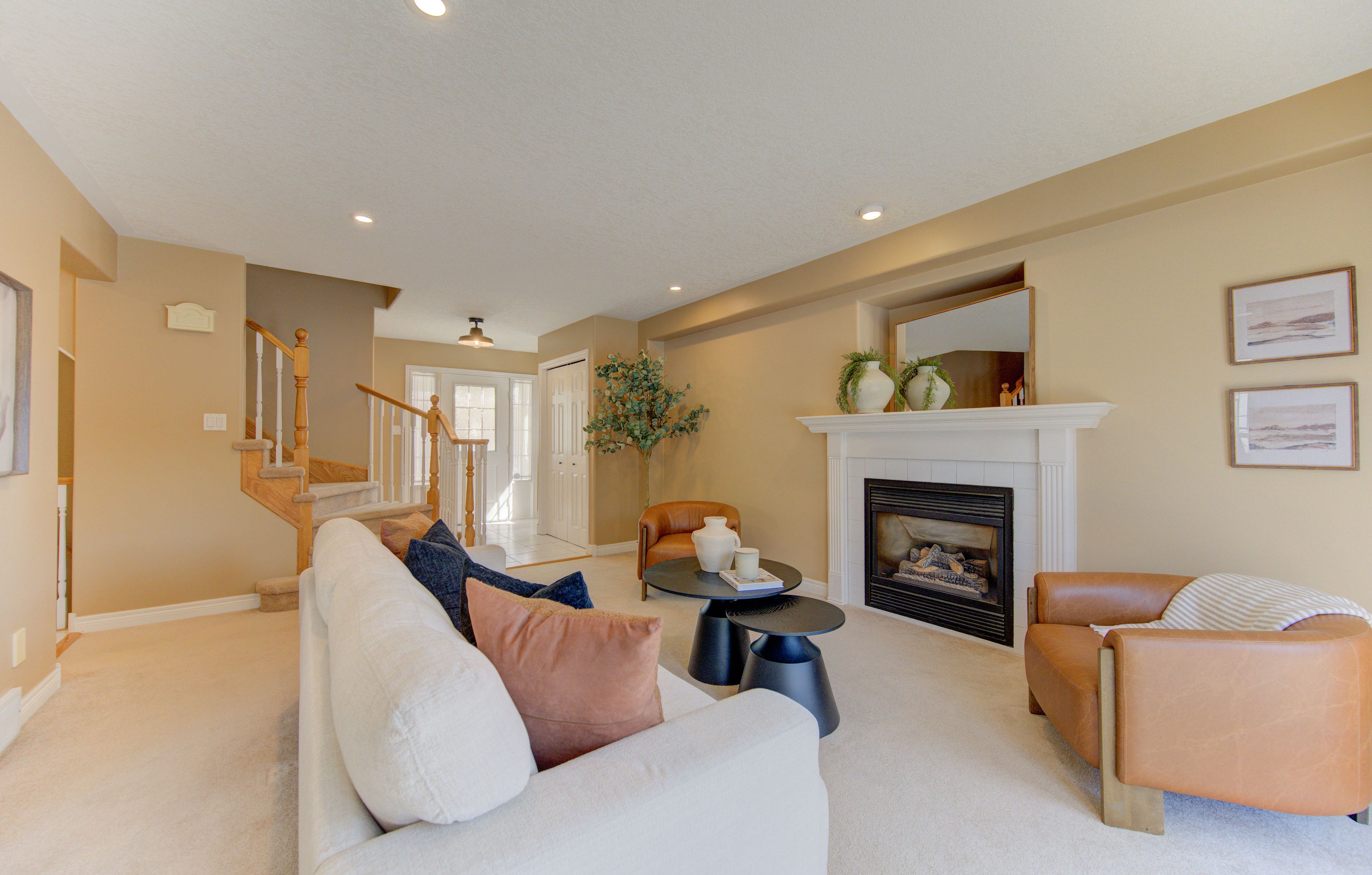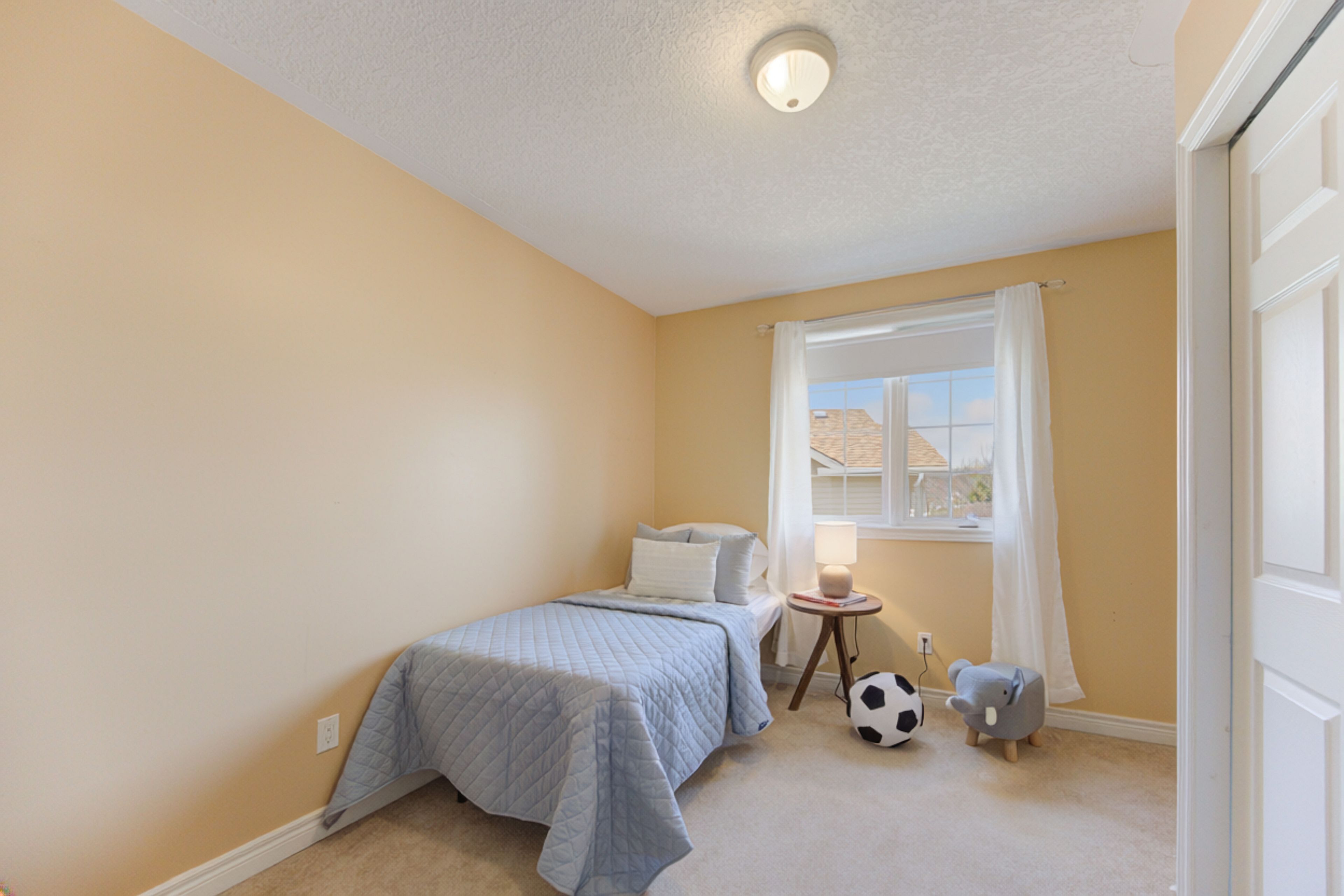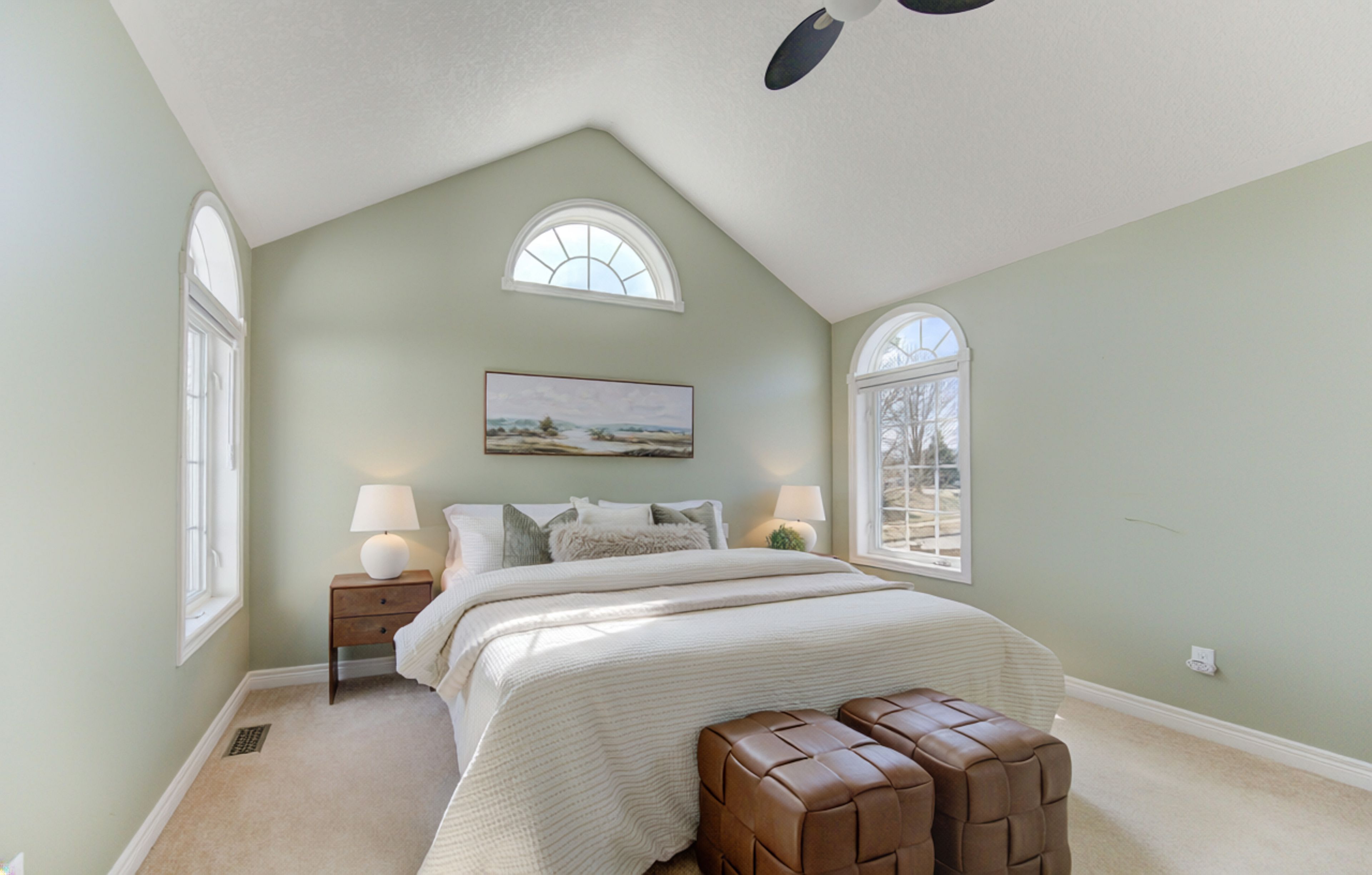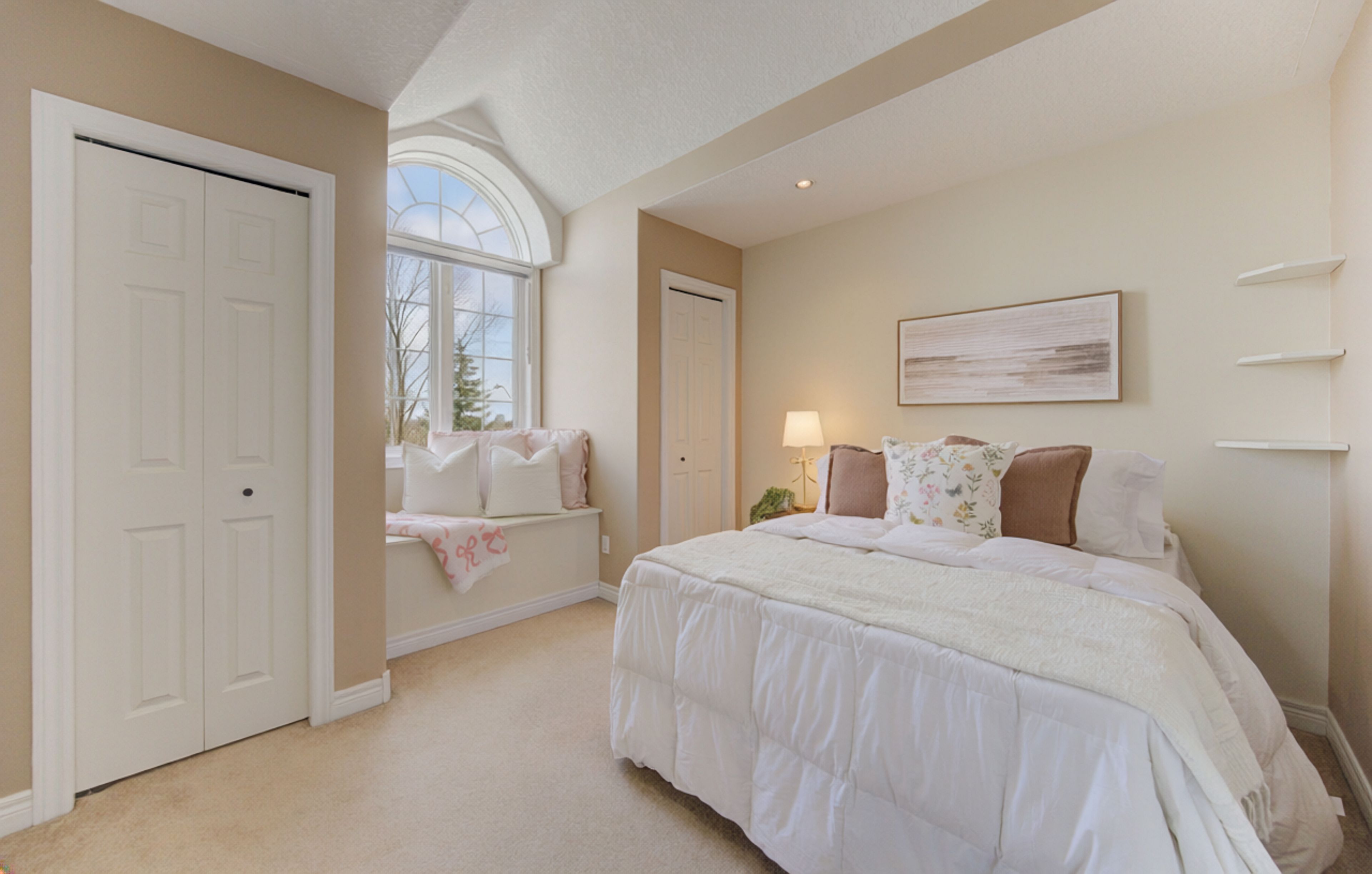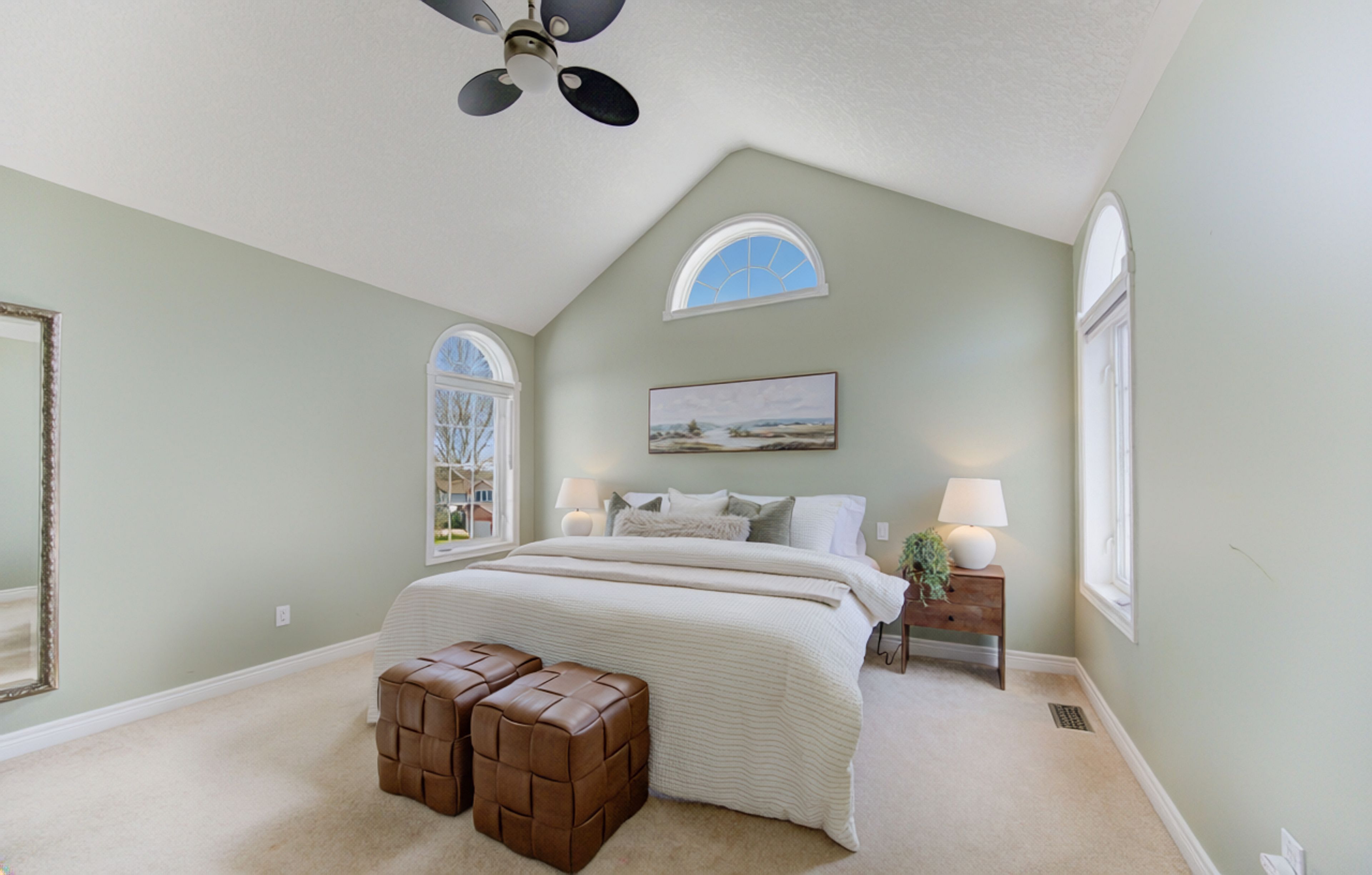 • Generous primary suite with vaulted ceilings, ensuite, and walk-in closet.