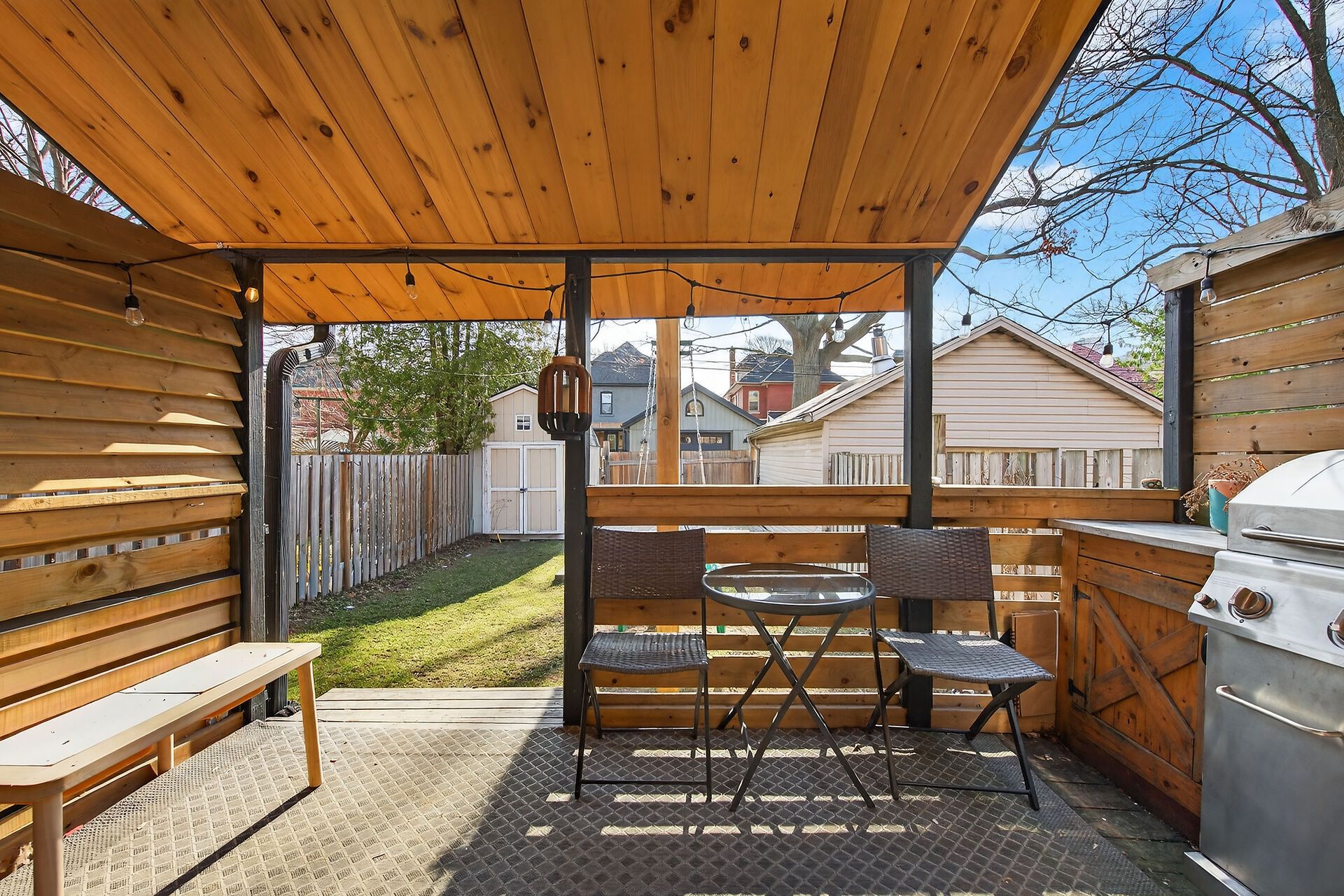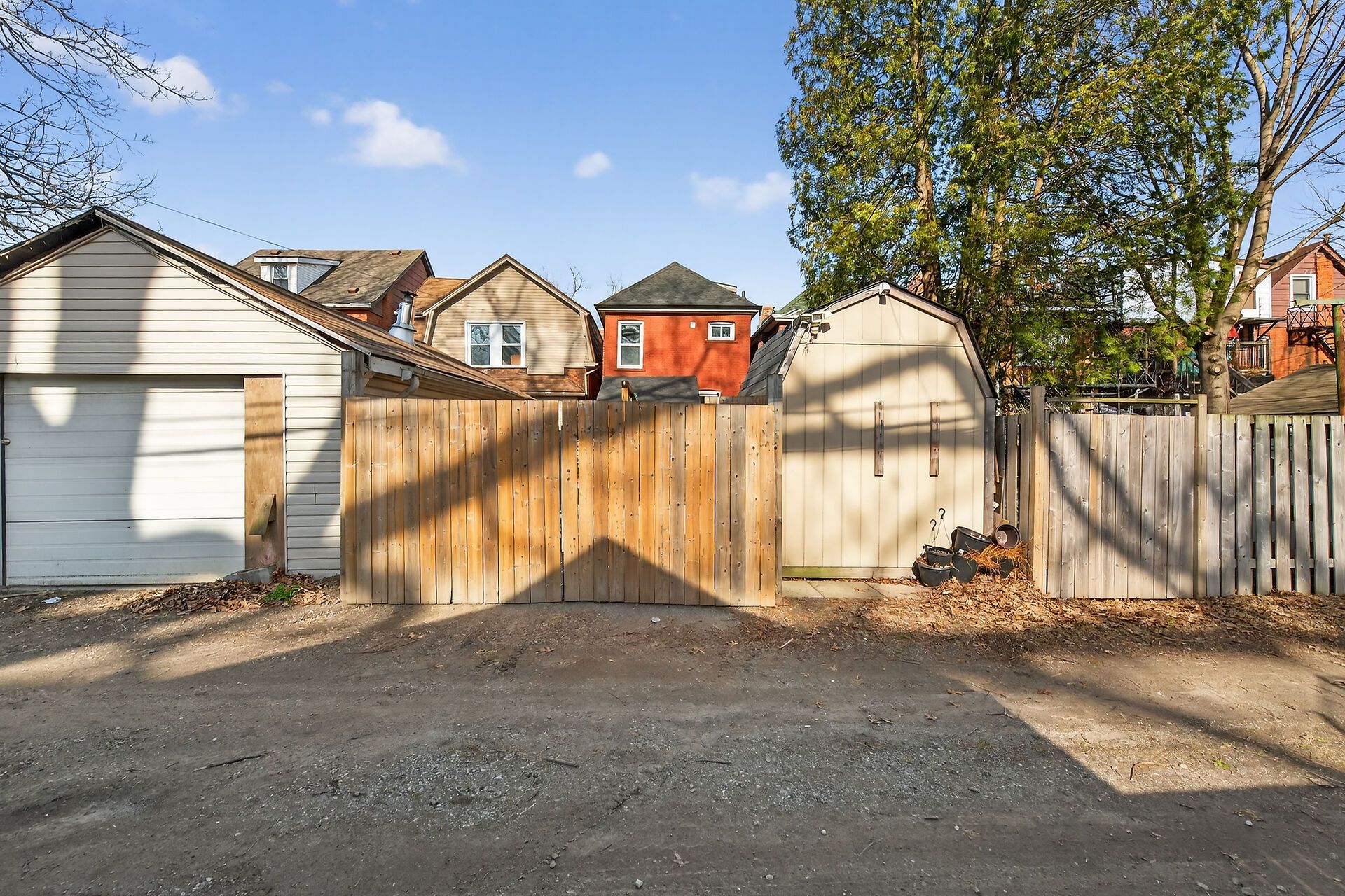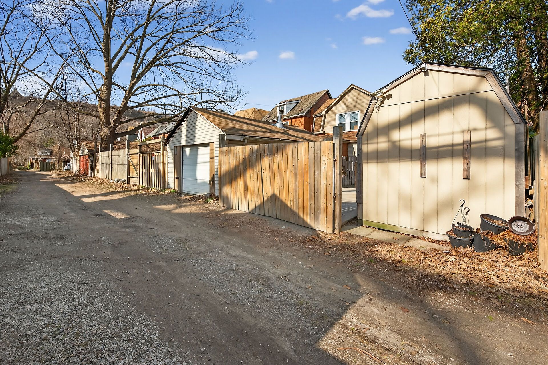 • Private yard with storage shed and easy parking access for two cars.
